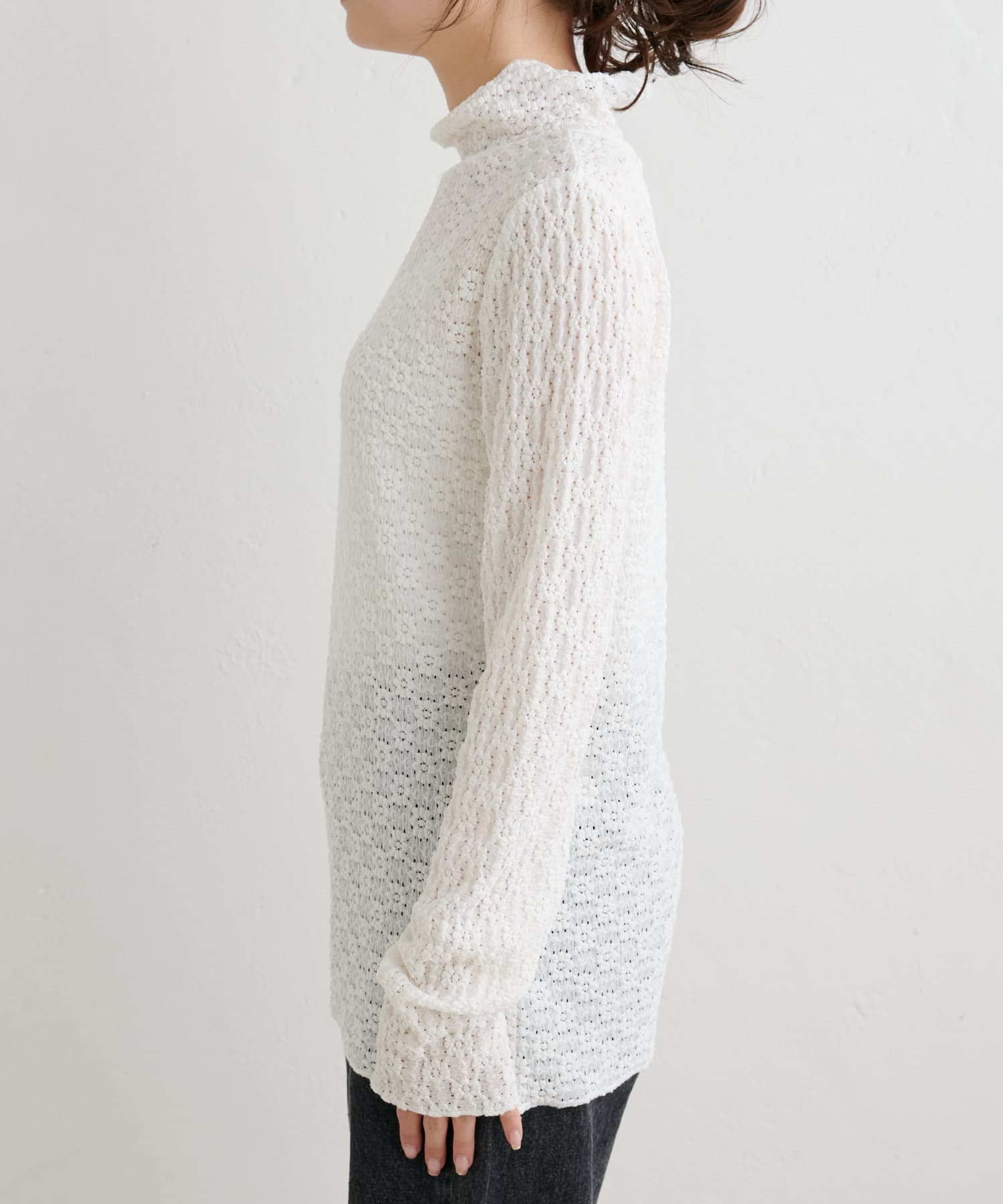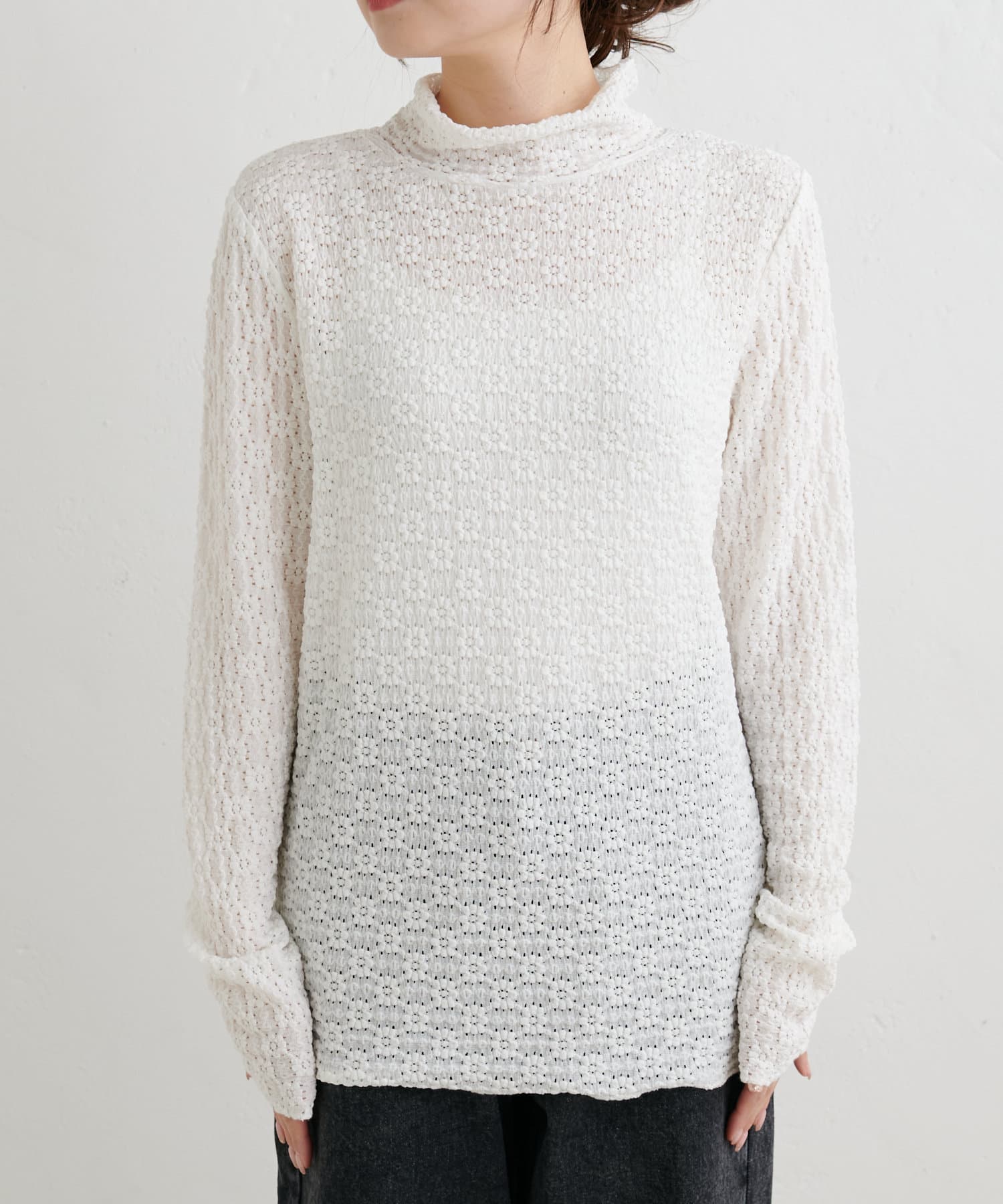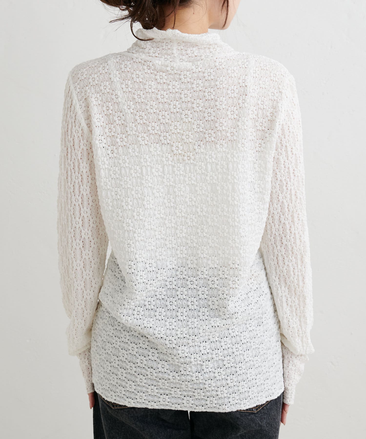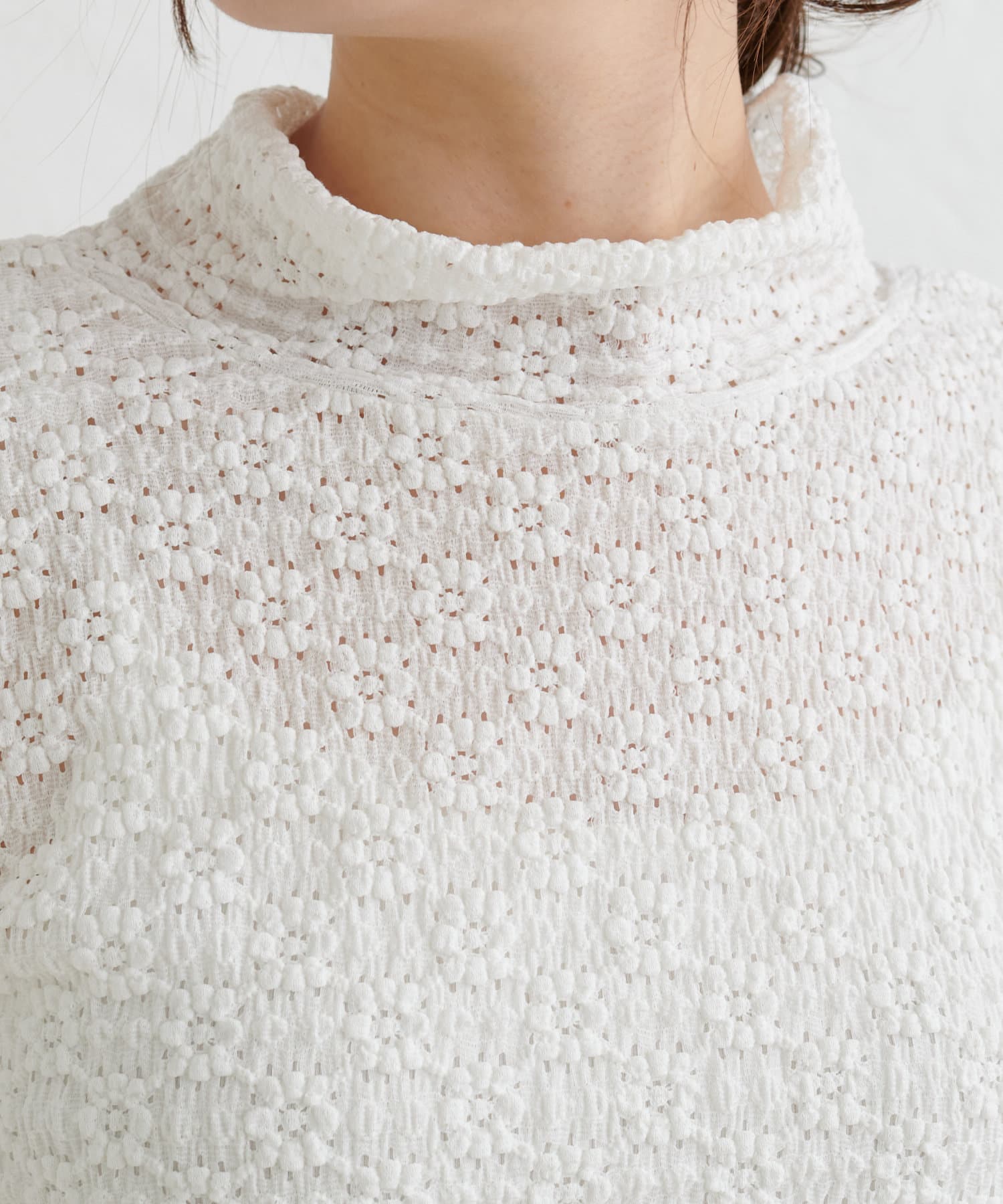 透け感のある軽やかなレースを使用しているので首元に抜け感がうまれ、