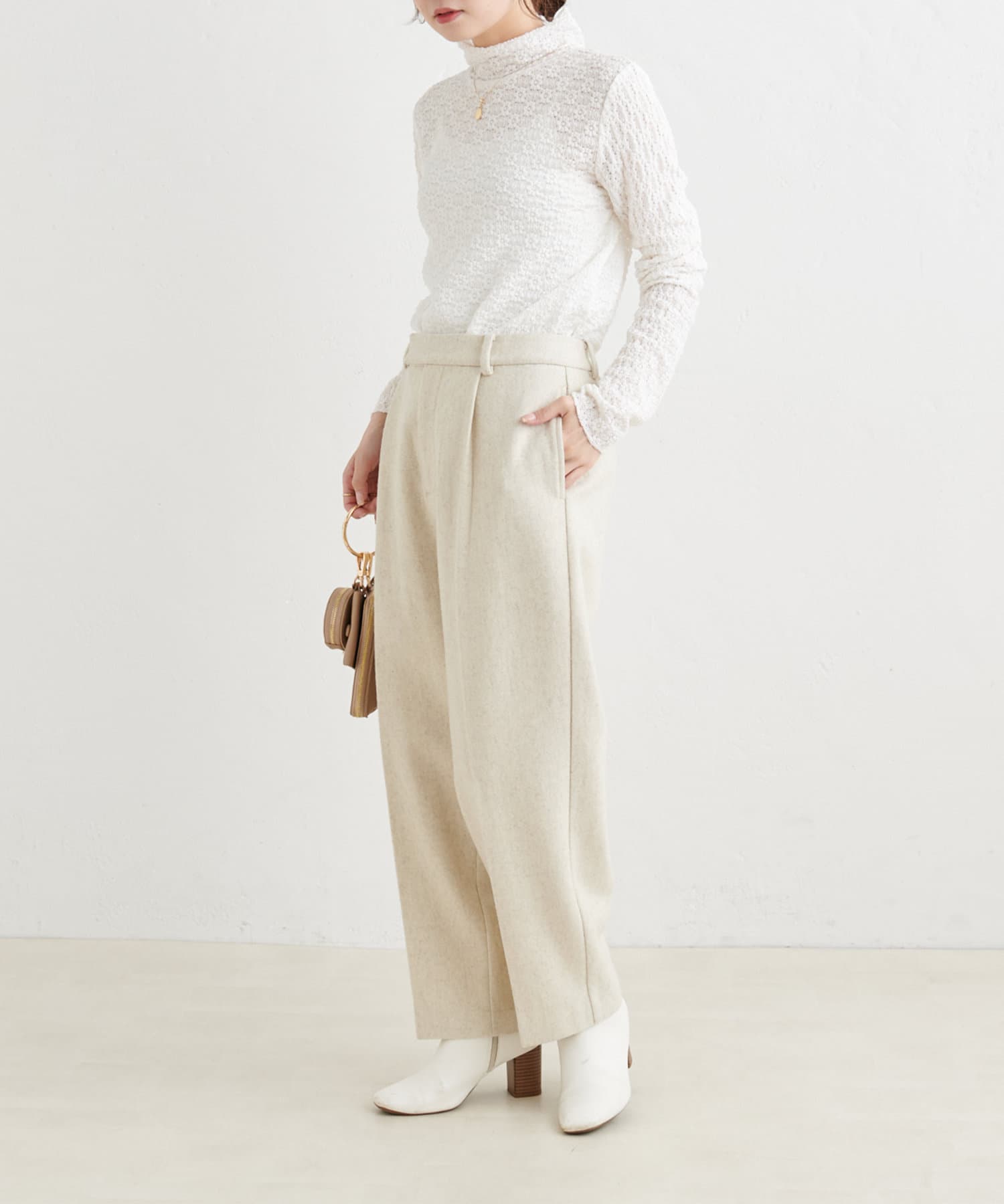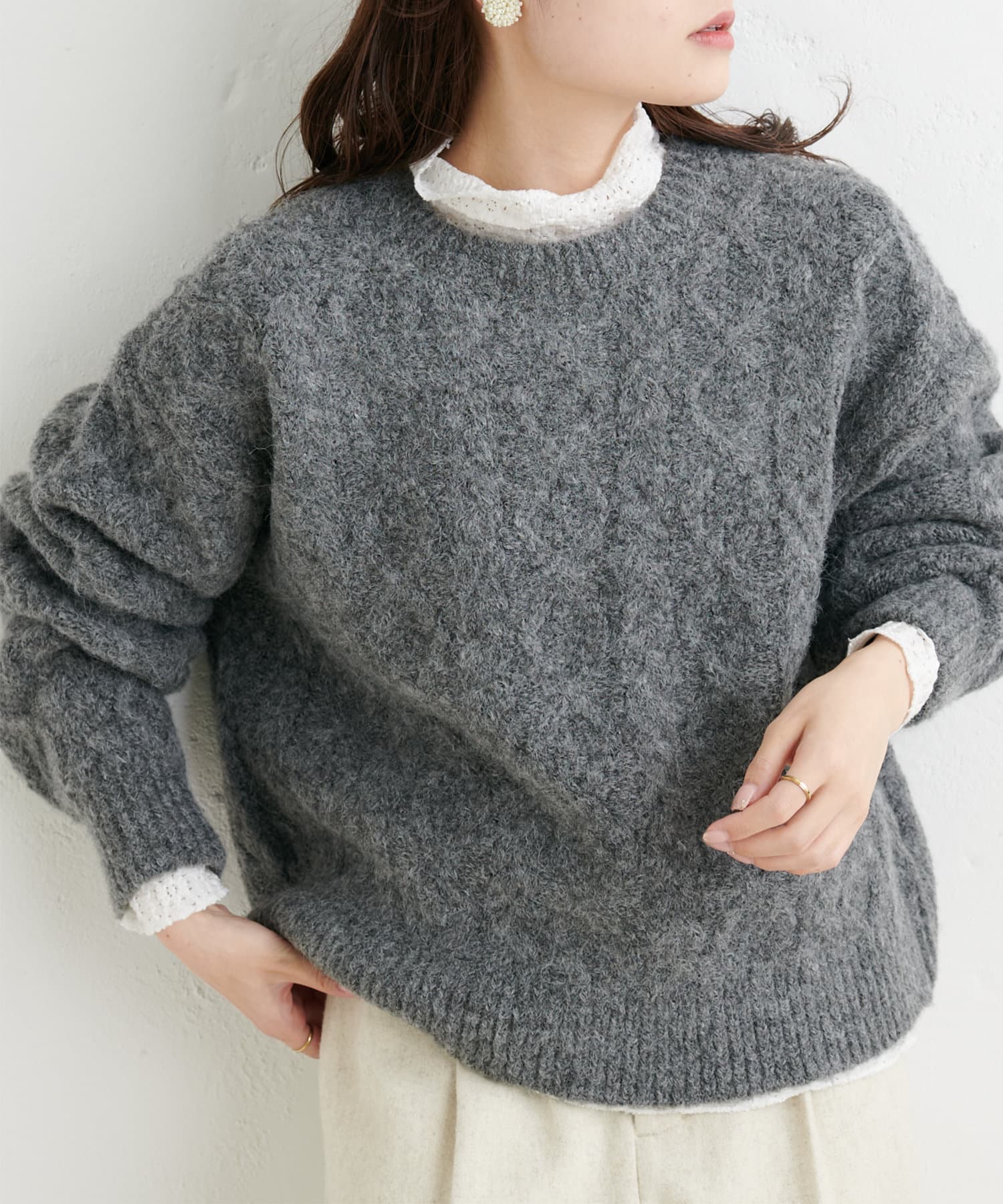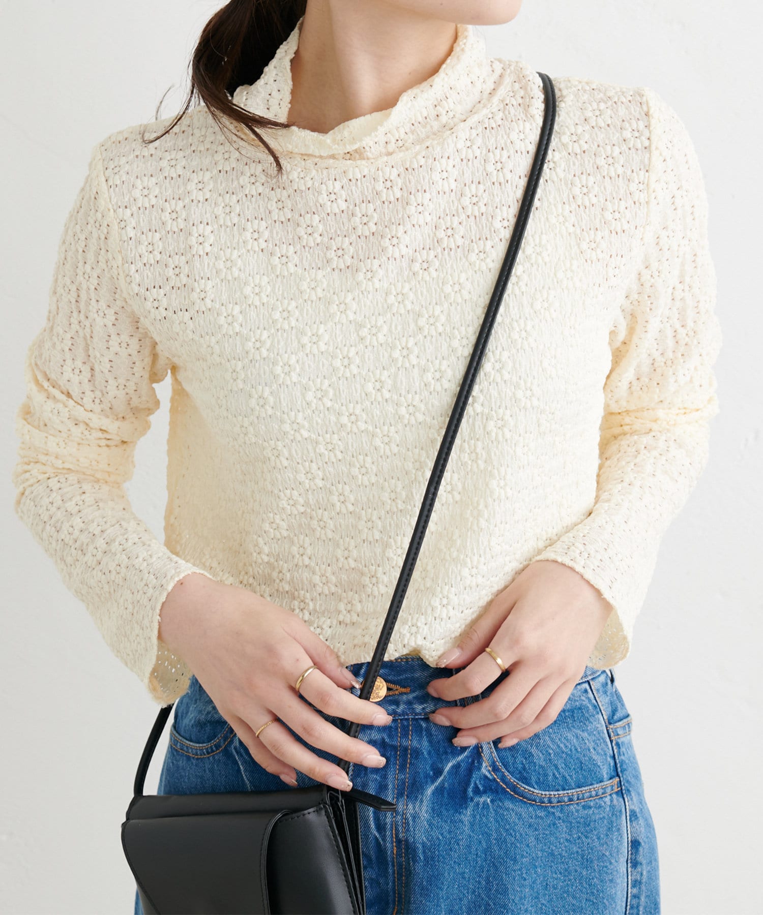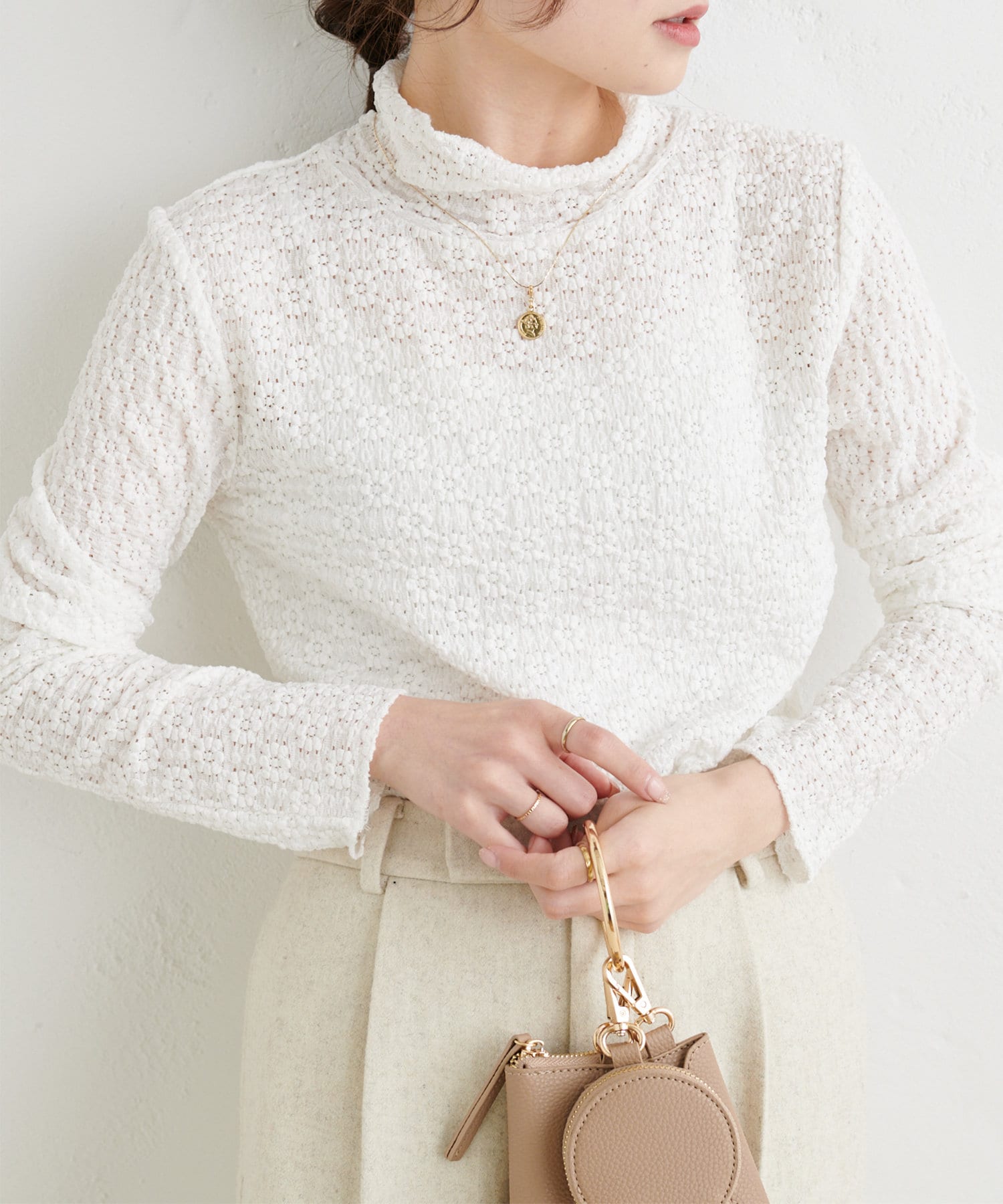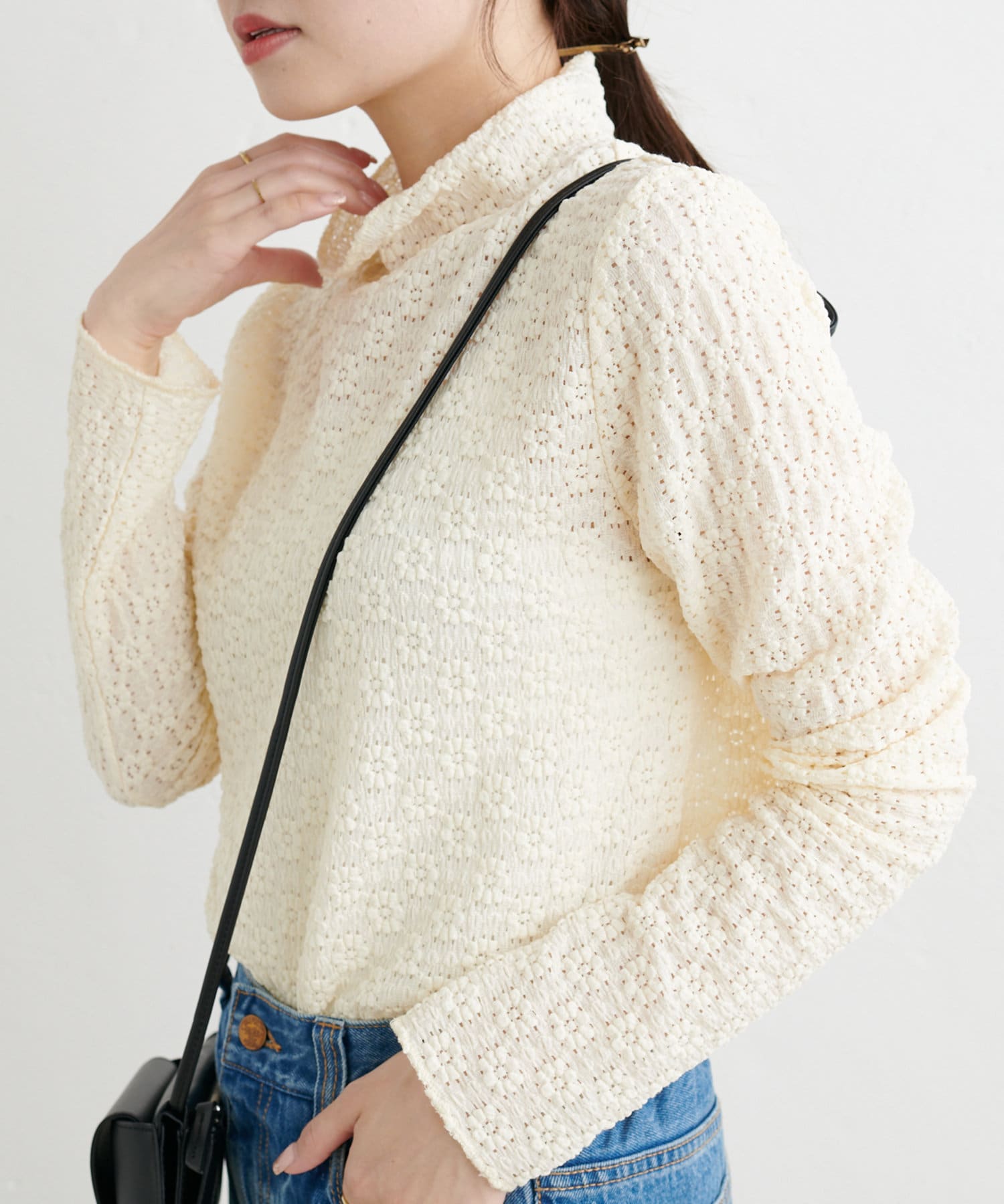 透け感のある軽やかなレースを使用しているので首元に抜け感がうまれ、