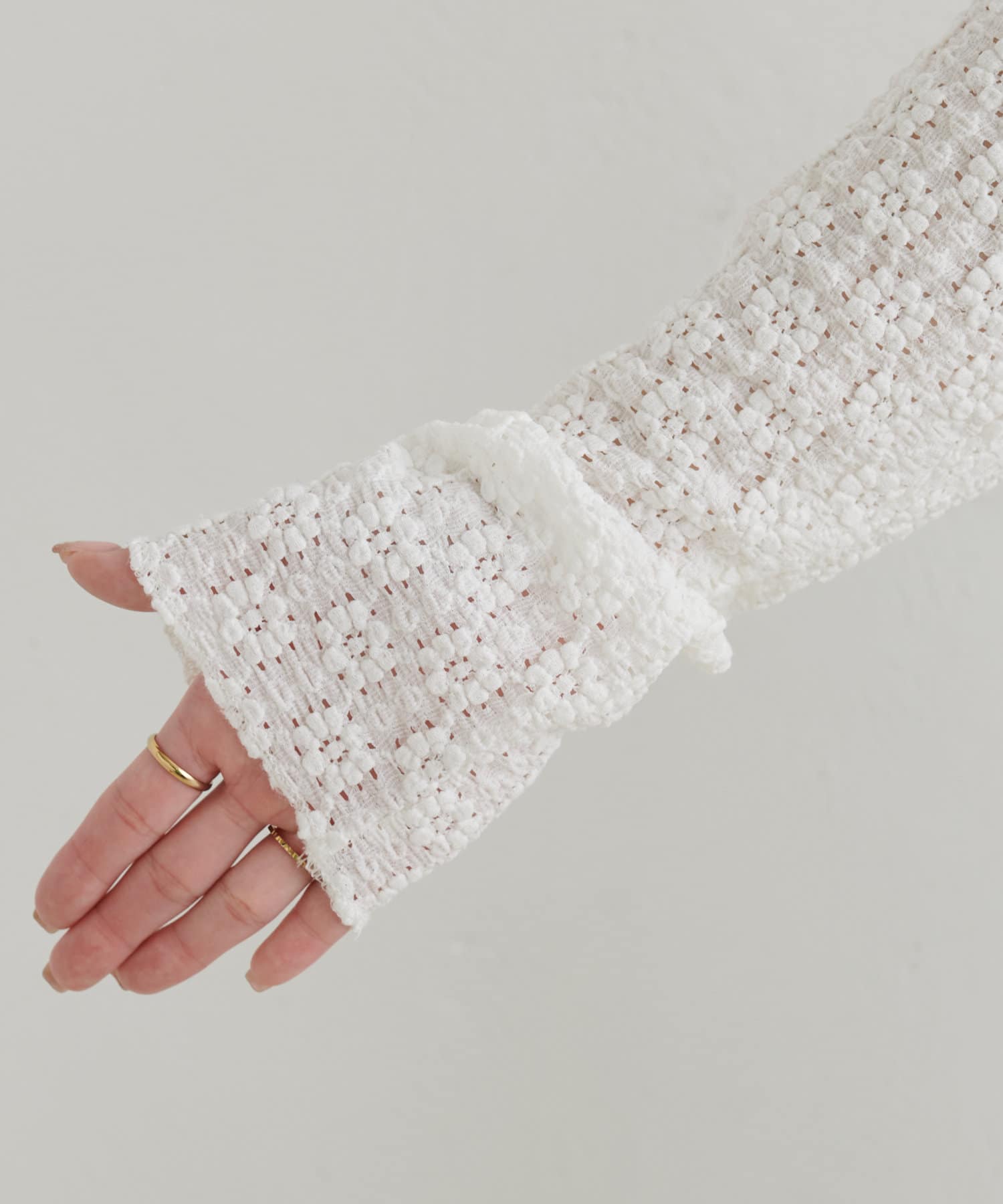 少し長めの袖丈で、長袖トップスと合わせた時でもチラ見せを楽しめるようにしました。