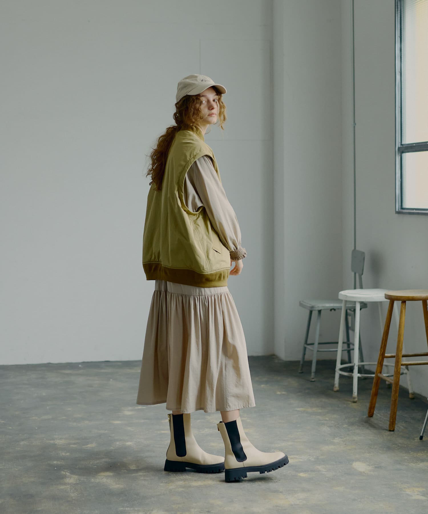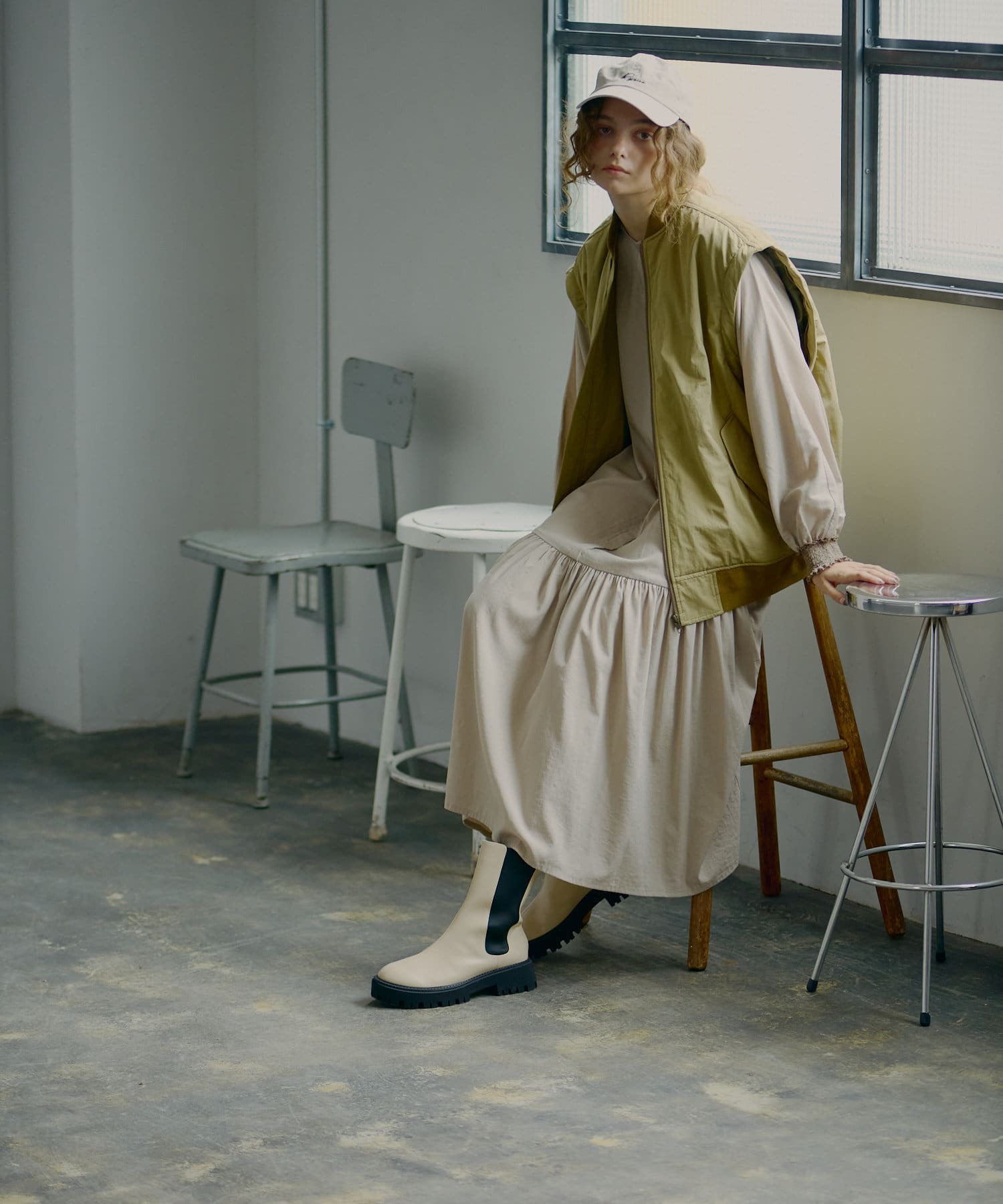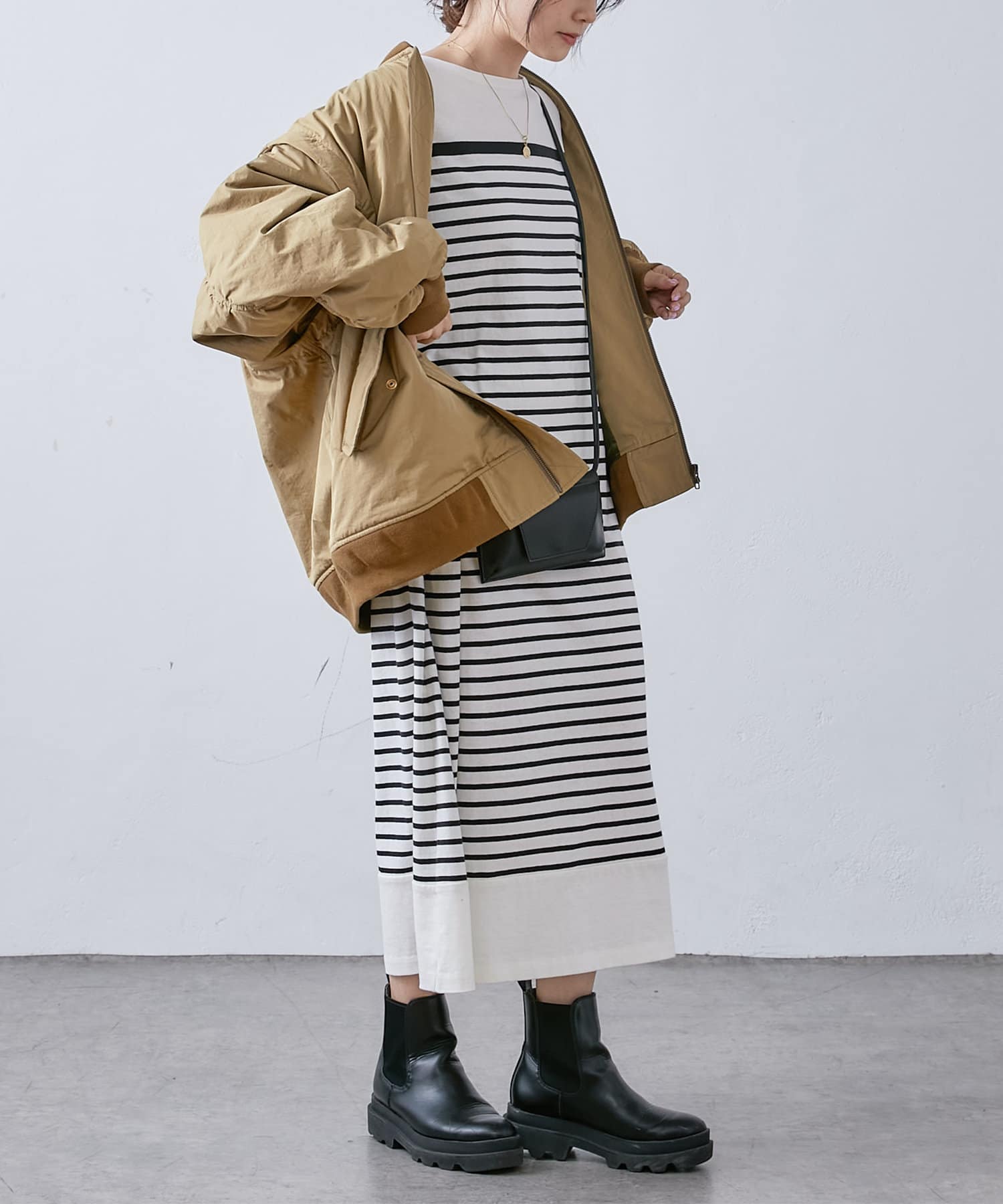 きれいめなスラックスやレディライクなナロースカート、ワンピースとのミックススタイルもおすすめ。