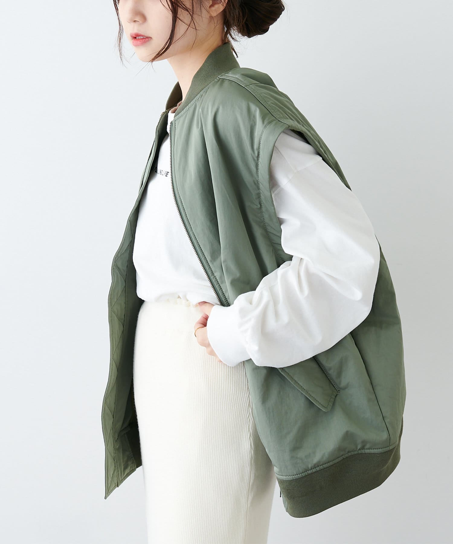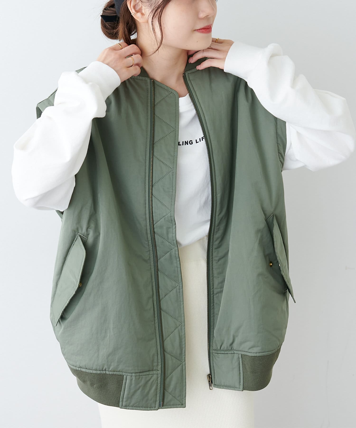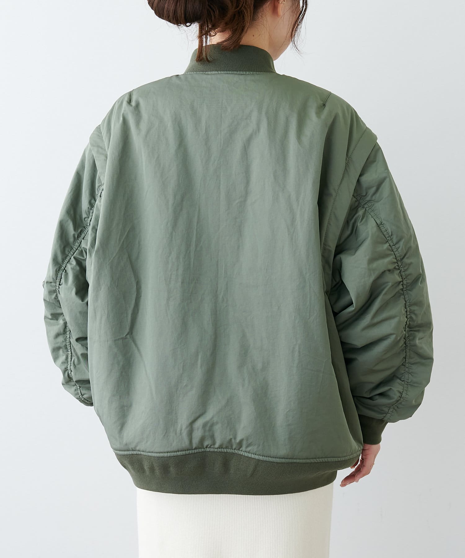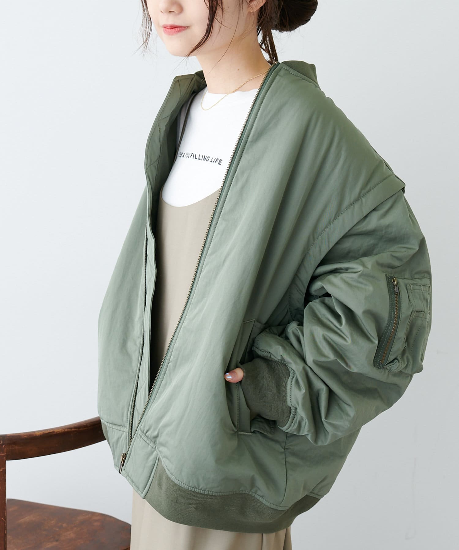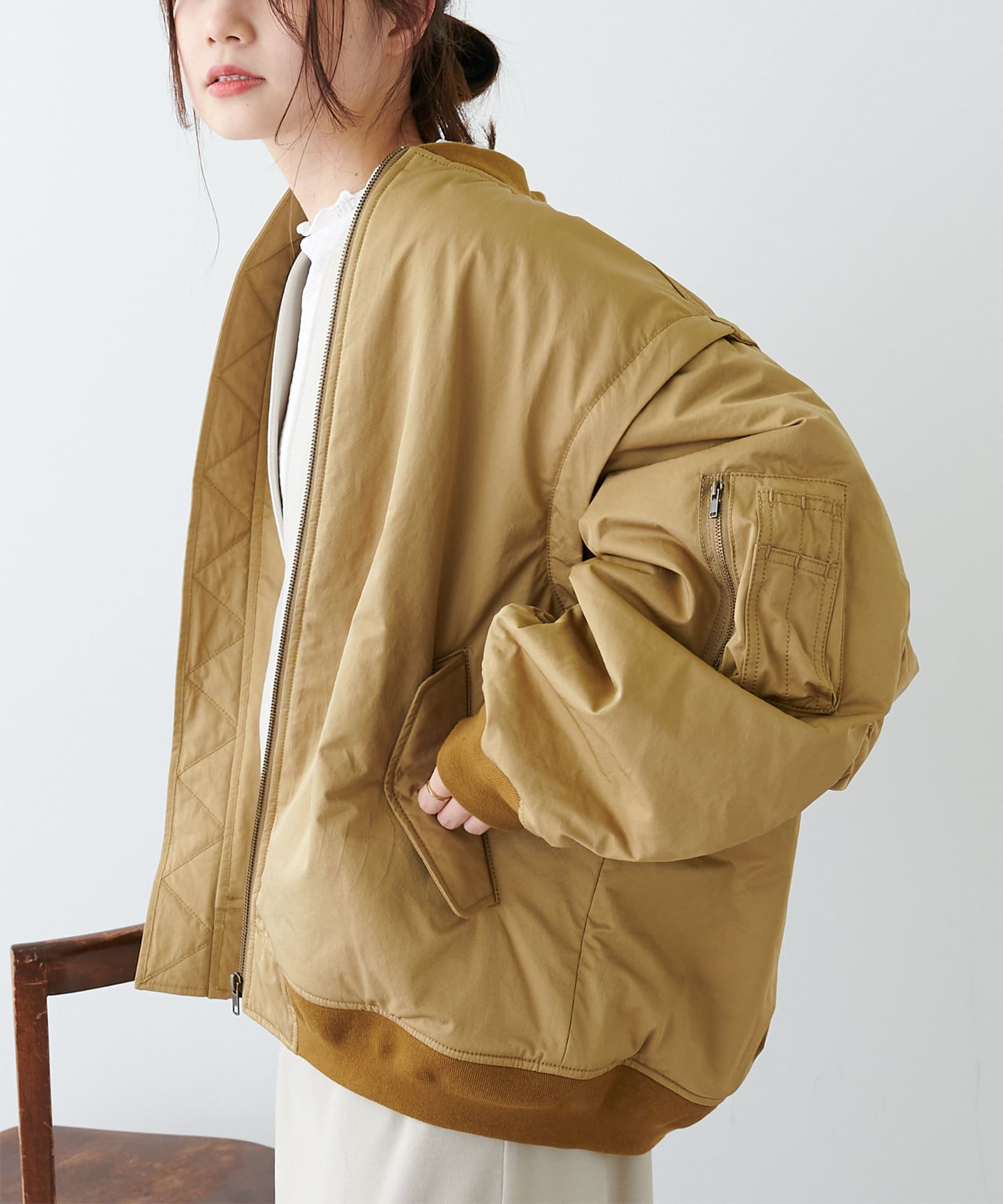 袖の取り外せば季節の変わり目にベストとして、寒くなる頃にはMA-1としてロングシーズン使えるアイテムです。