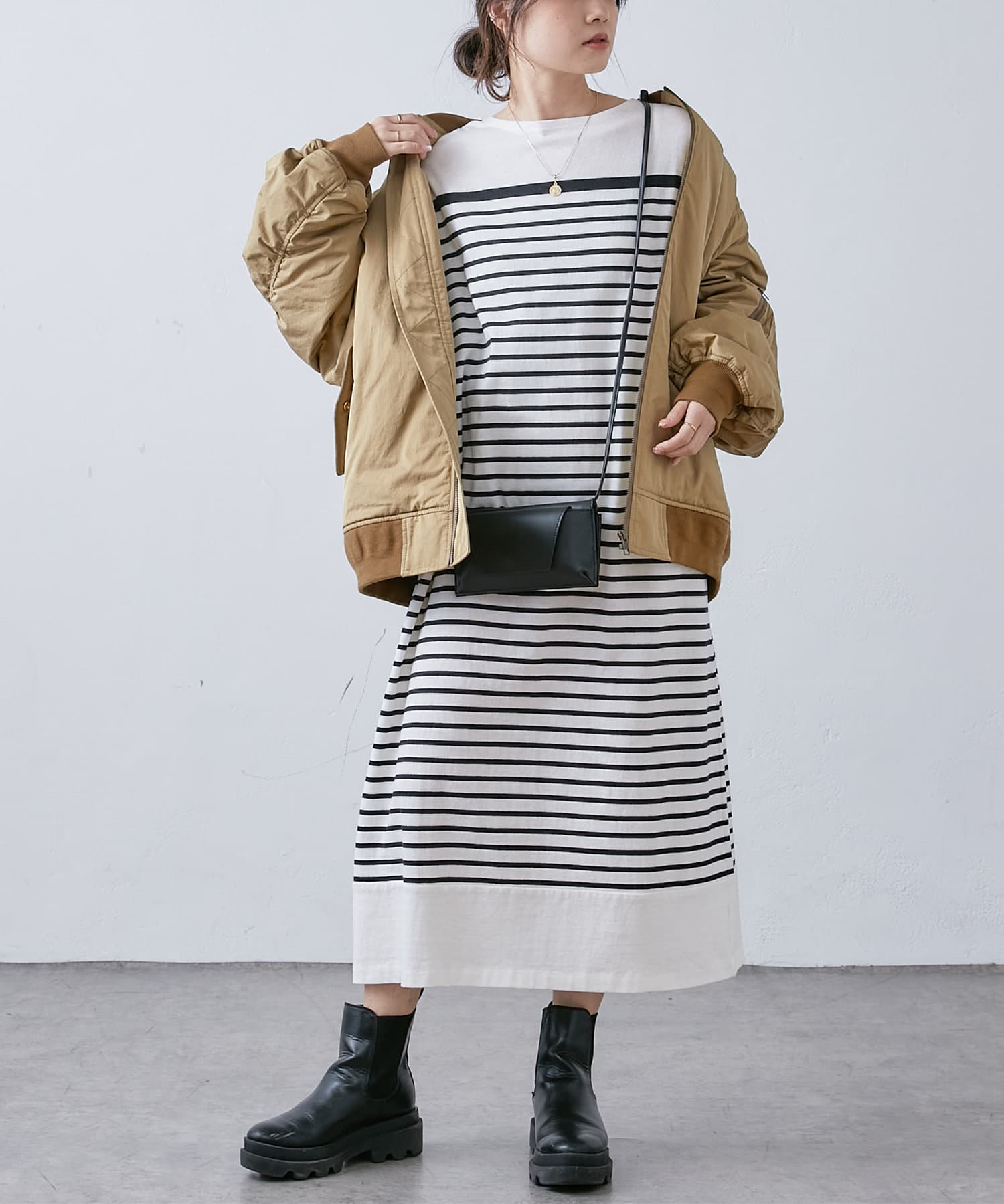 インナーにはロゴTシャツやボーダーTシャツはもちろん