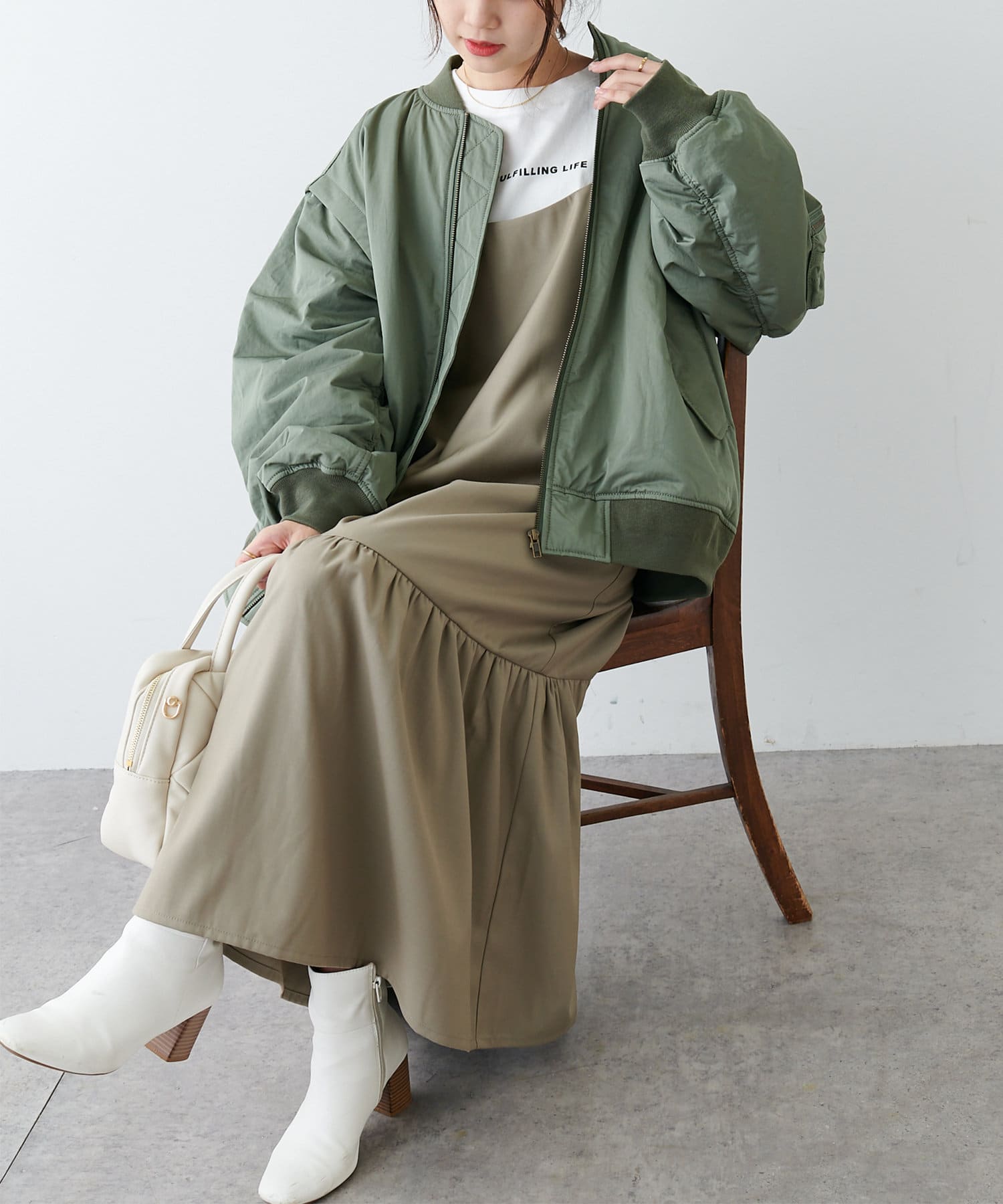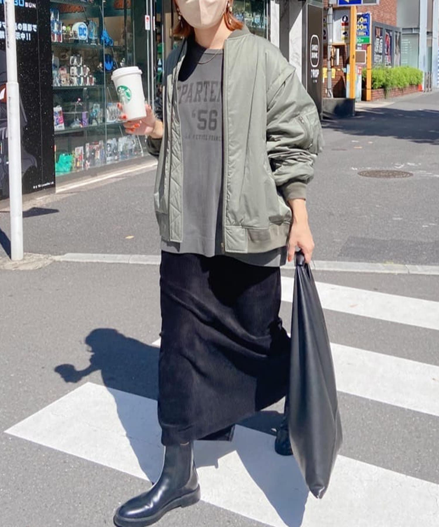 MAー1を購入するのは初めてでした。私には縁が無いと思っていたのですが、スタッフさんのコーデを見ては かわいいー かっこいいー とハマり、チャレンジしてみようと購入しました。可愛くもかっこよくも着れて かつ、あたたかい!これからたくさん着ようと思います。