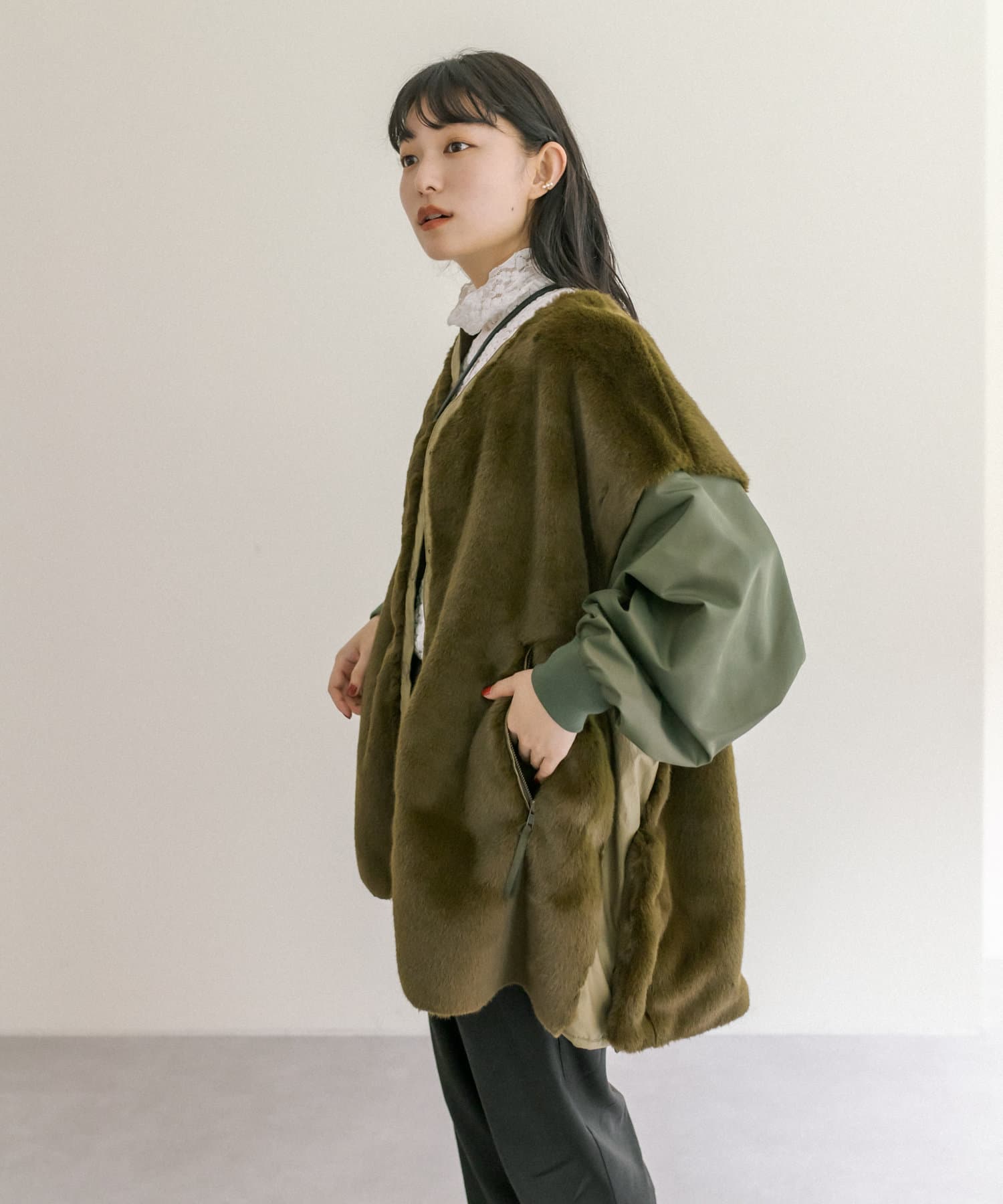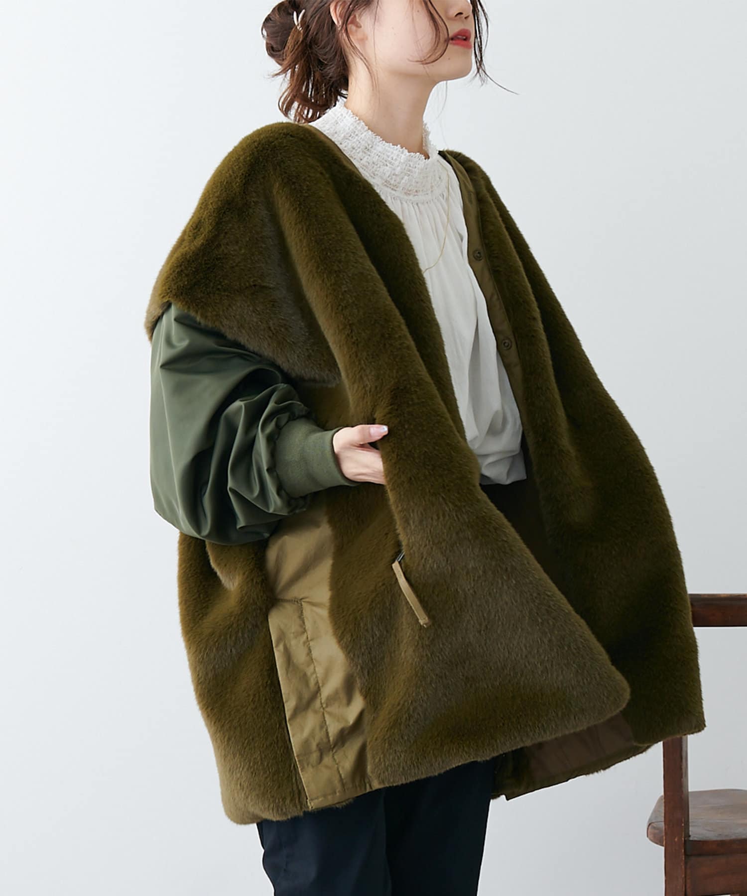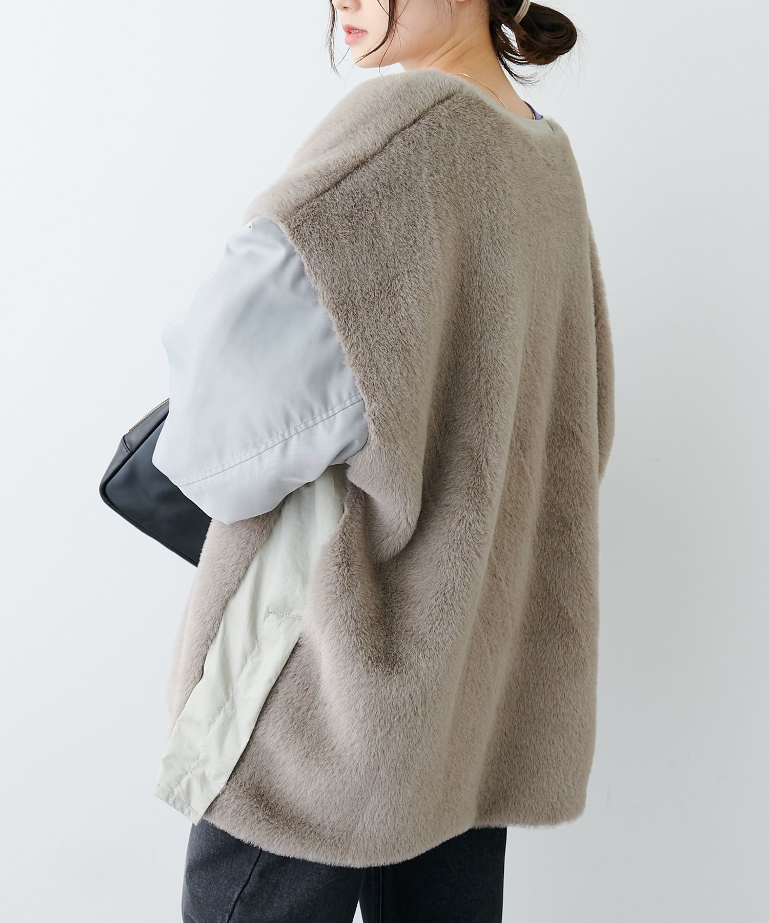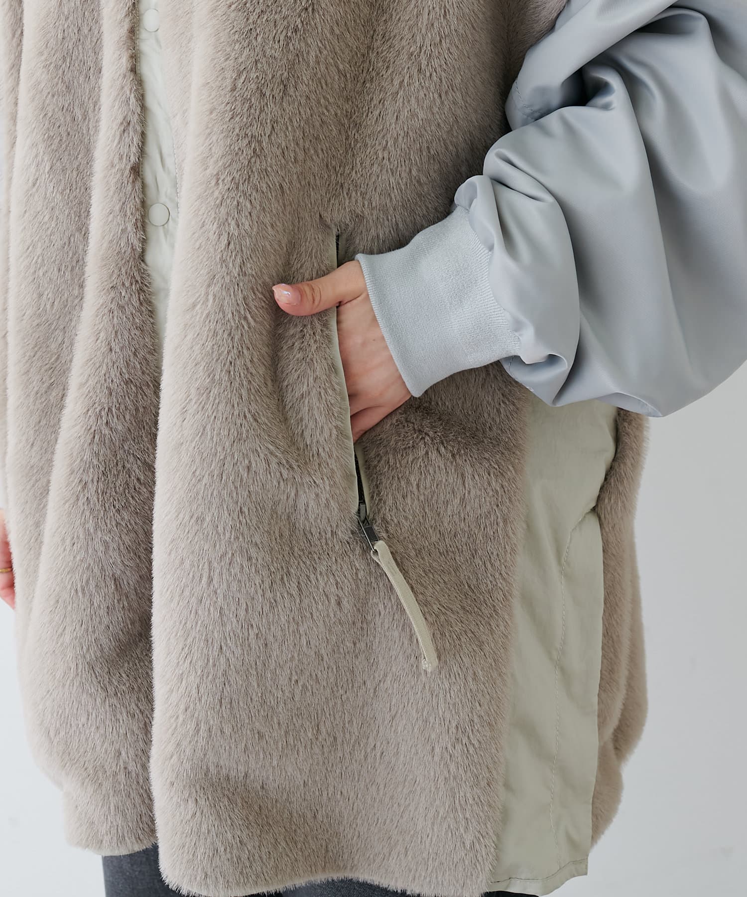 身頃には肌触り滑らかなフォックスライクのファーを使用。