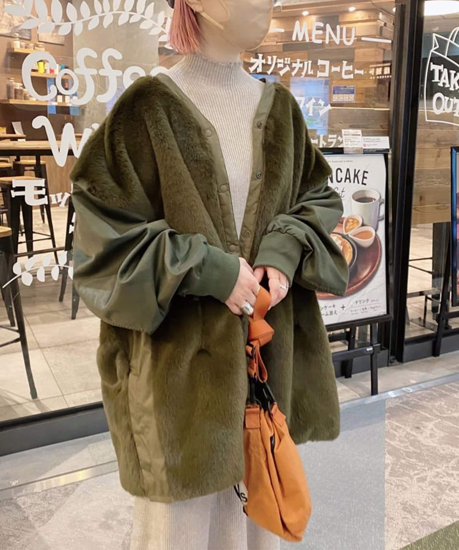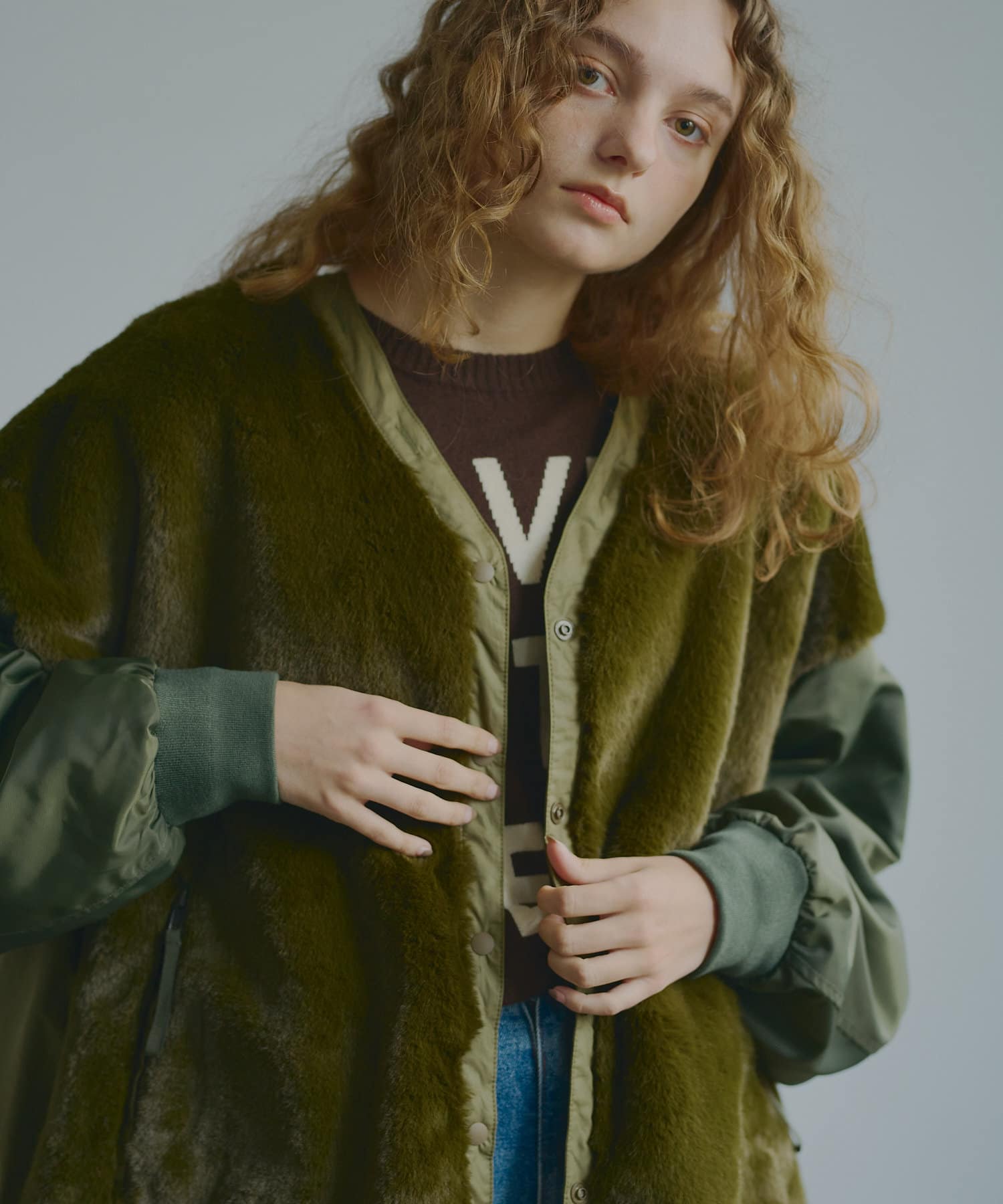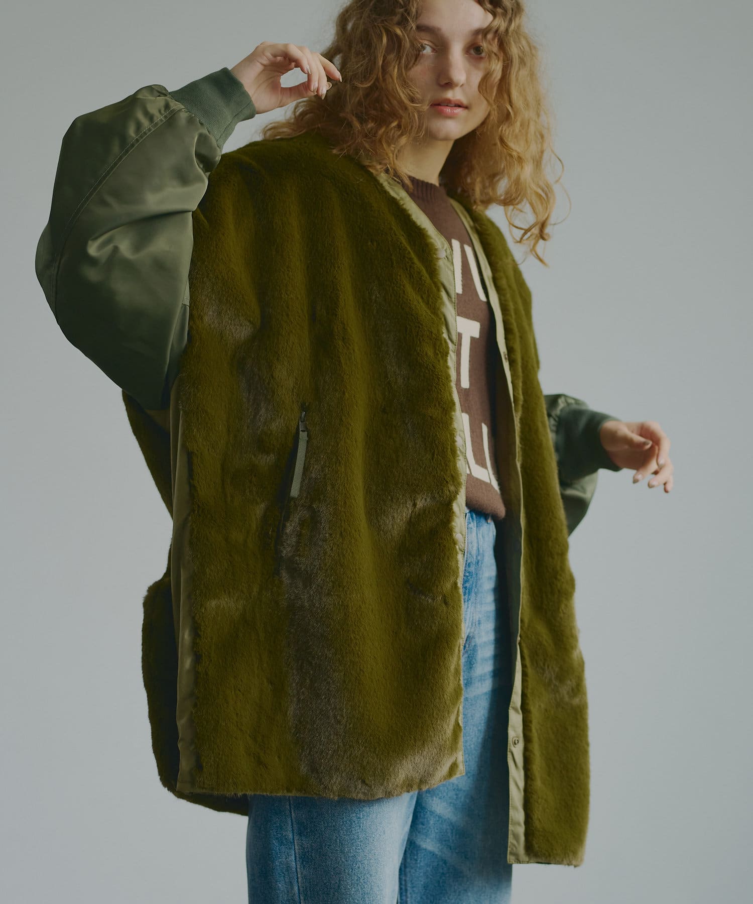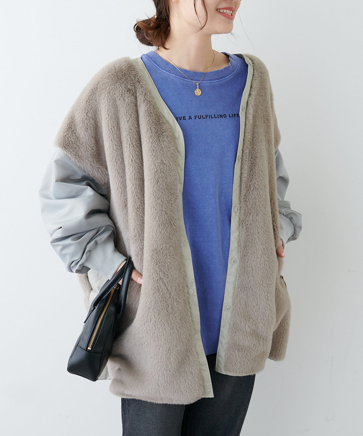 身頃には肌触り滑らかなフォックスライクのファーを使用。