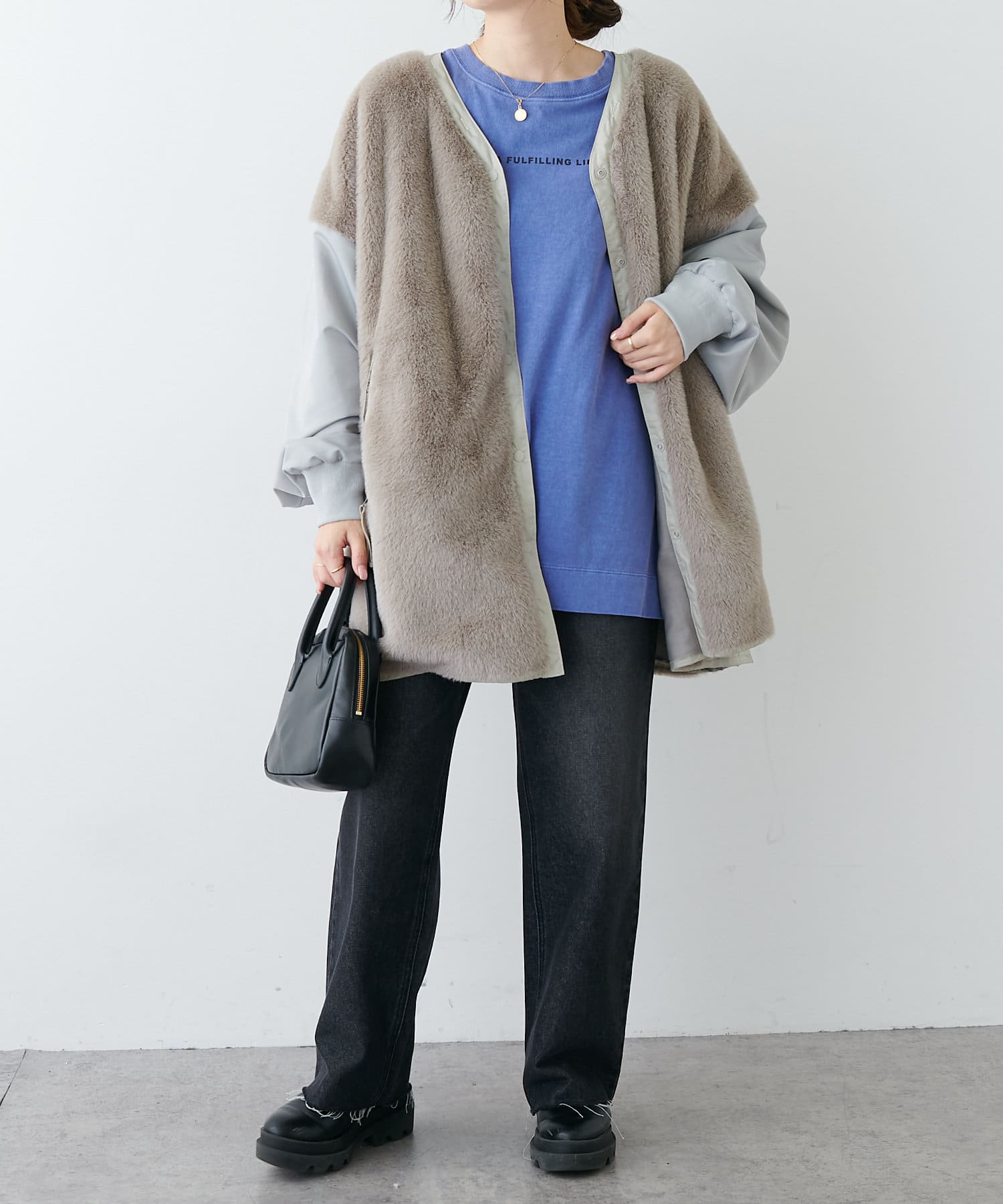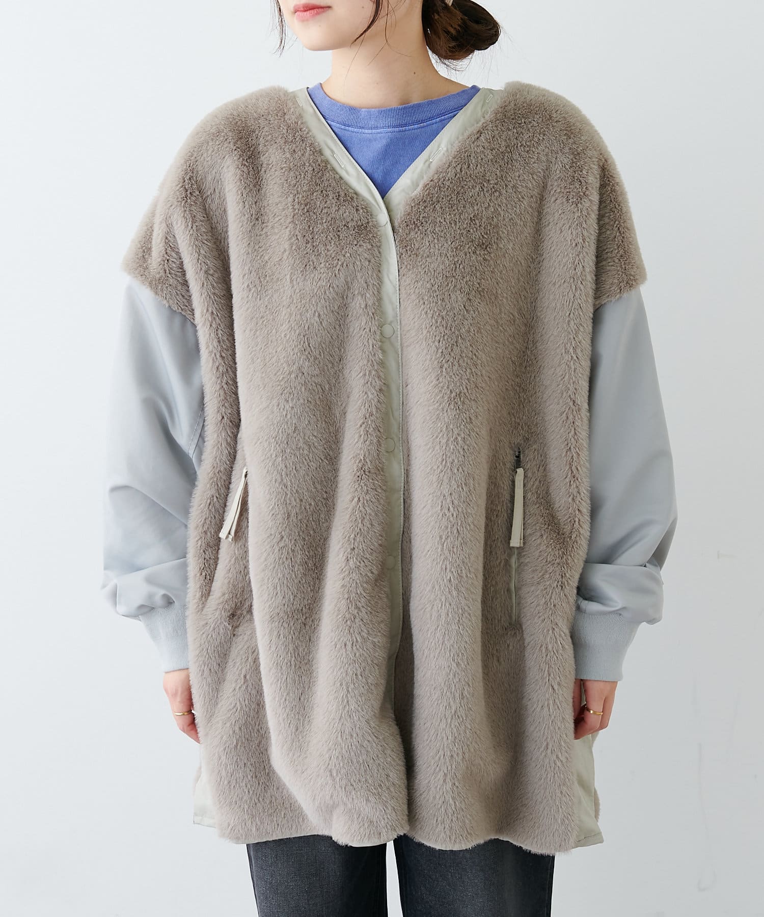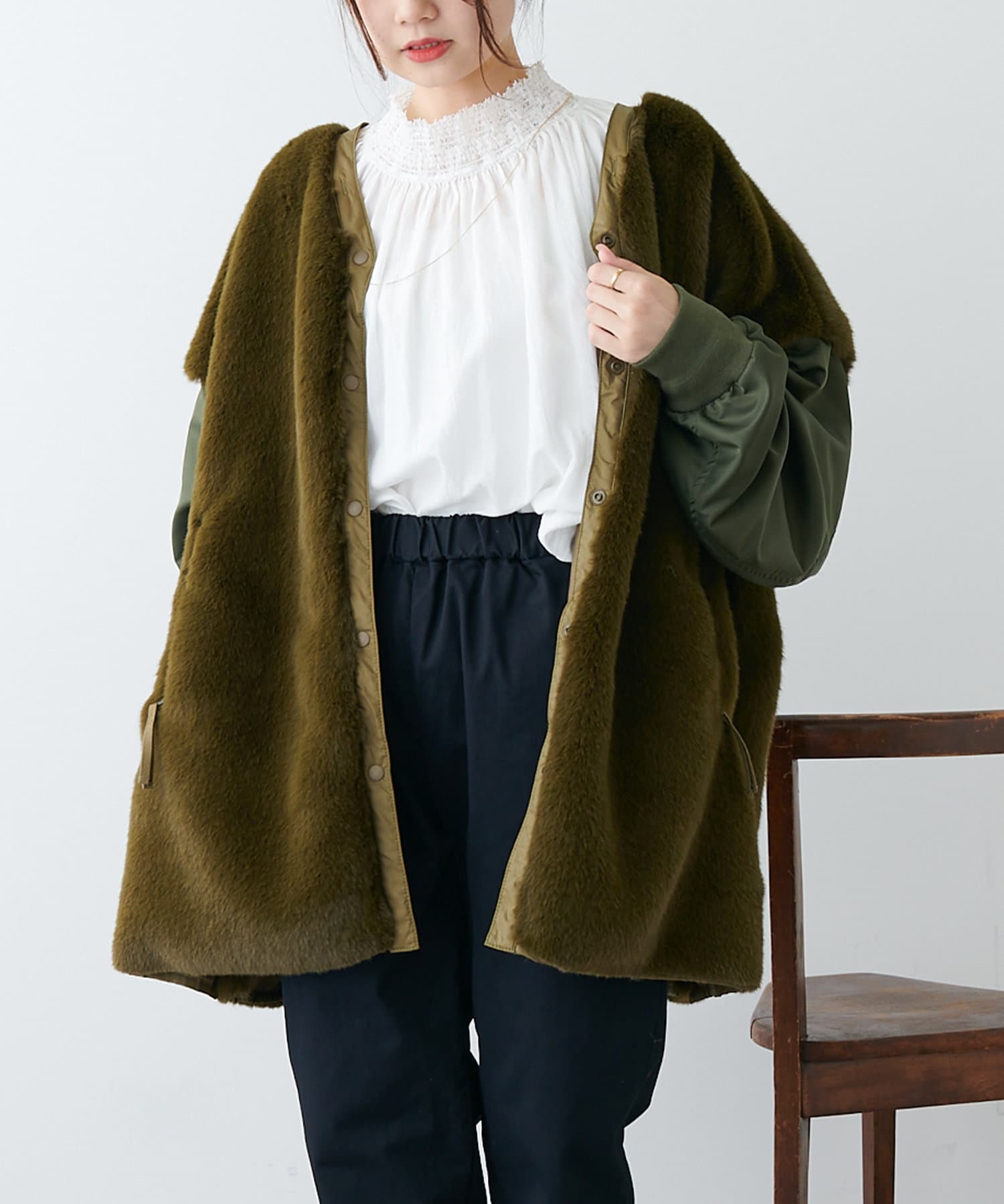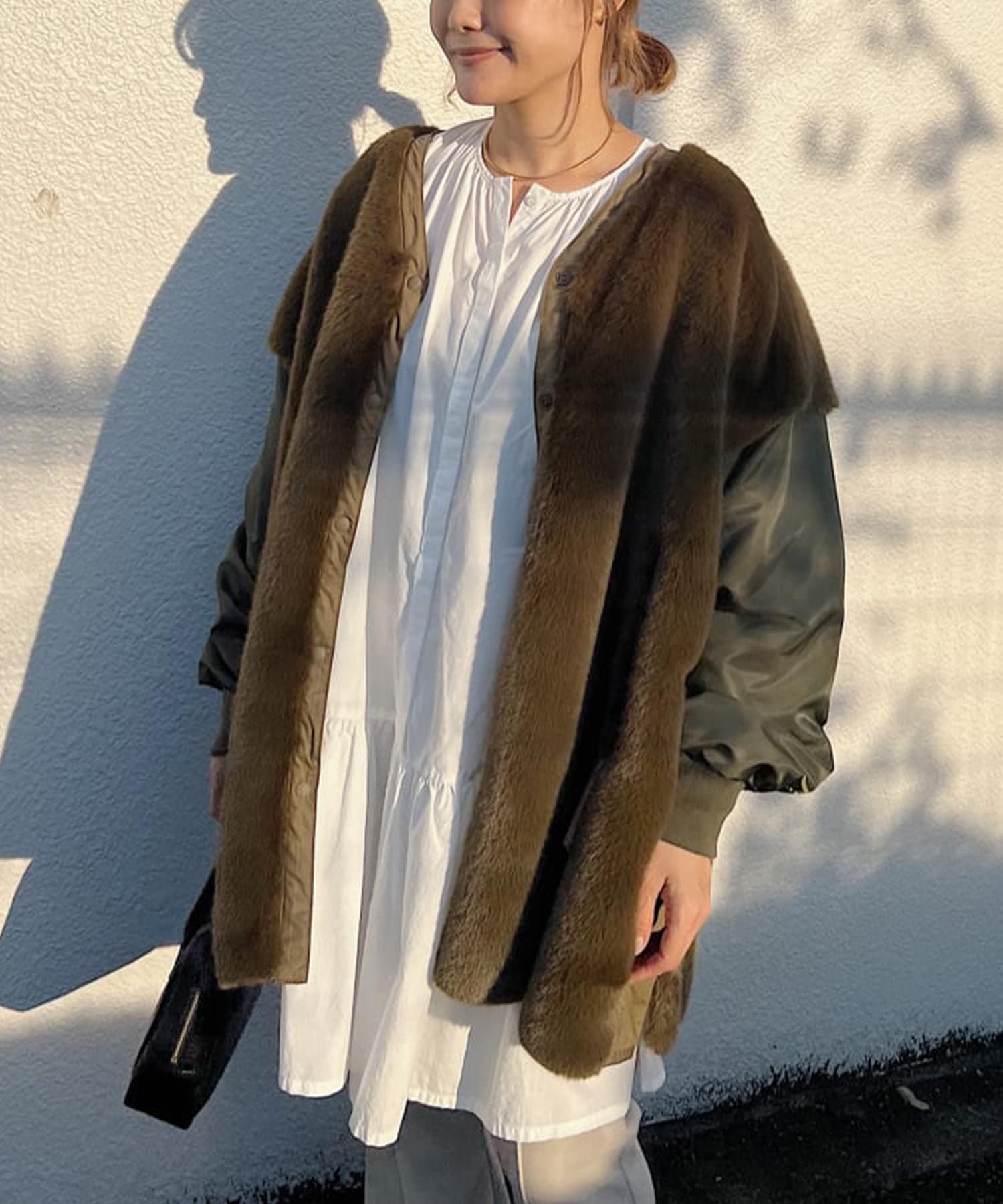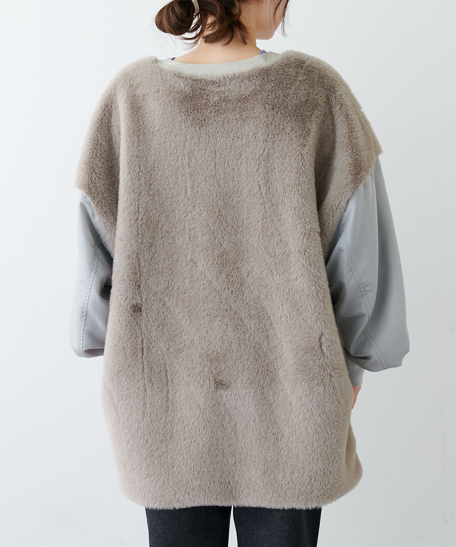 身頃には肌触り滑らかなフォックスライクのファーを使用。