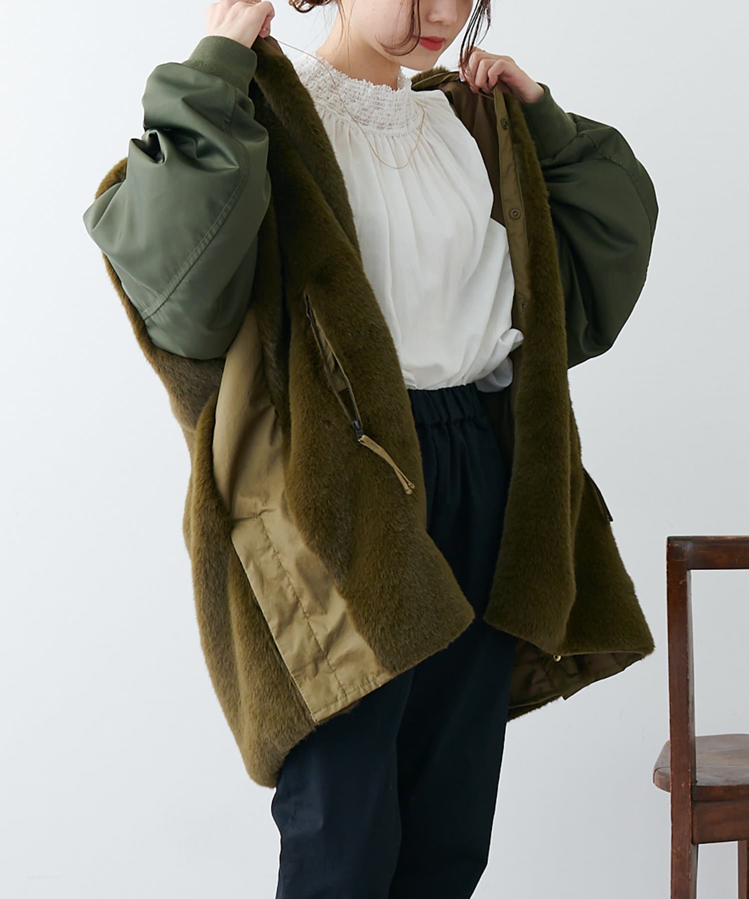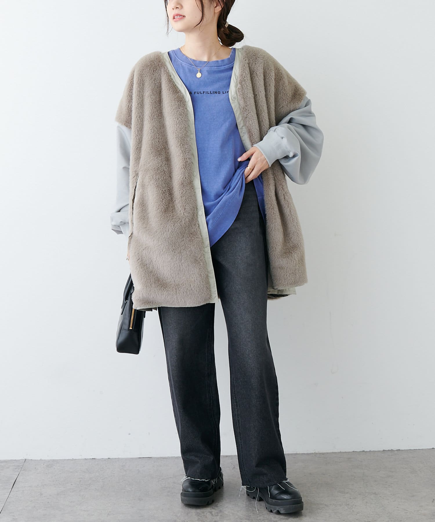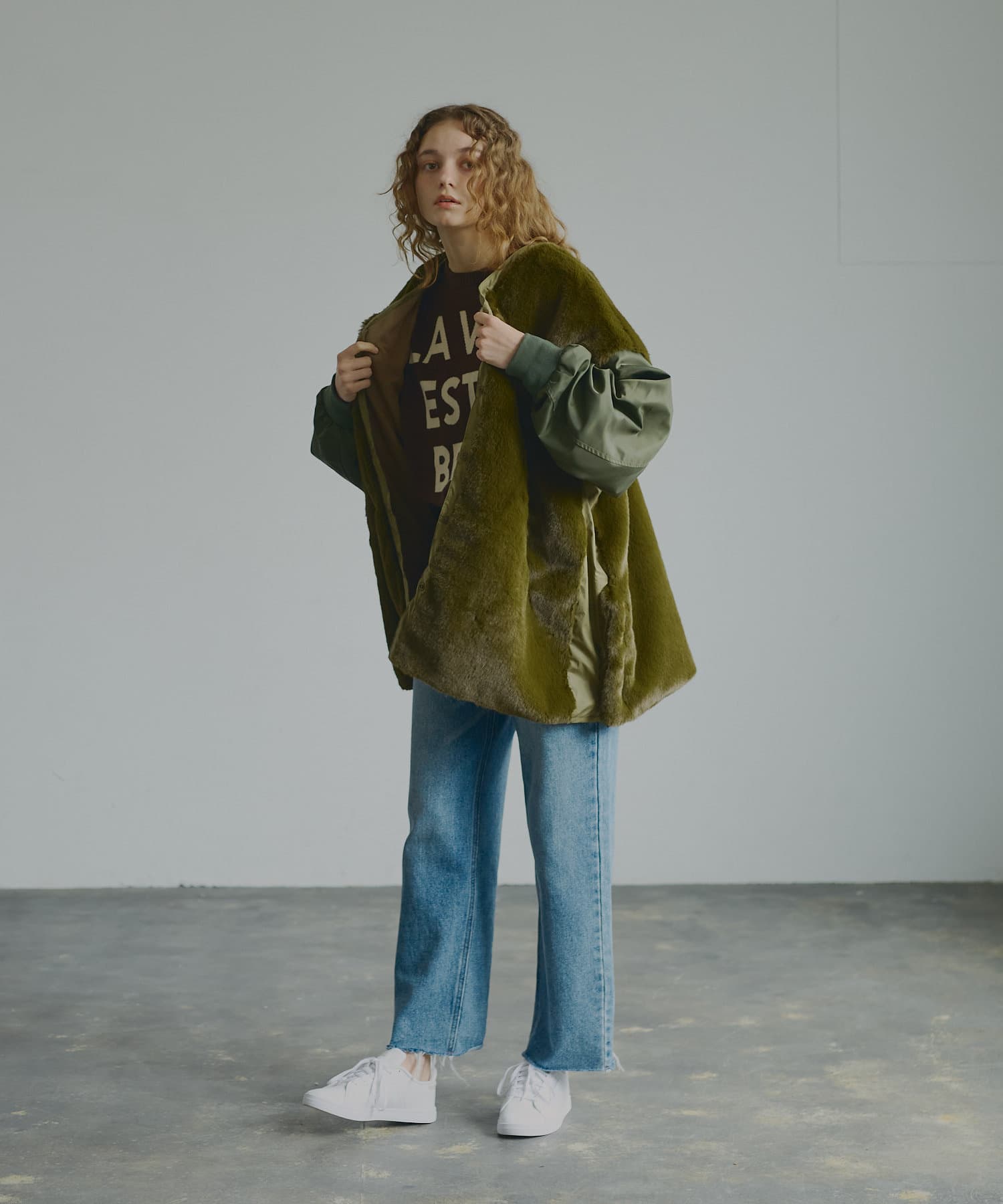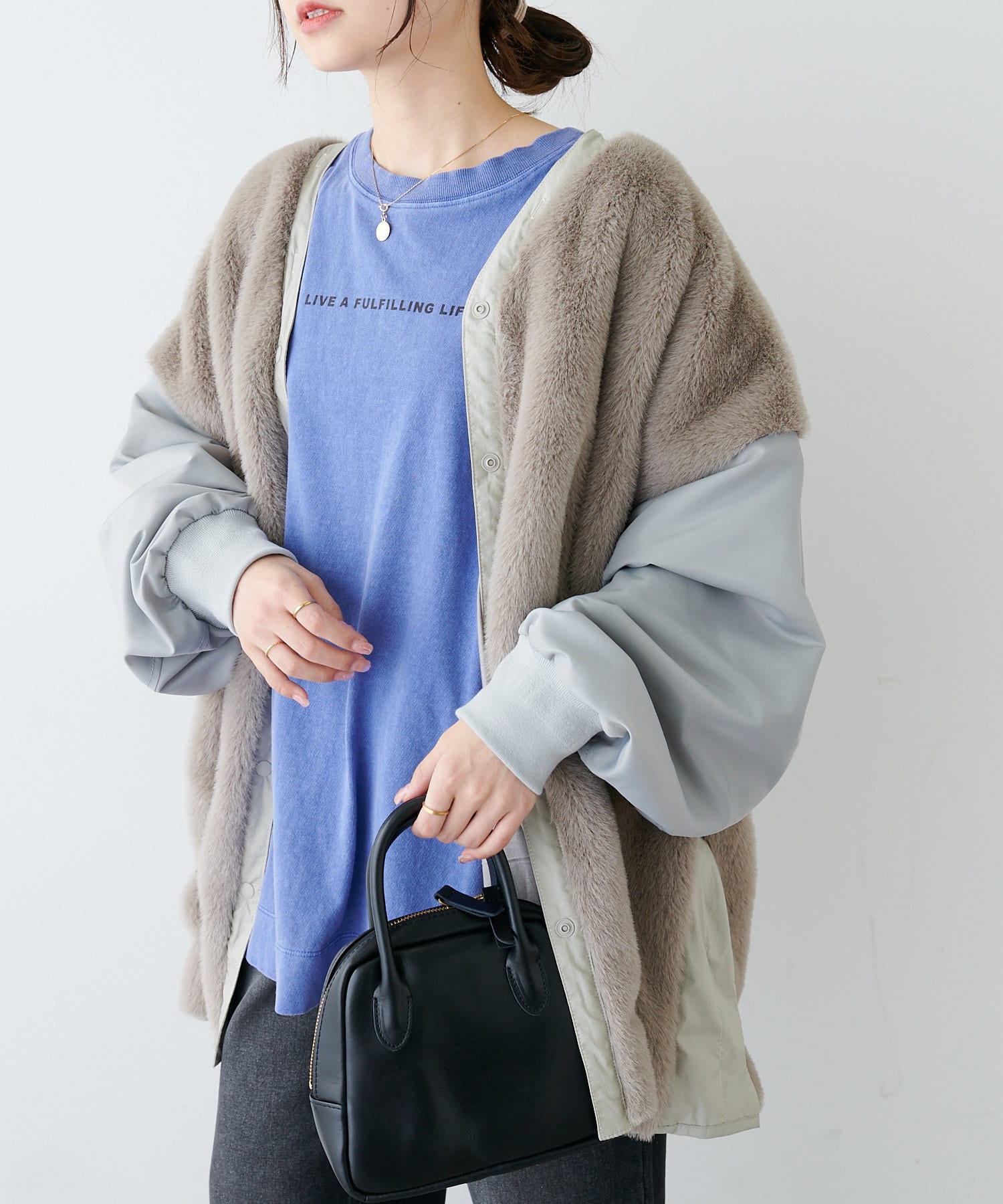 身頃には肌触り滑らかなフォックスライクのファーを使用。
