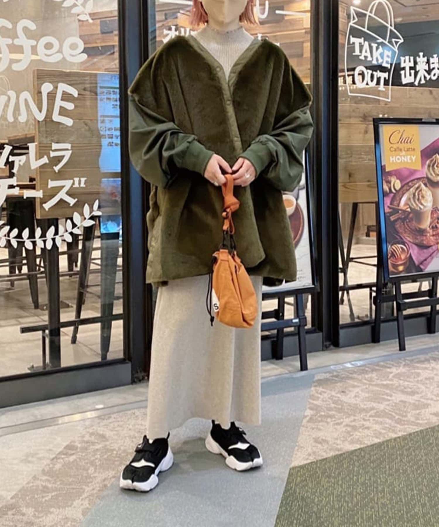 お尻が隠れるオーバーサイズなので、パンツやスカート
