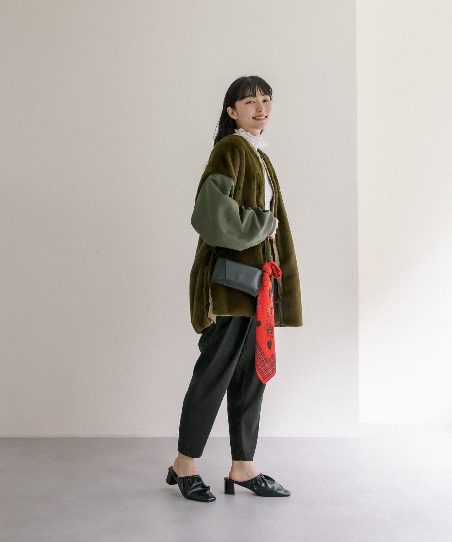 素材感:毛足が長く、滑らかな肌触りのファー素材です。