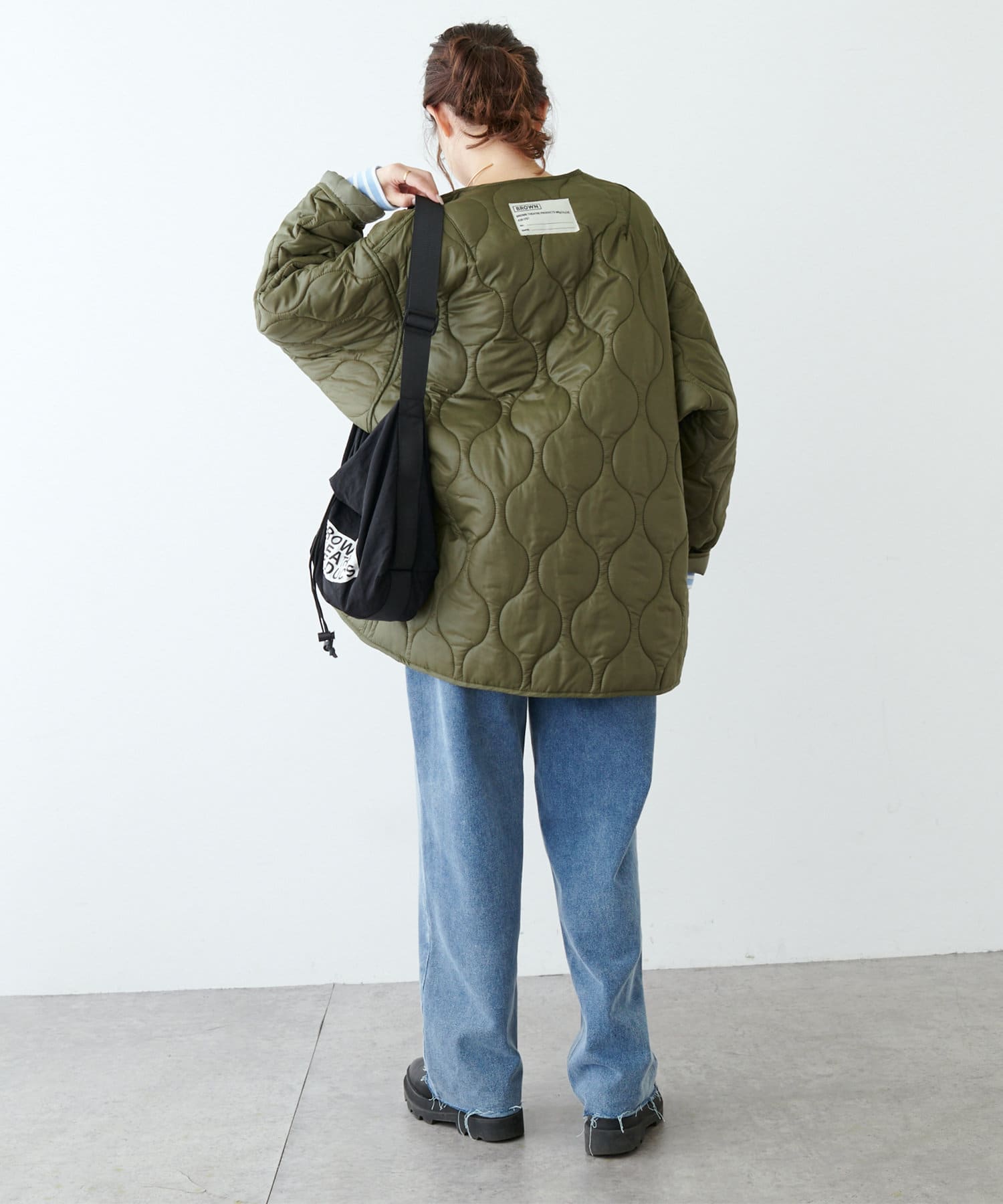 オーバーサイズシルエットで袖幅も広く、ボリューム感のあるトップスの上にも羽織ることができます。