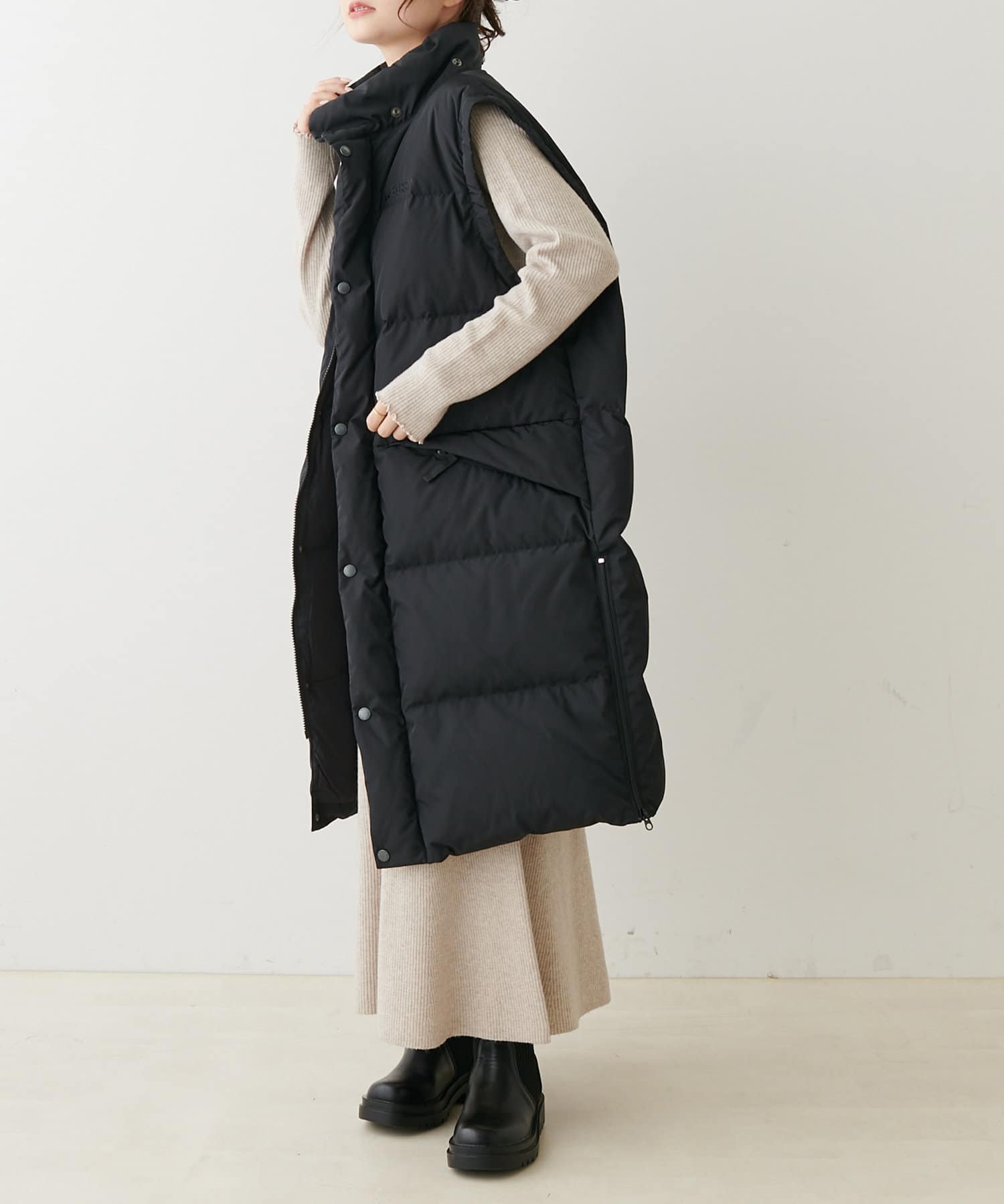 ヒップを覆う長めの丈感と太めのダウンステッチが暖かな着心地を叶えてくれます。