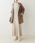 胴回りがゆったりしすぎて、昔のママコート風。着崩したり、ウエストをちょっと絞ったりして着ています