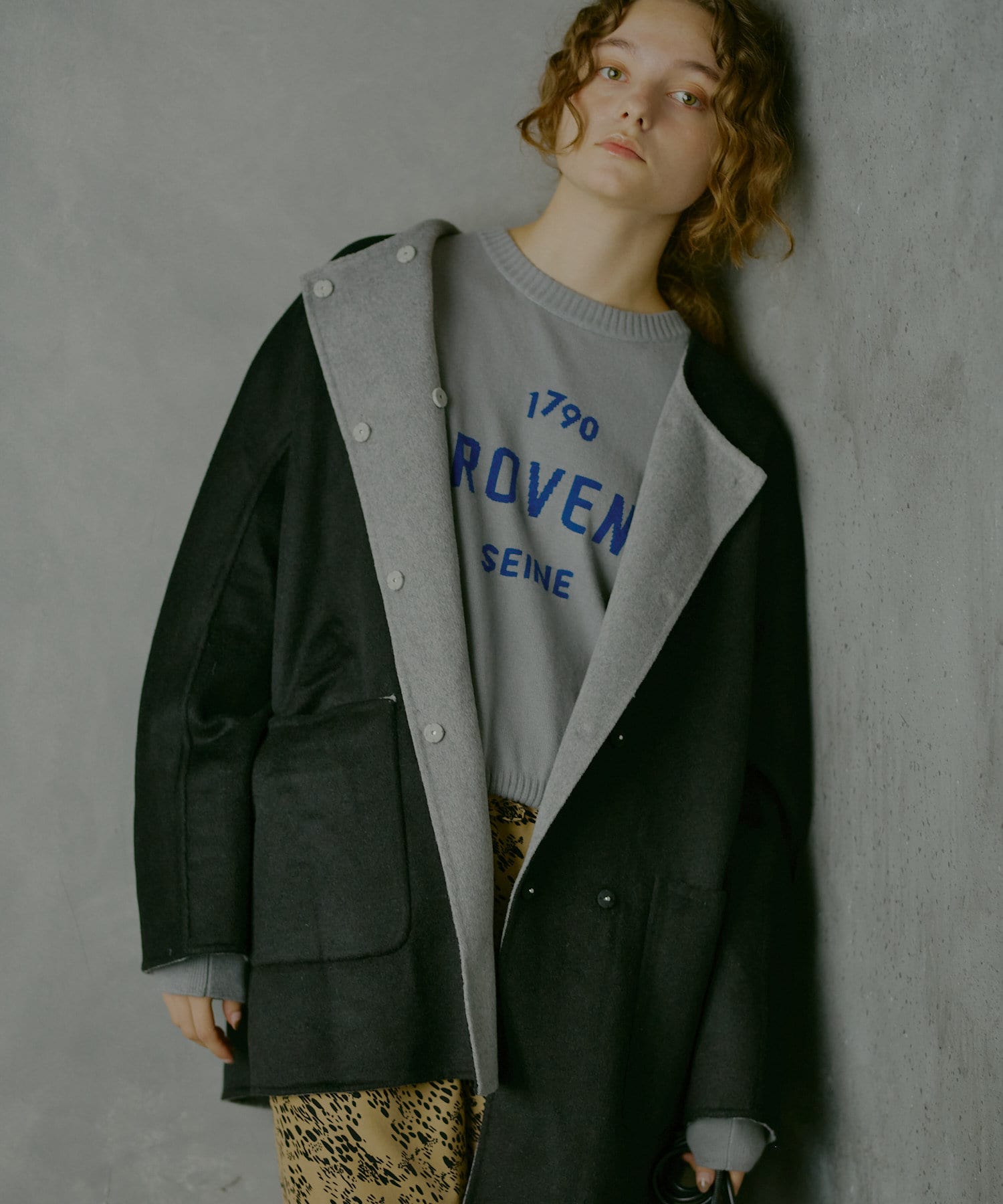 ブラウスだけでなくフードスウェットや厚手のニットも羽織りやすく、秋冬の定番アウターに最適。