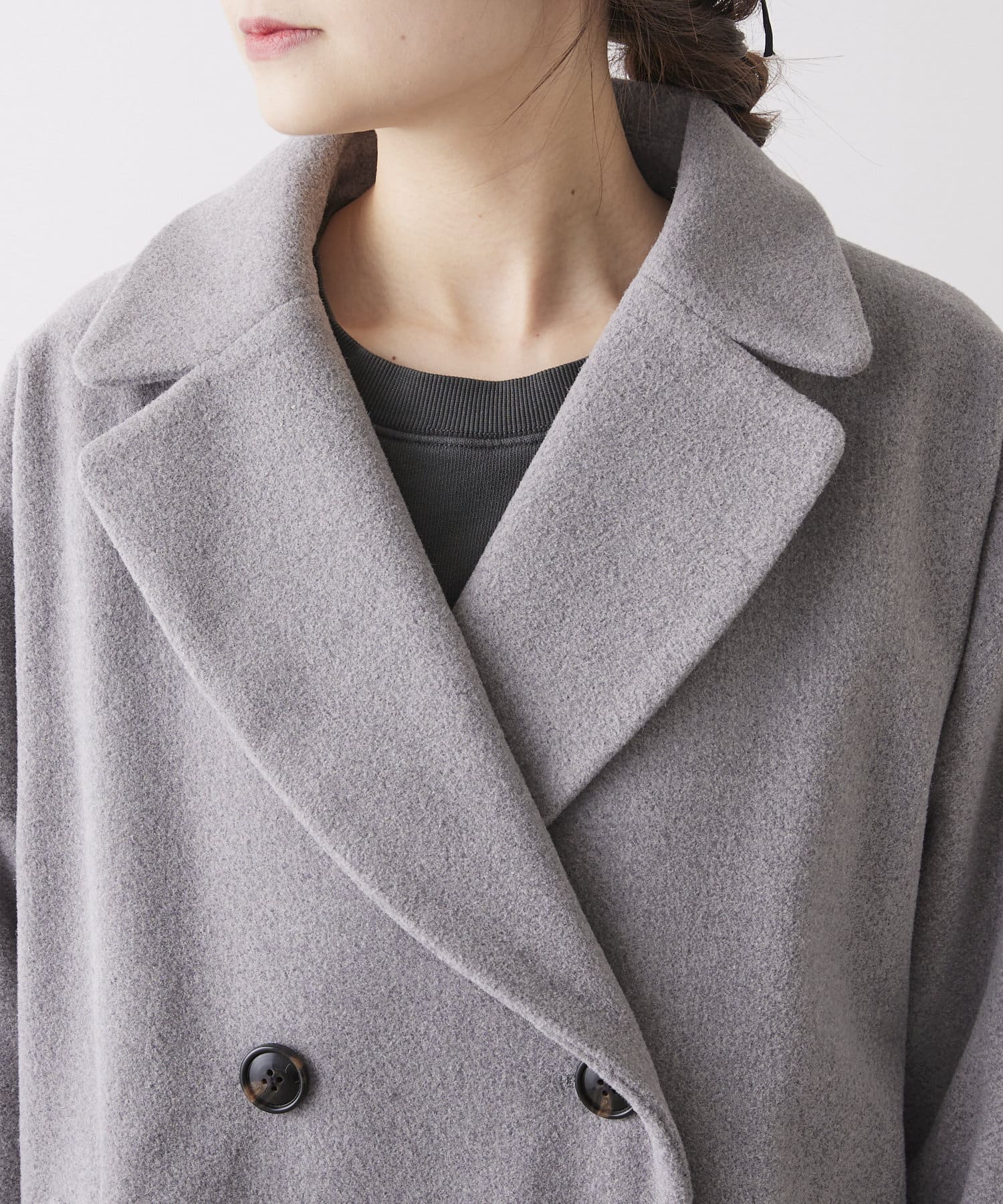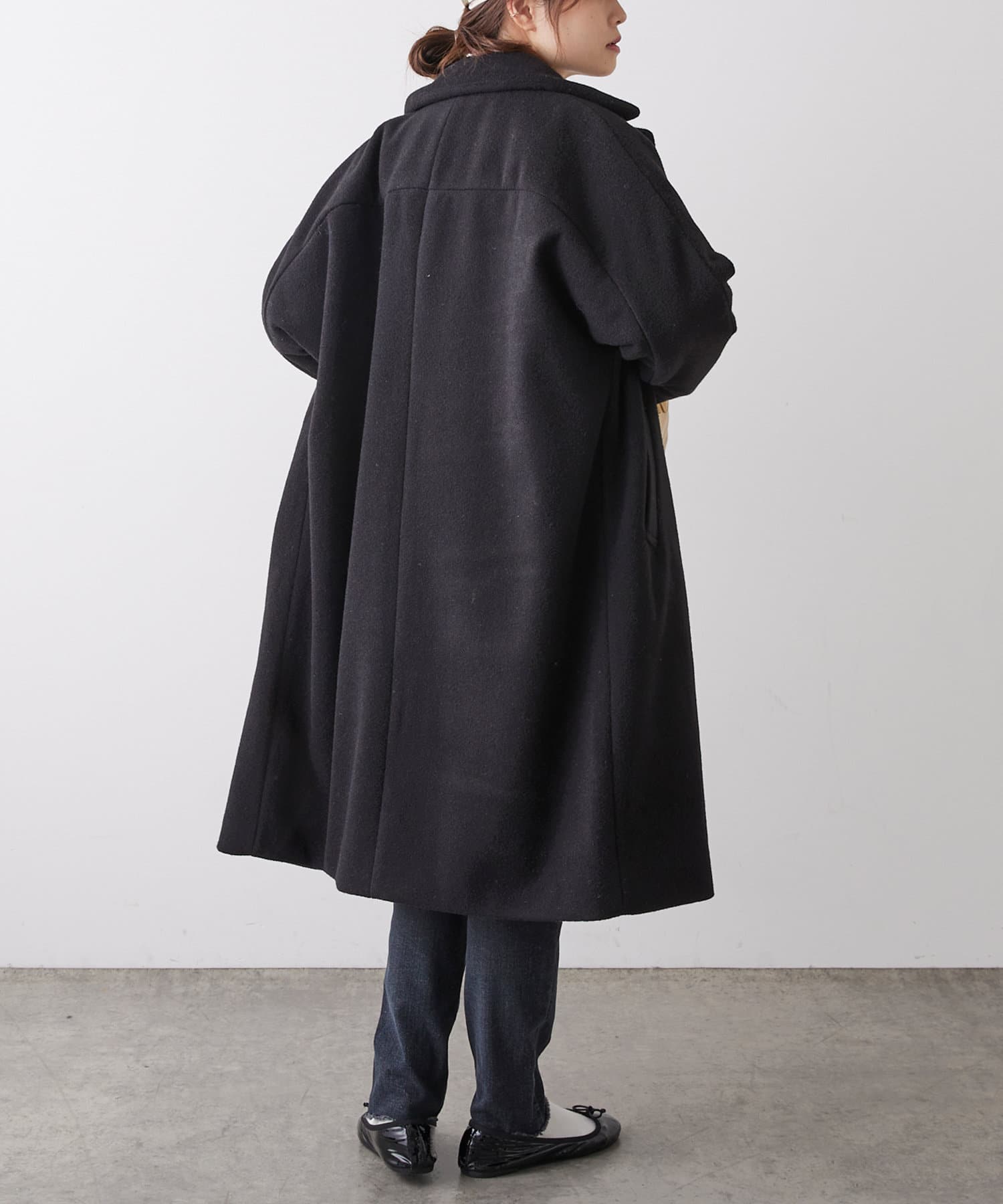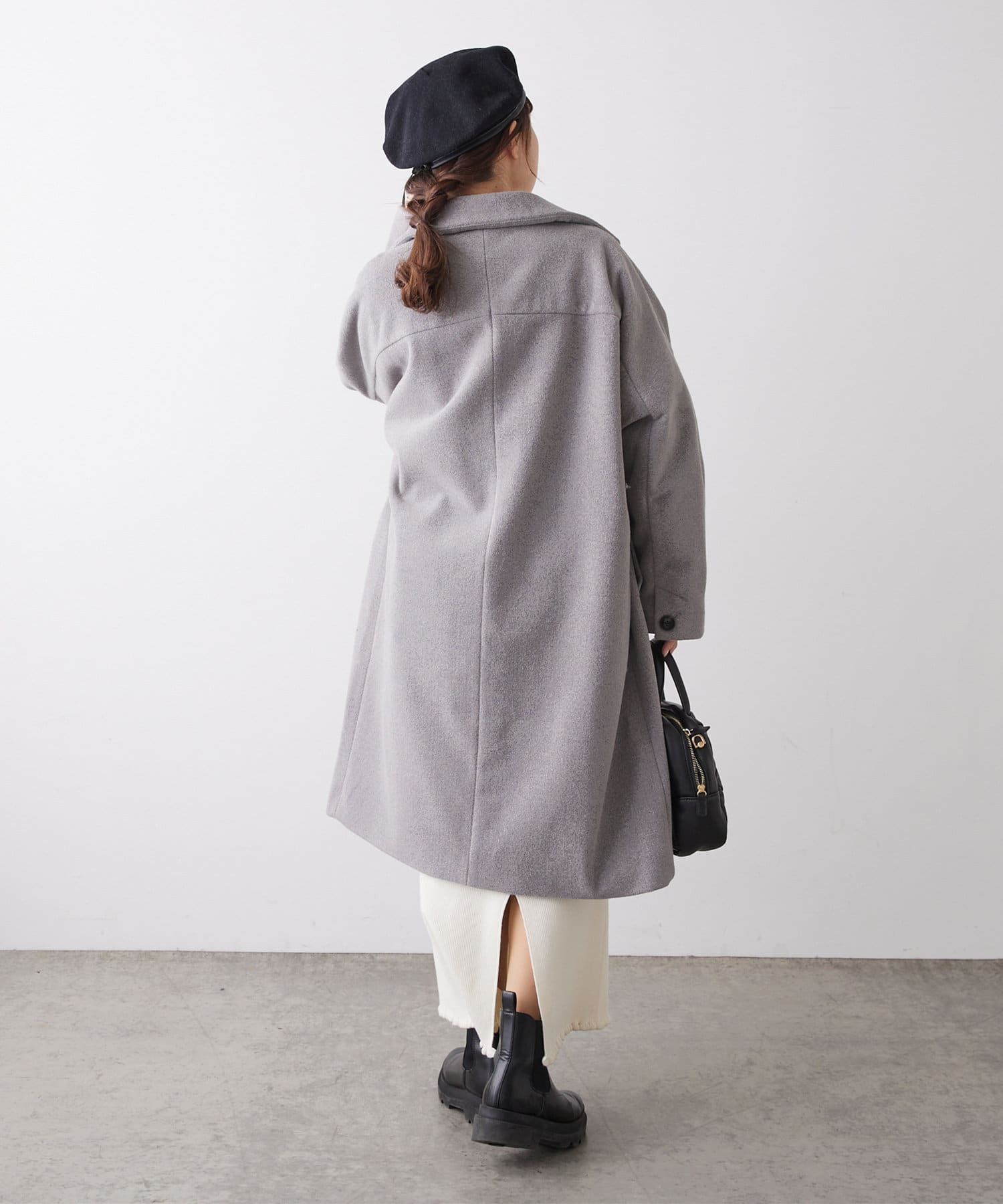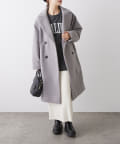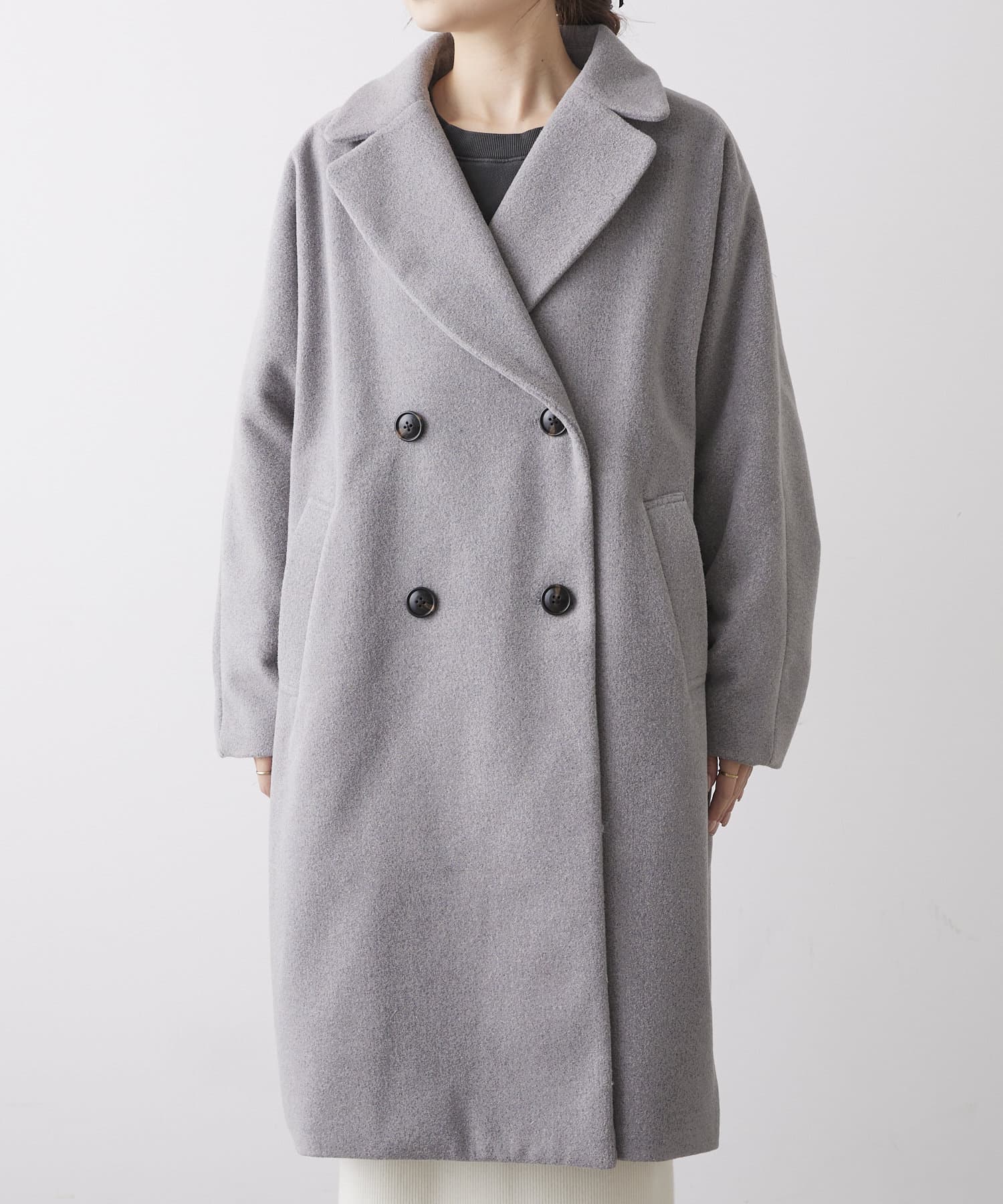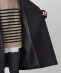 ダブルボタンで身幅にゆとりがあり、厚手のインナーの上から羽織りやすいのも嬉しいポイント。