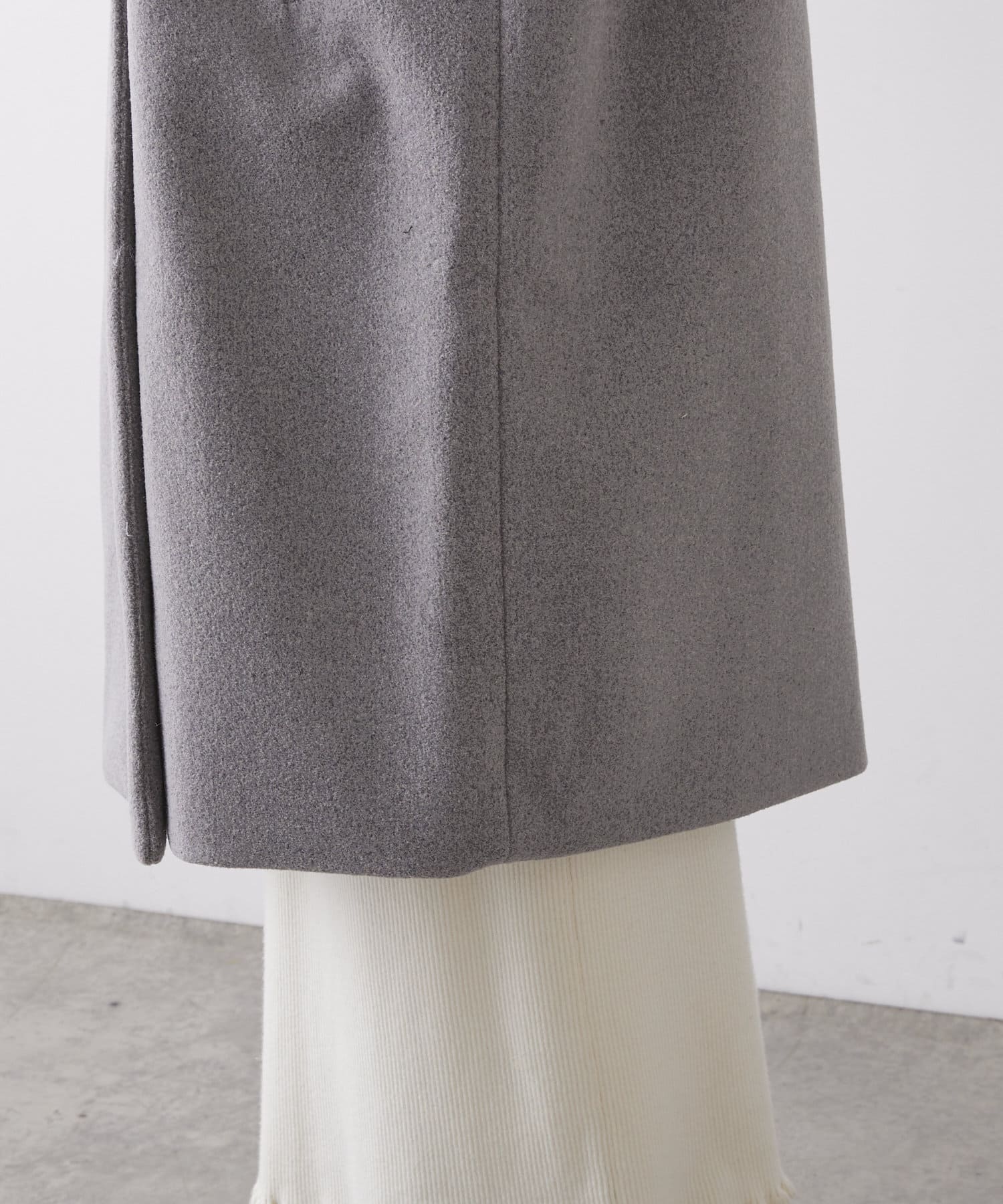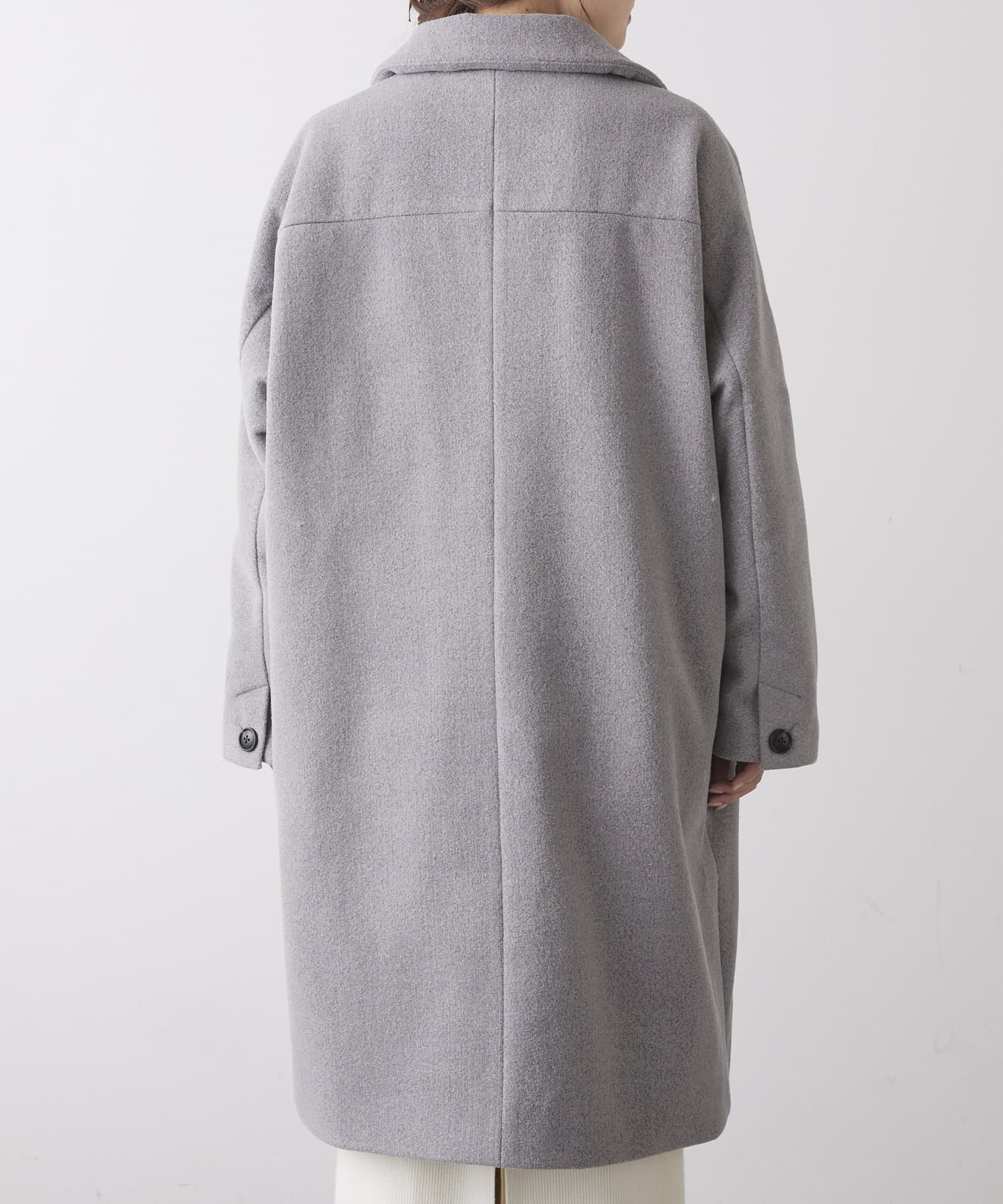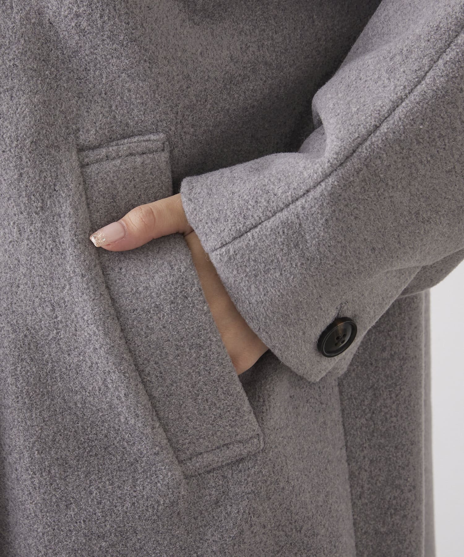 ポリエステル素材を圧縮した厚みのあるウールライクコート。