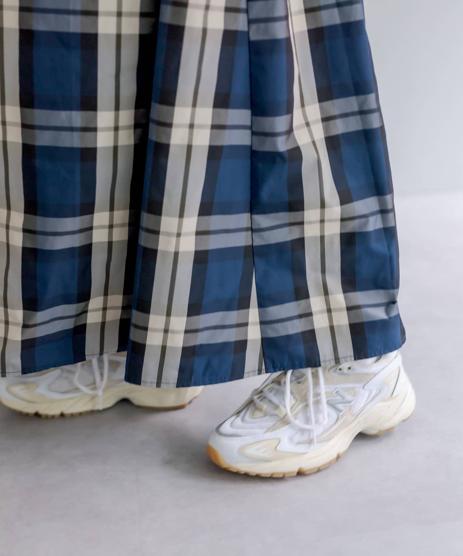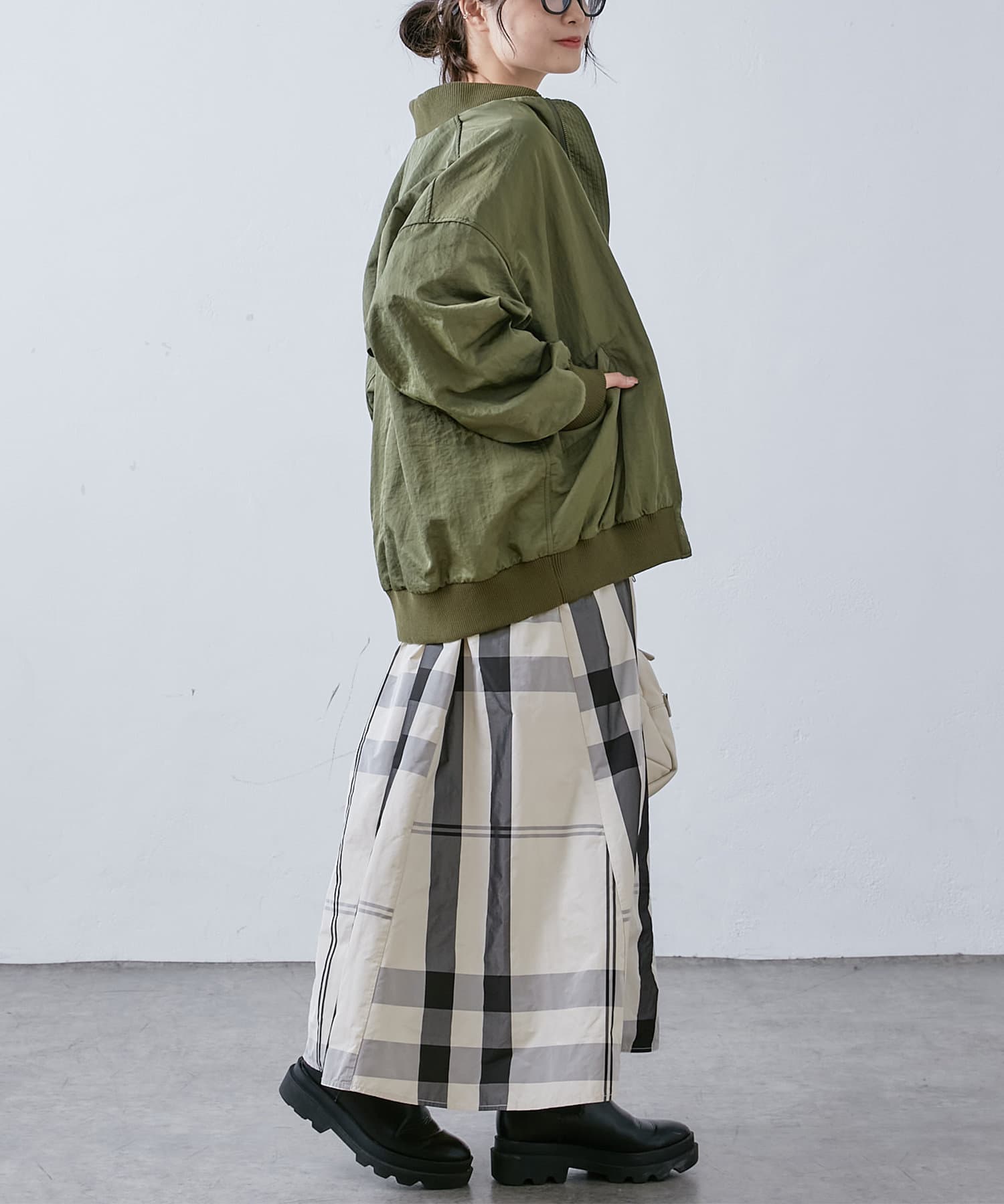 カジュアルなイメージのナイロン素材ですが、大柄のチェックが女性らしいさをプラスしてくれます。