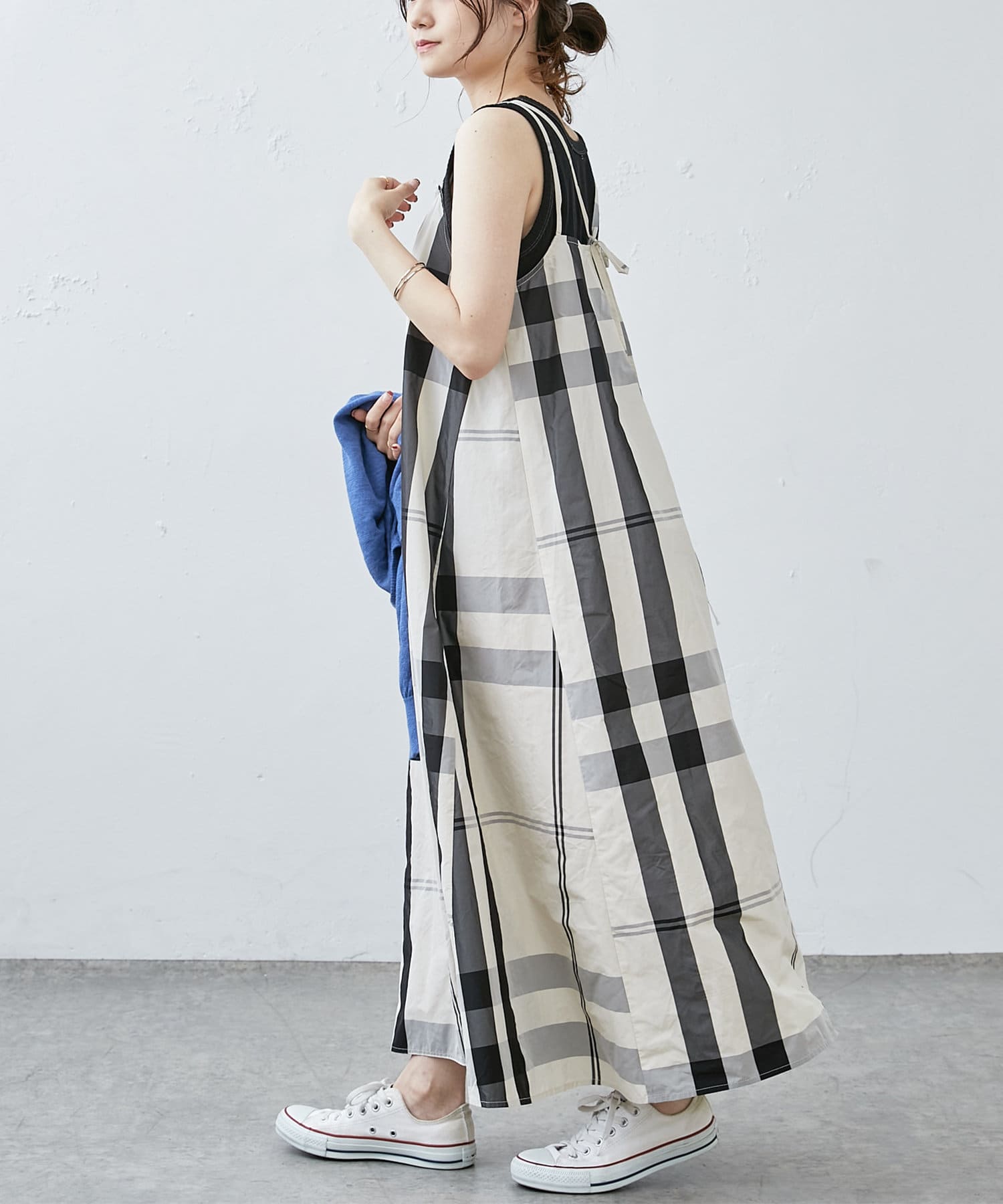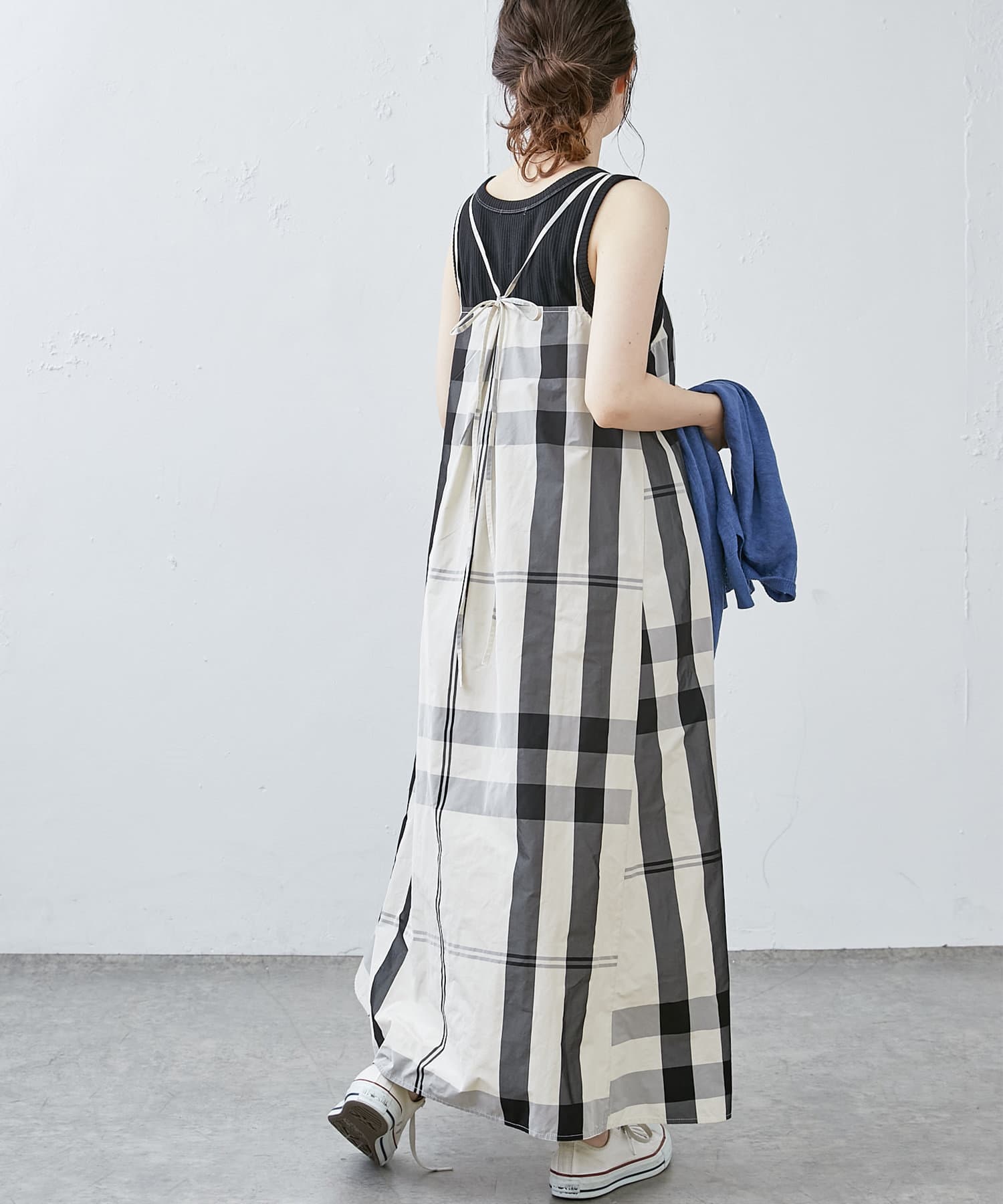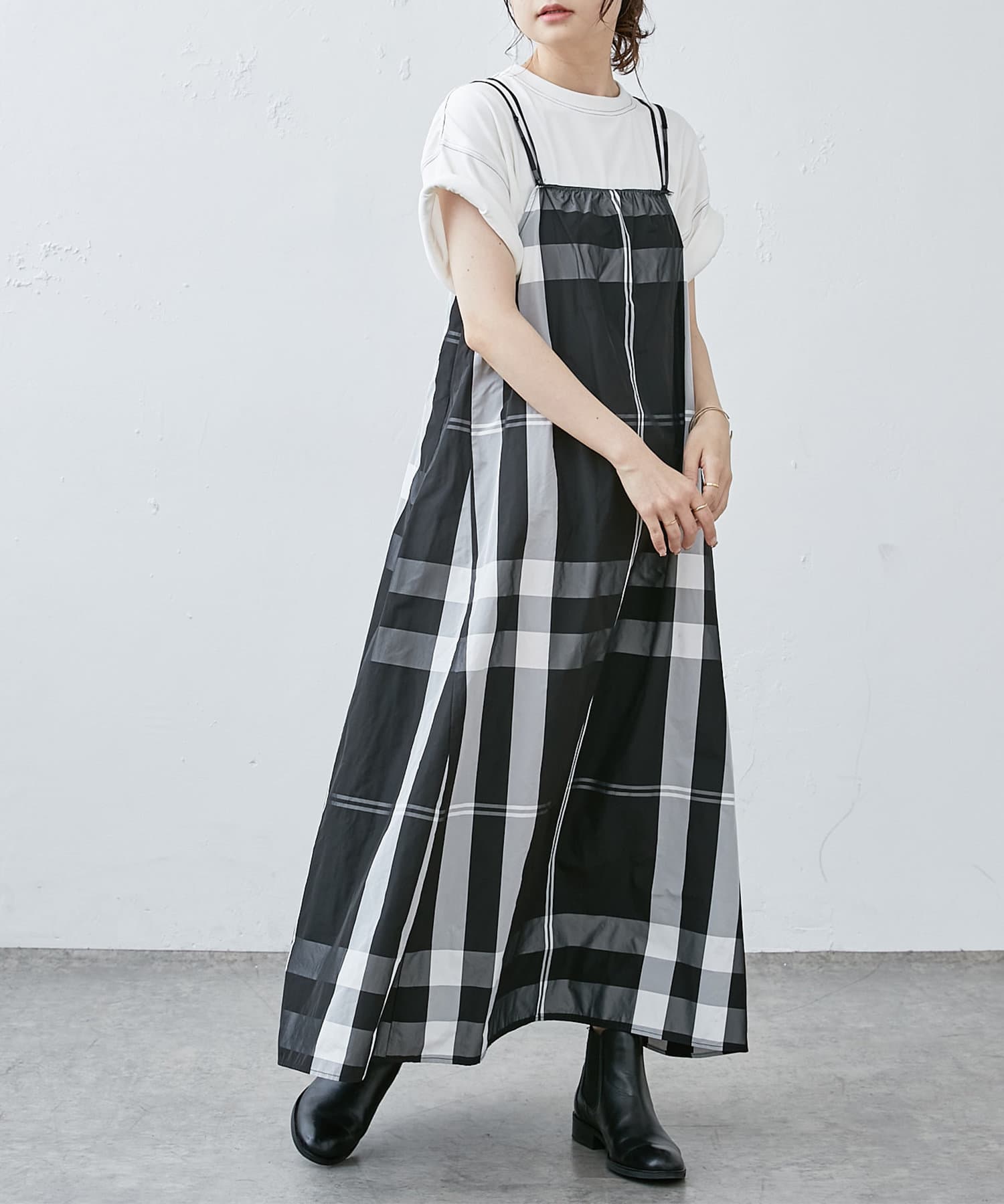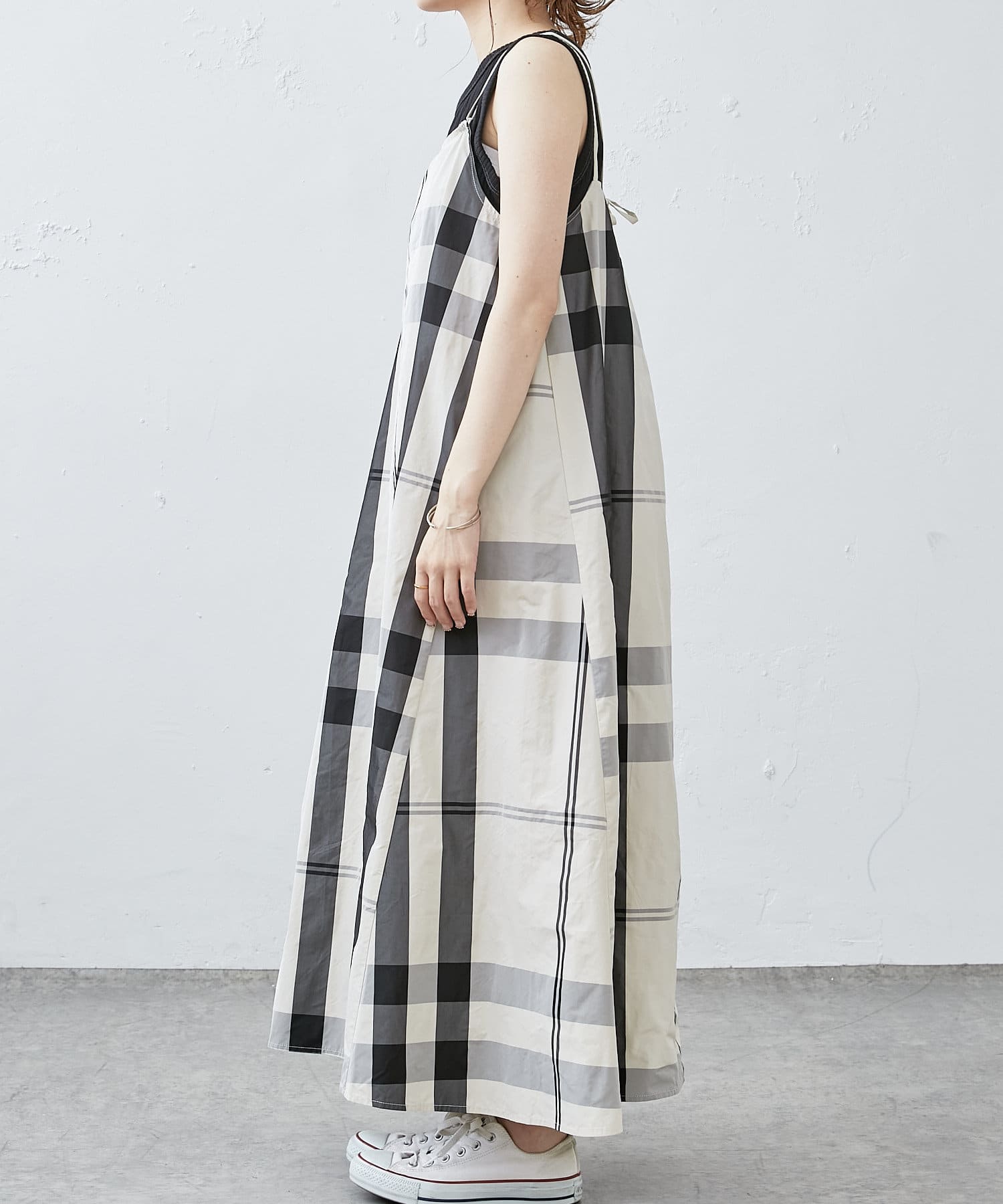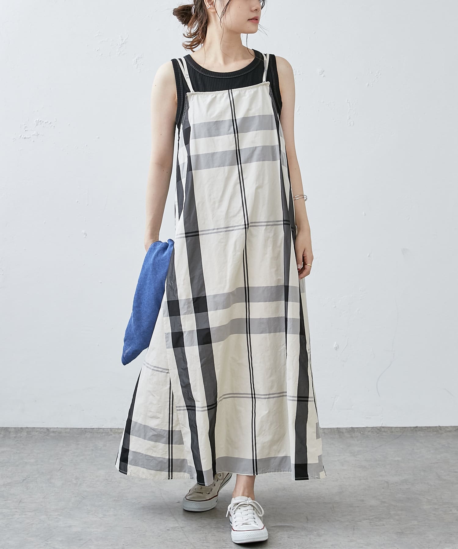 大柄のチェックが人目を惹く存在感抜群のキャミワンピース。