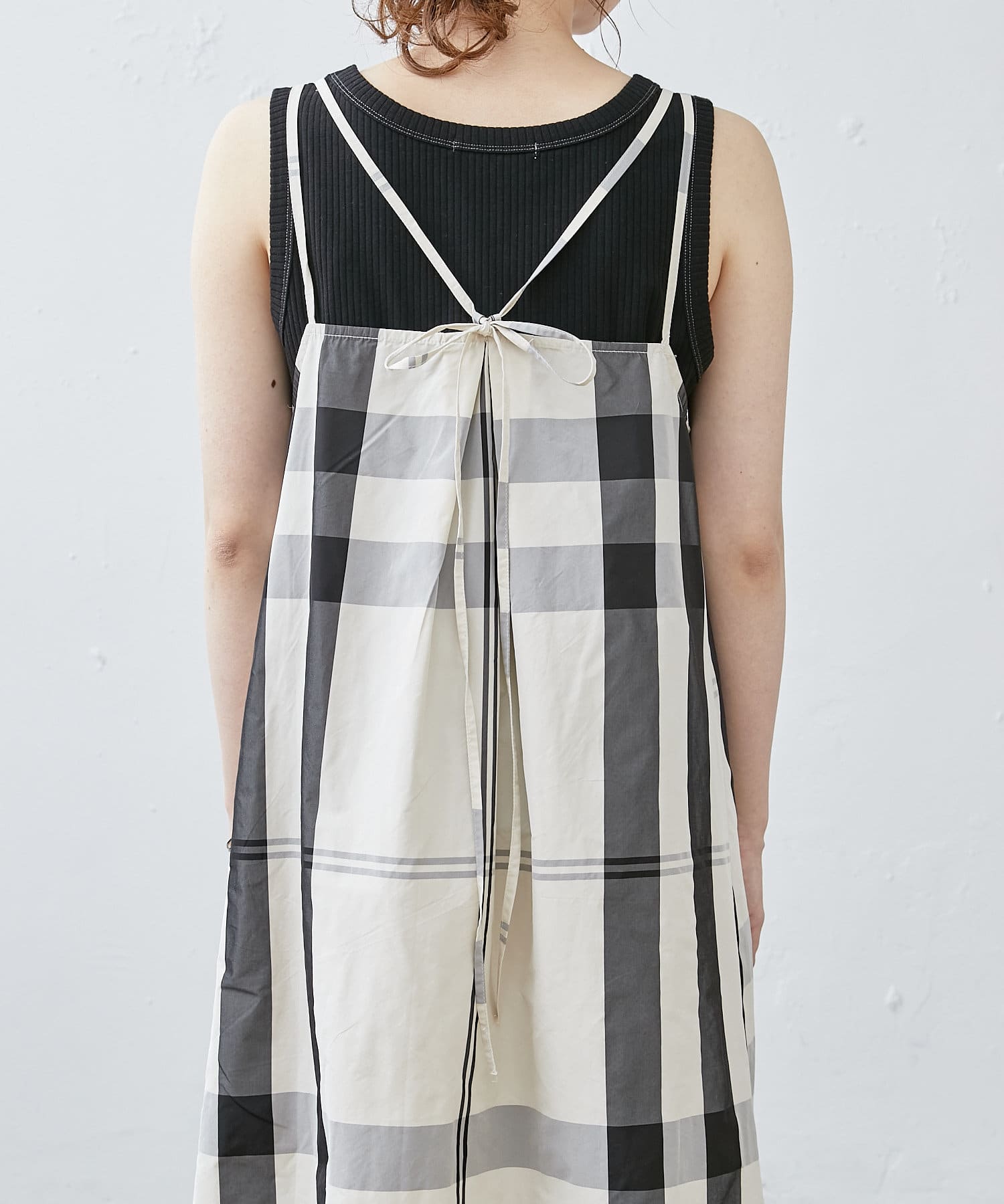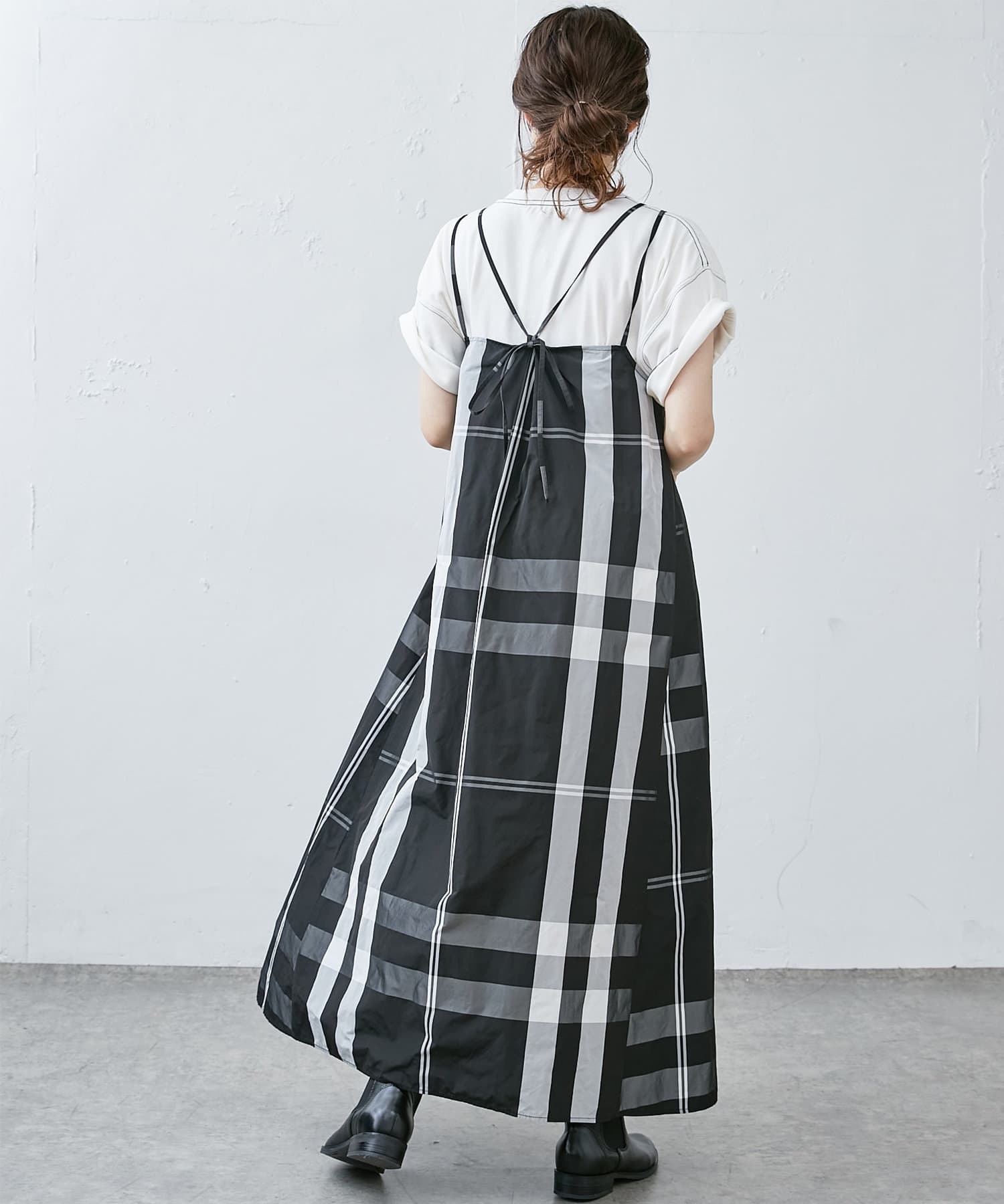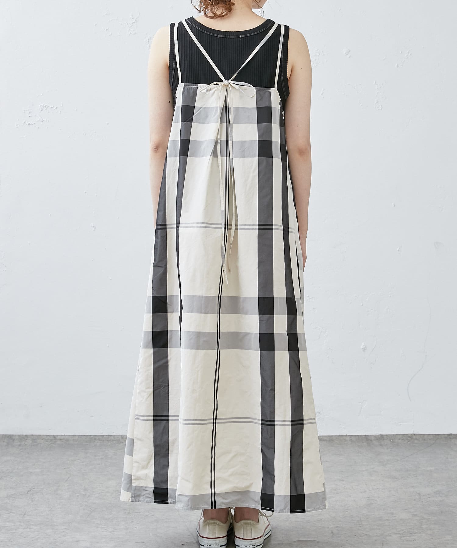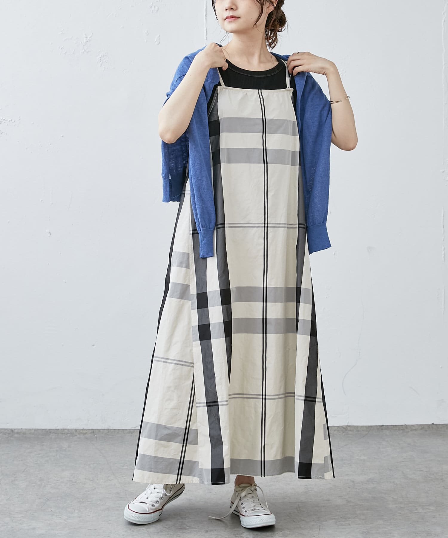 大柄のチェックが人目を惹く存在感抜群のキャミワンピース。
