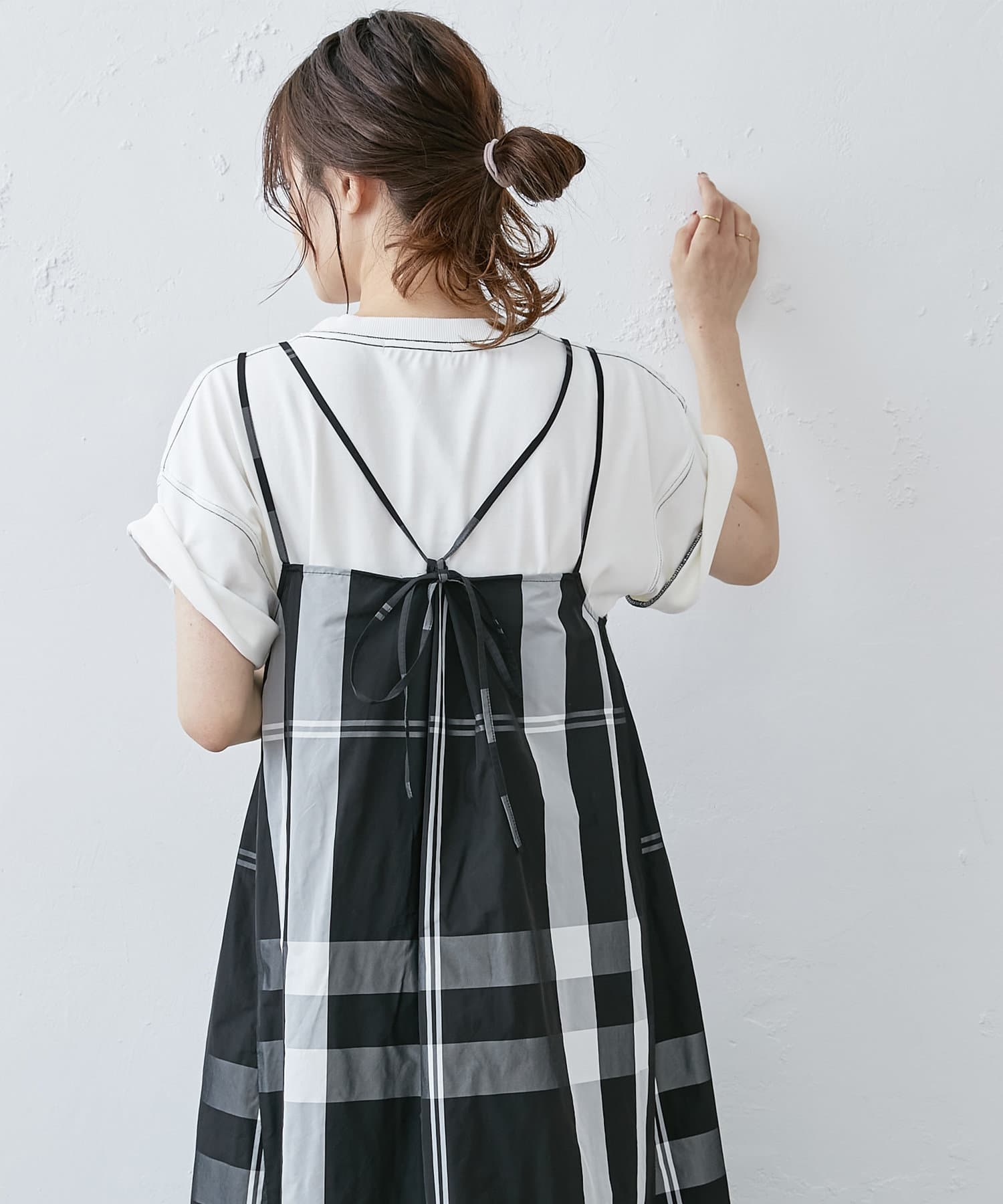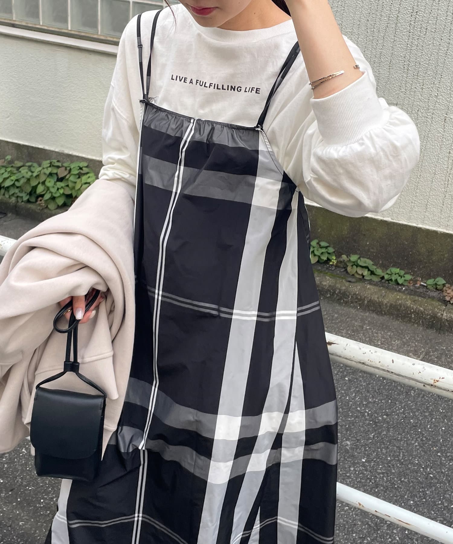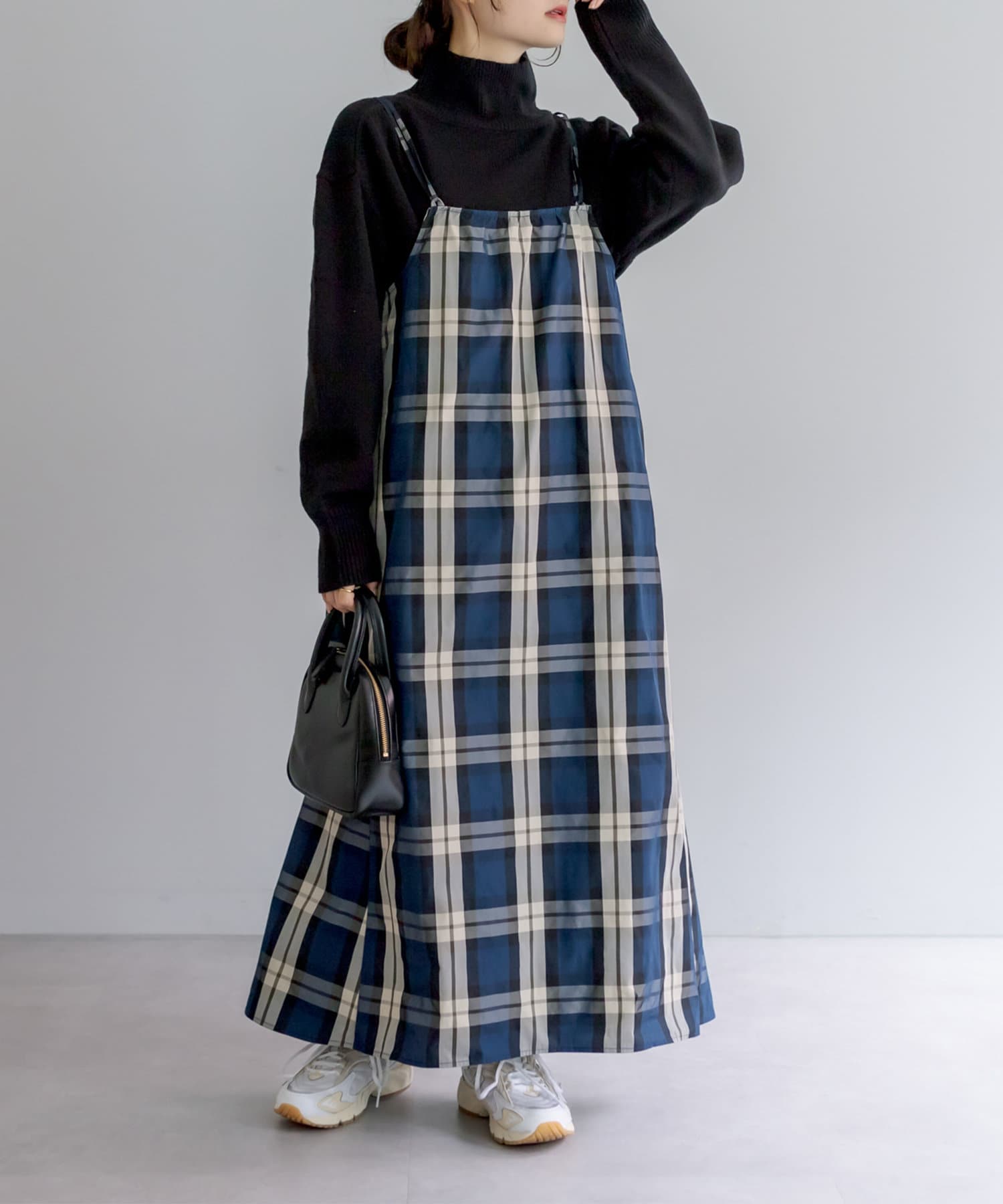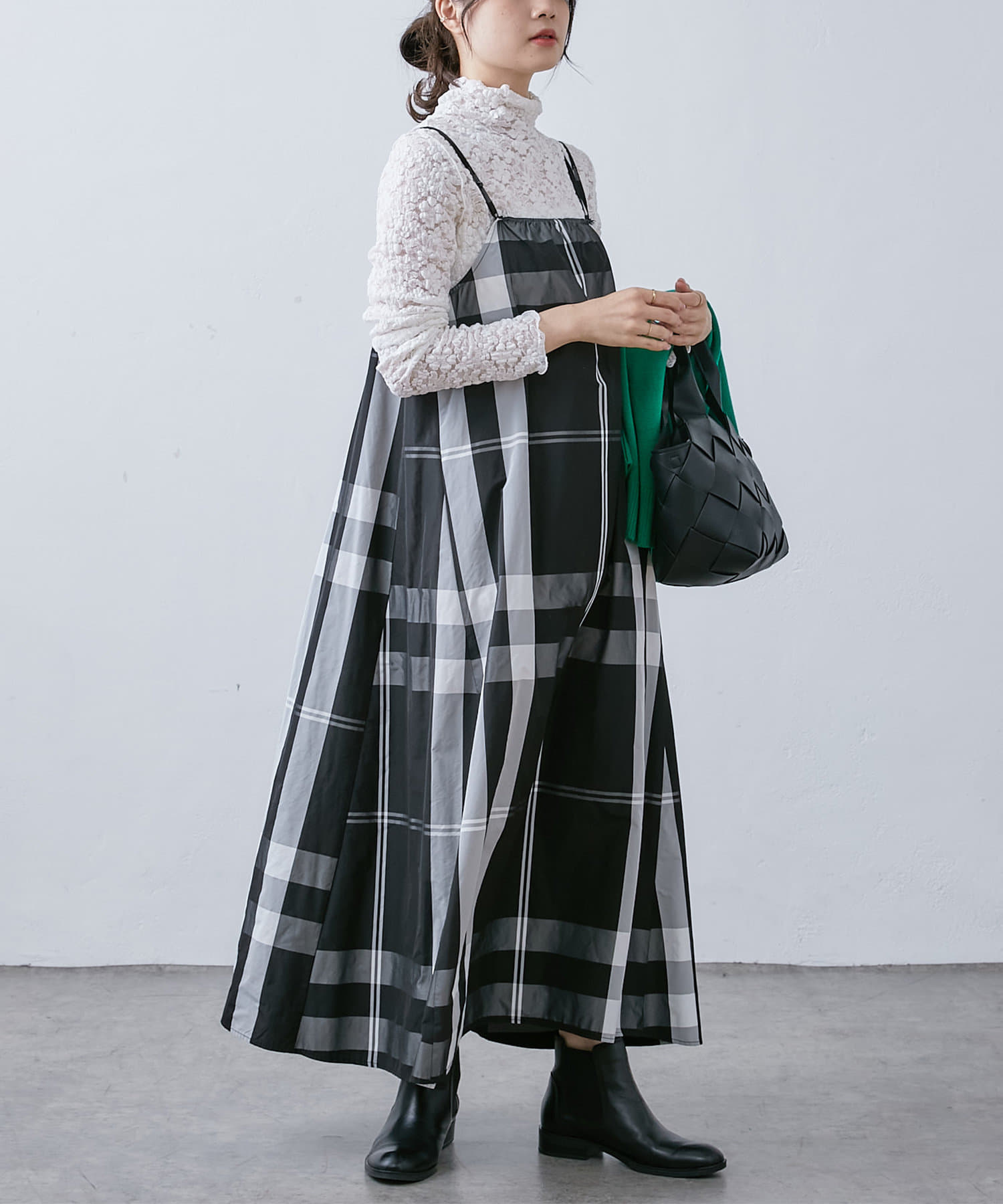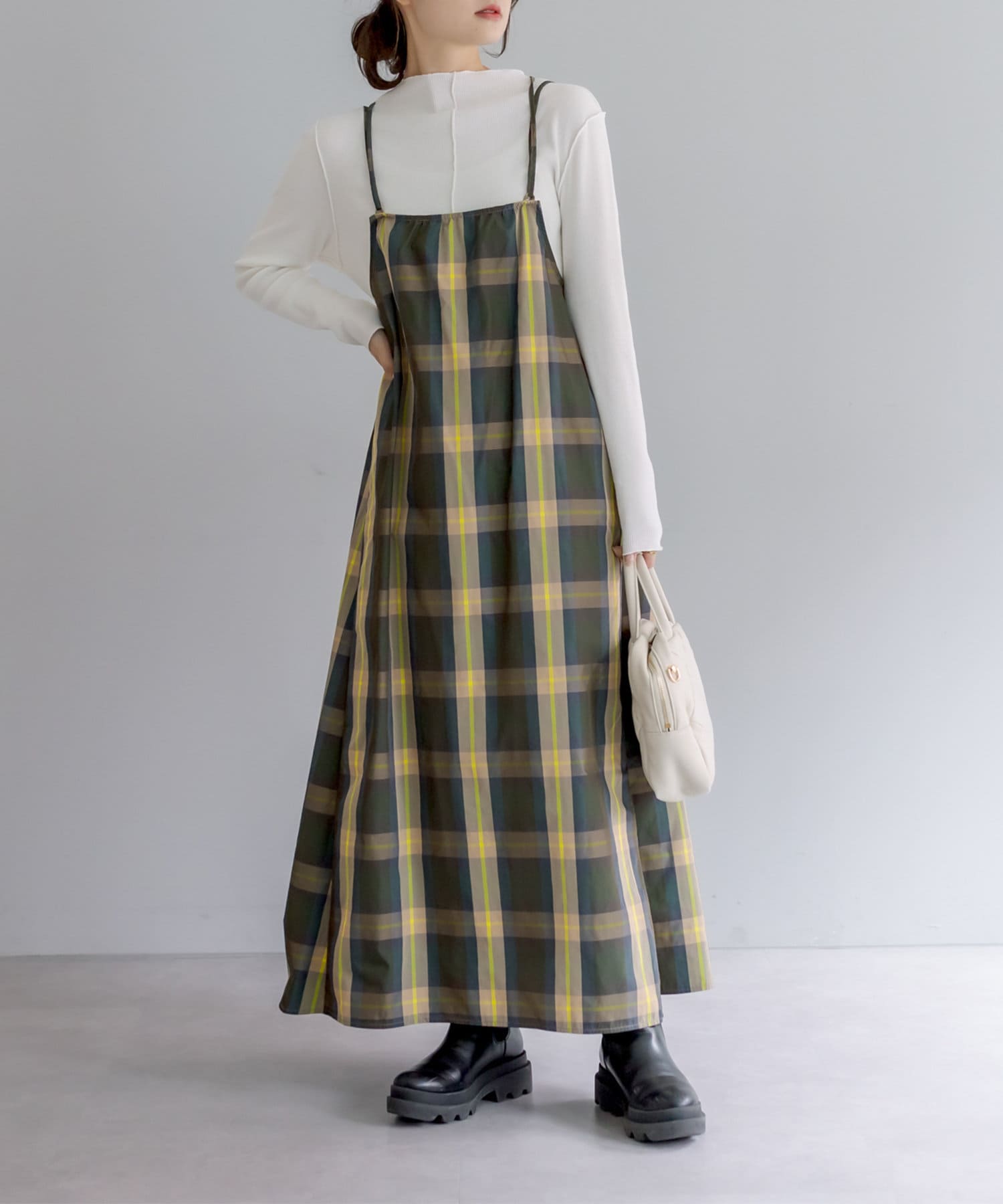 大柄のチェックが人目を惹く存在感抜群のキャミワンピース。