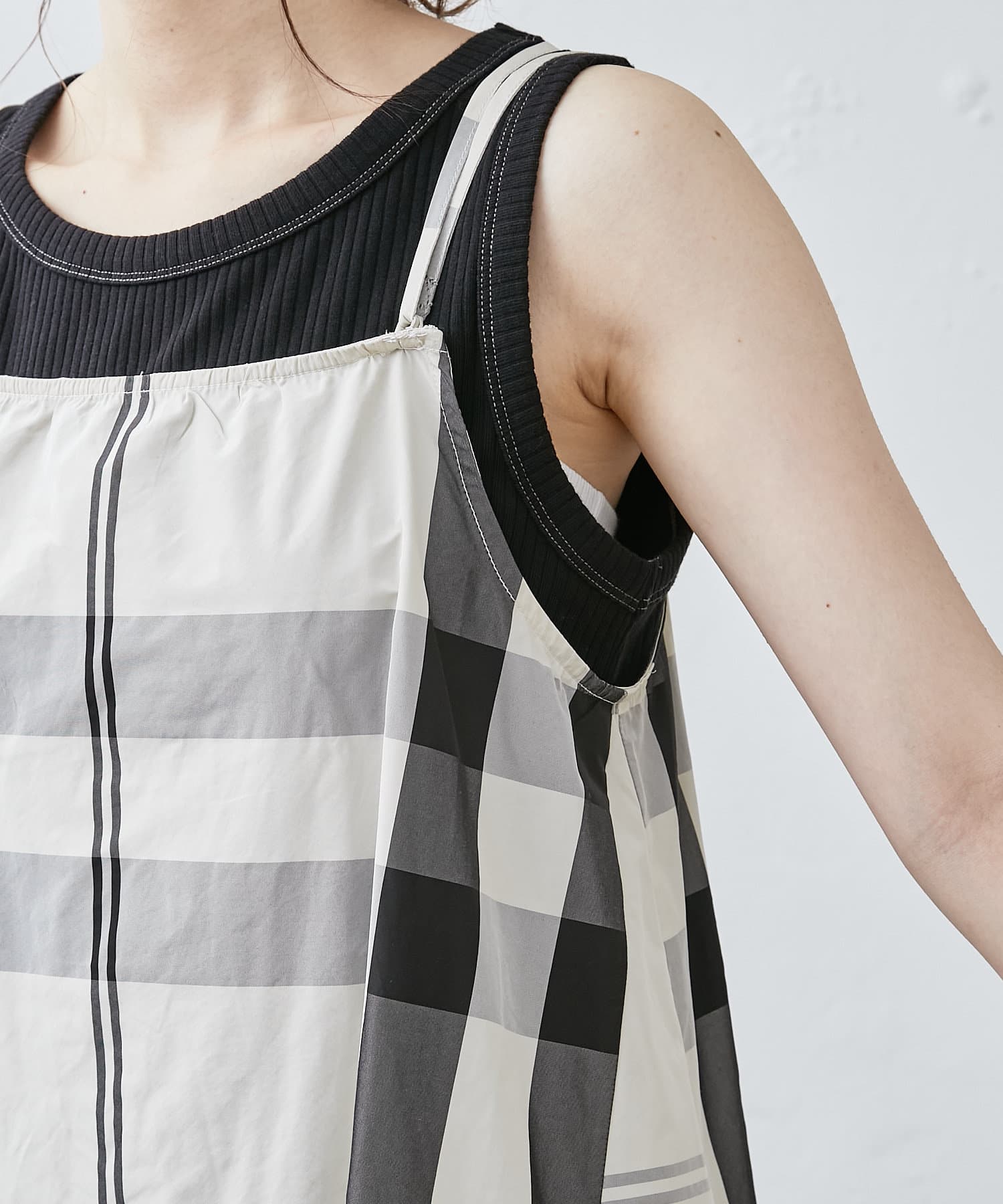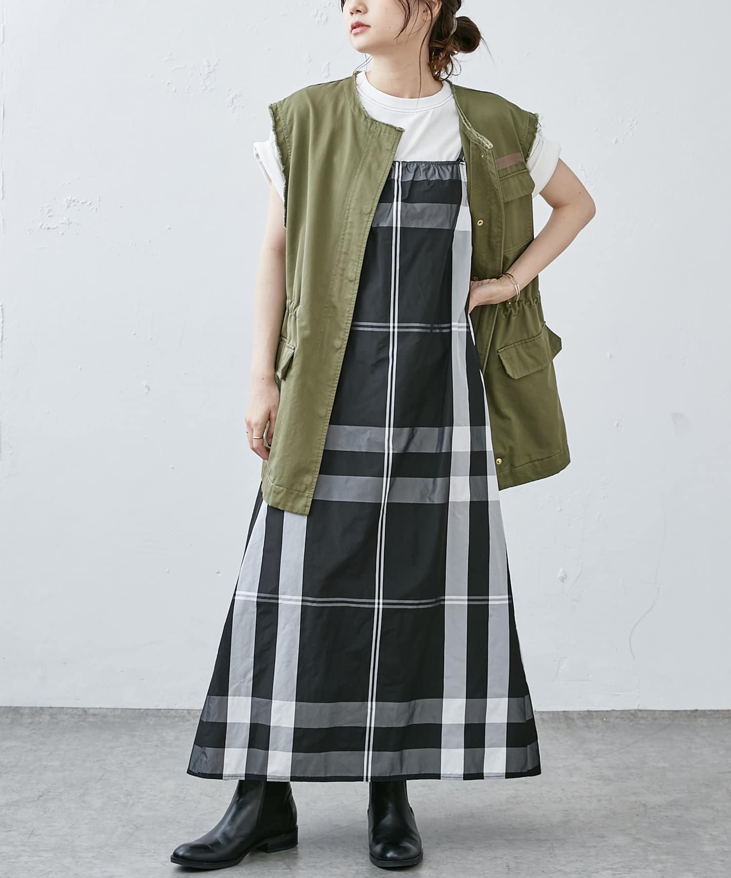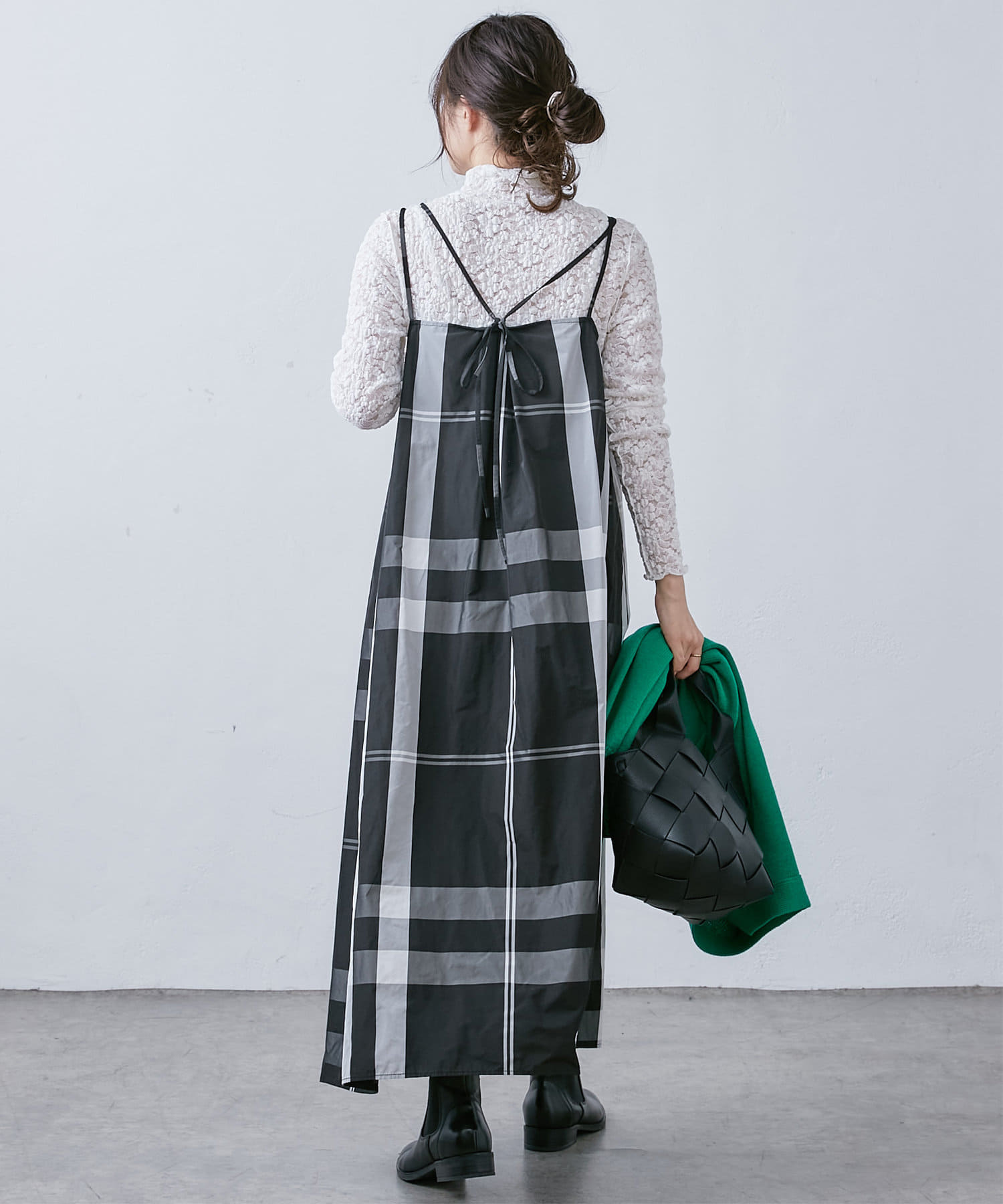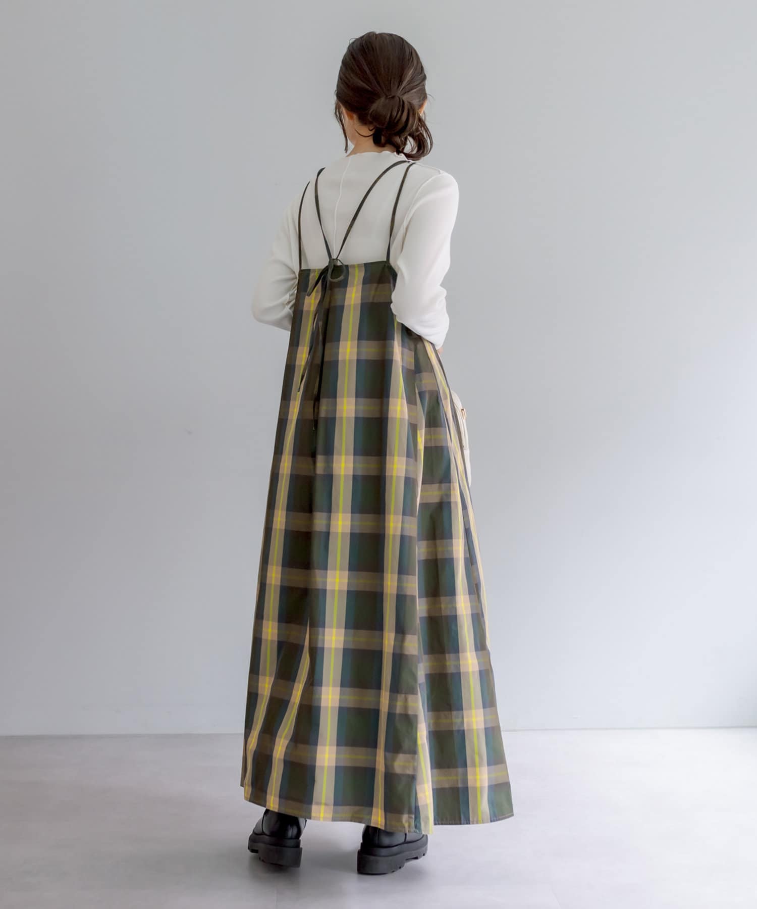 大柄のチェックが人目を惹く存在感抜群のキャミワンピース。