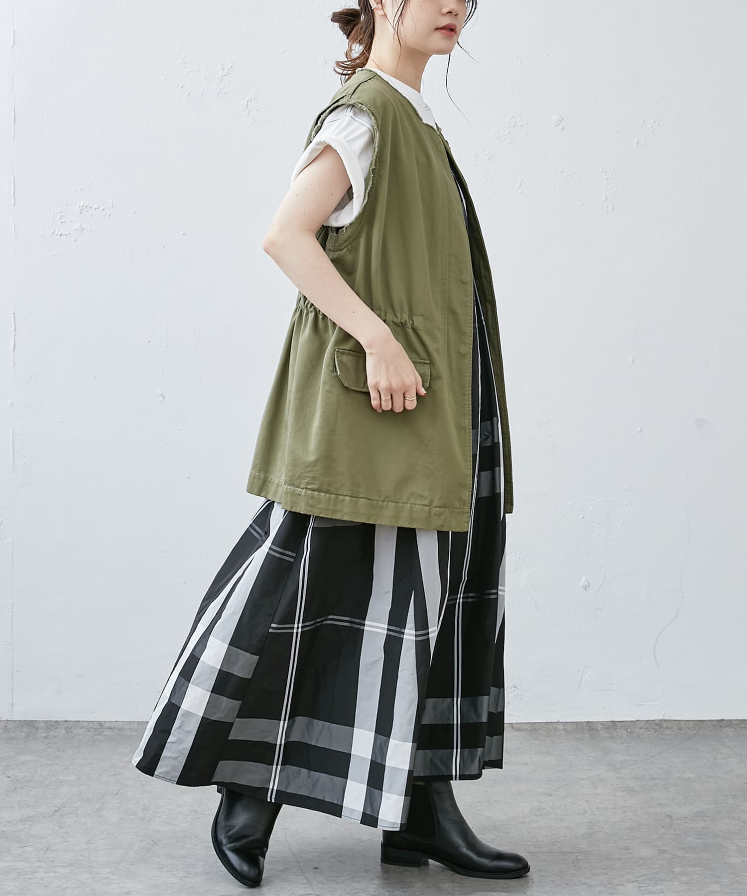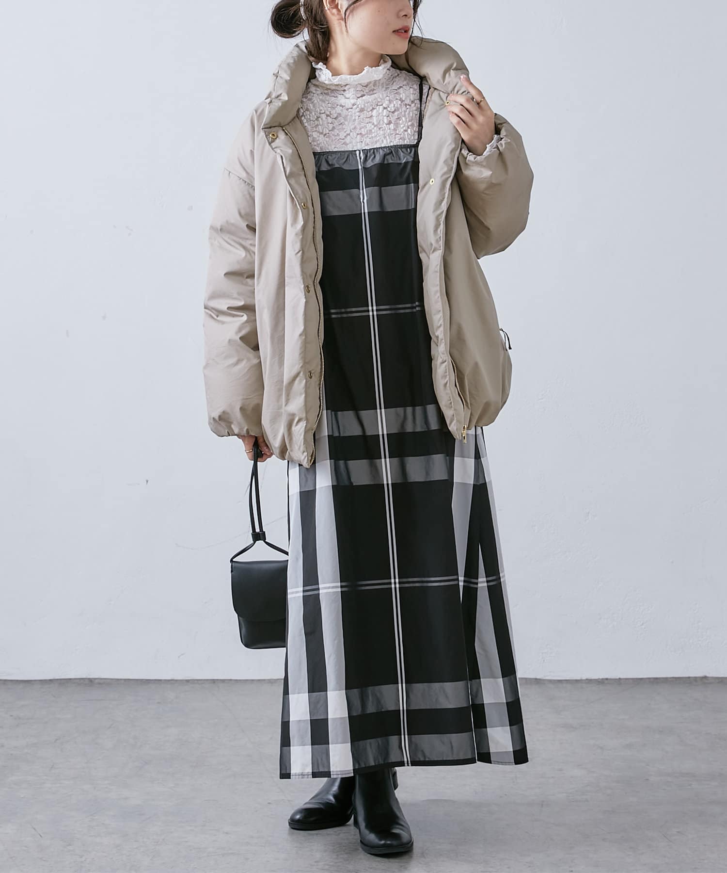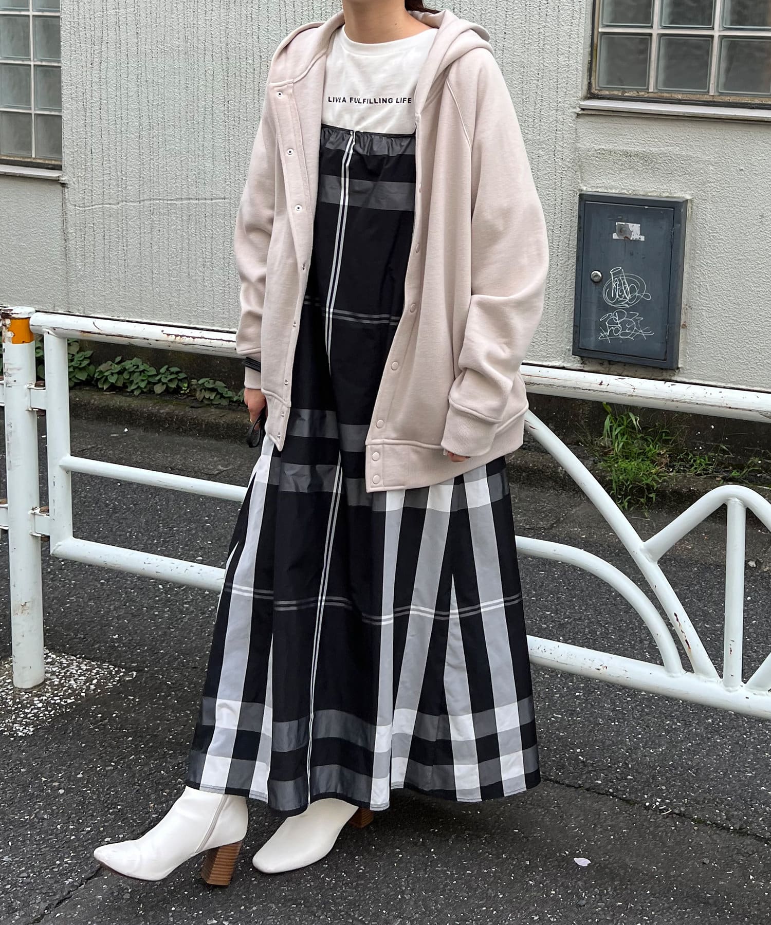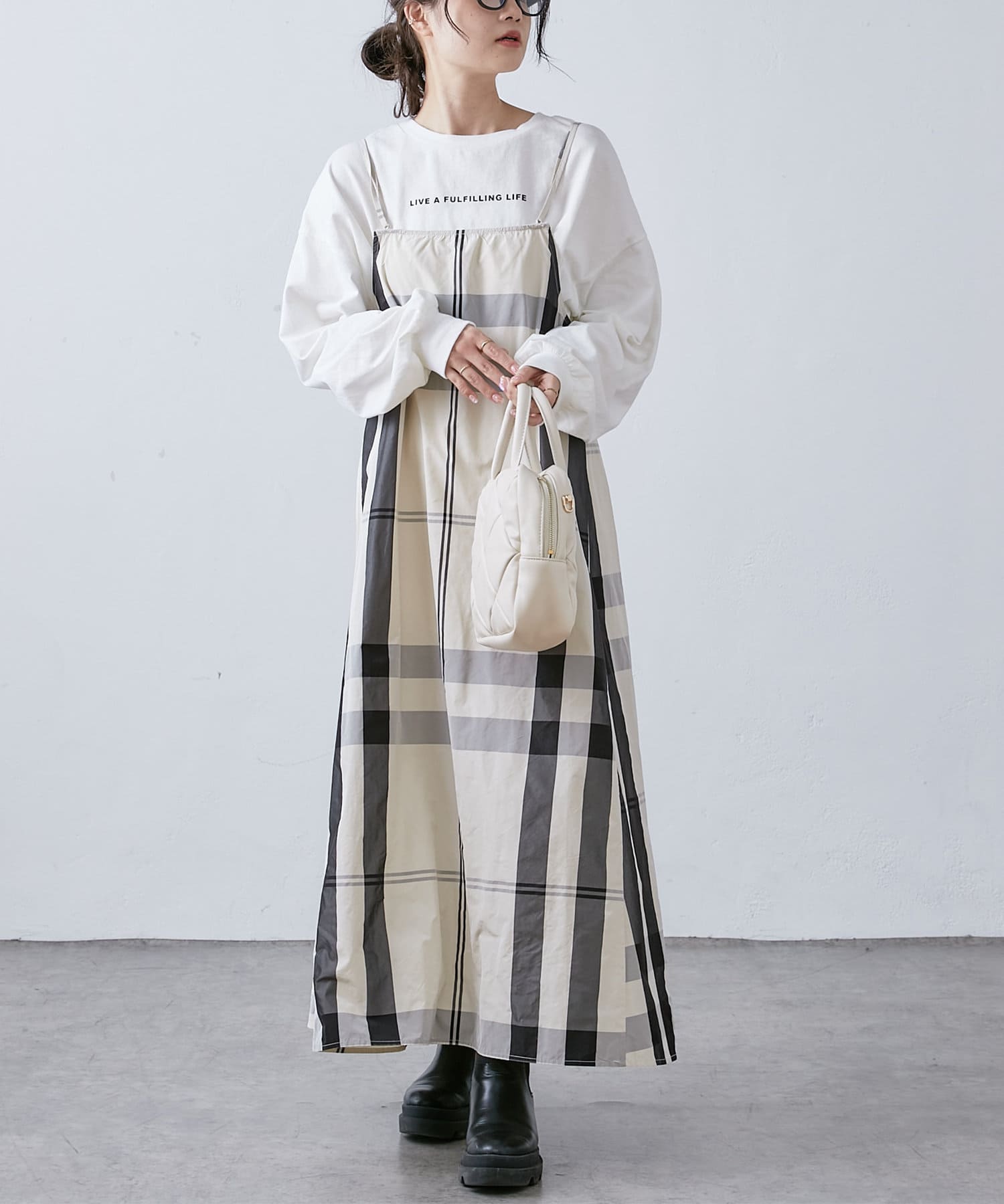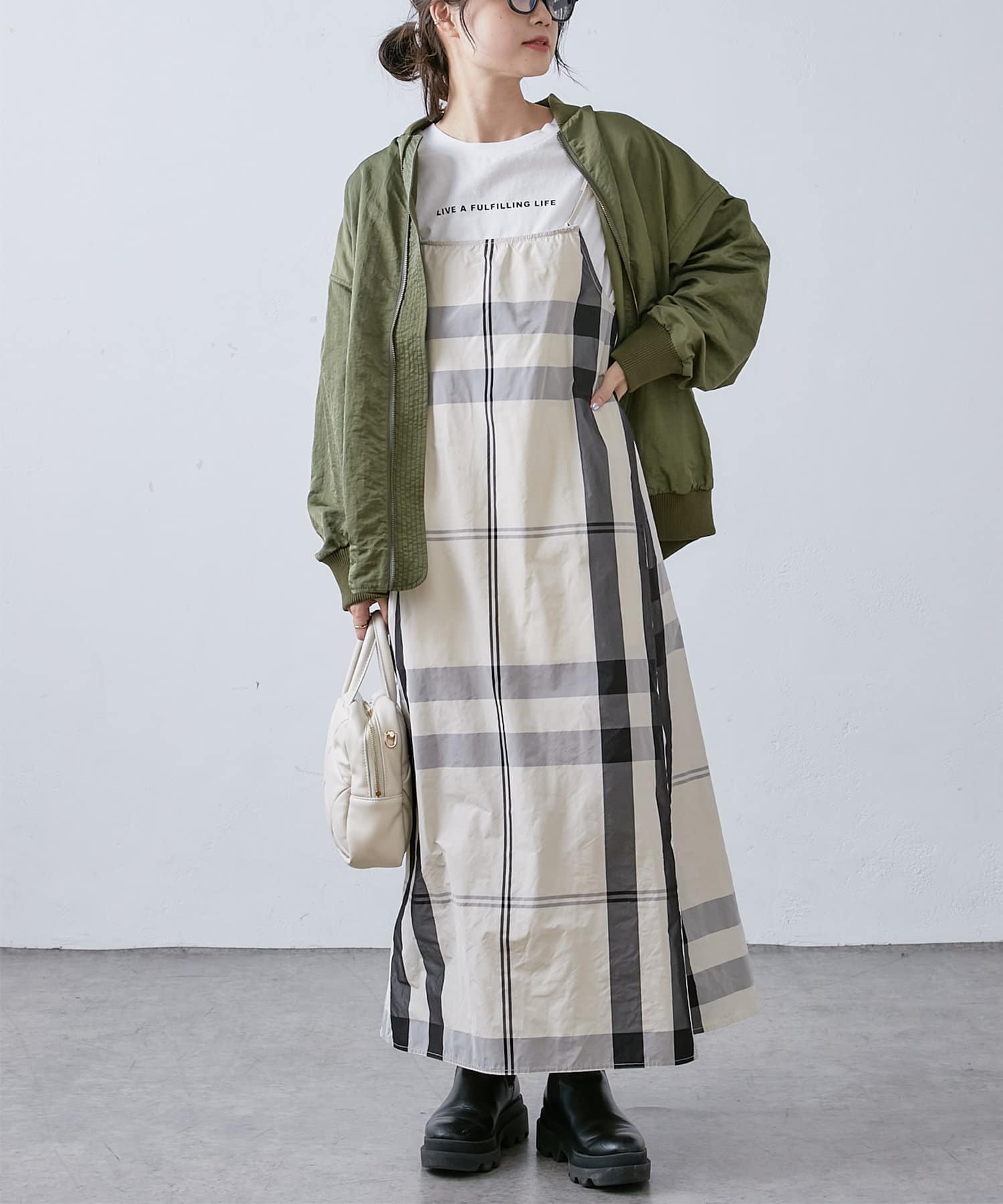 大柄のチェックが人目を惹く存在感抜群のキャミワンピース。