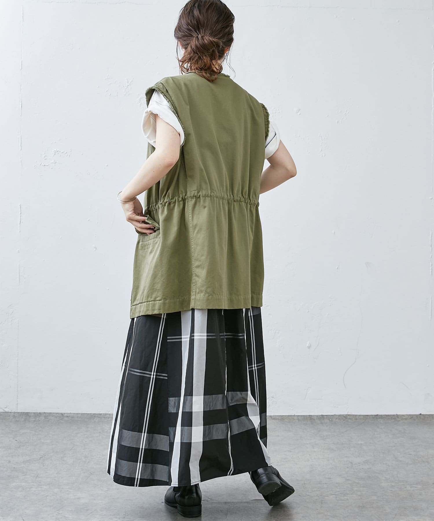 身幅はすっきりとさせ、裾にかけてふんわり広がるシルエットは継続。