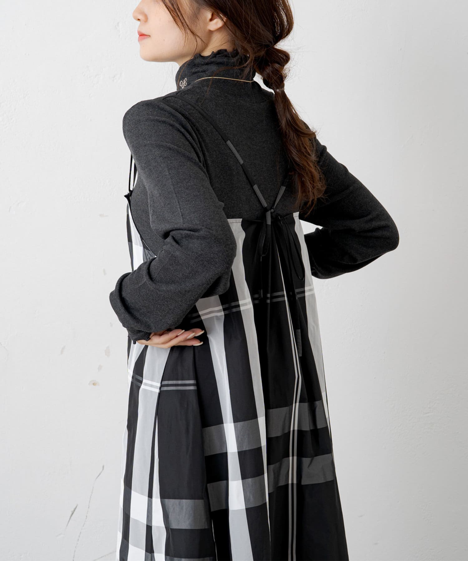 PUAL CE CIN(ピュアルセシン) 【2022AW/Du noir】ビッグチェックキャミワンピース