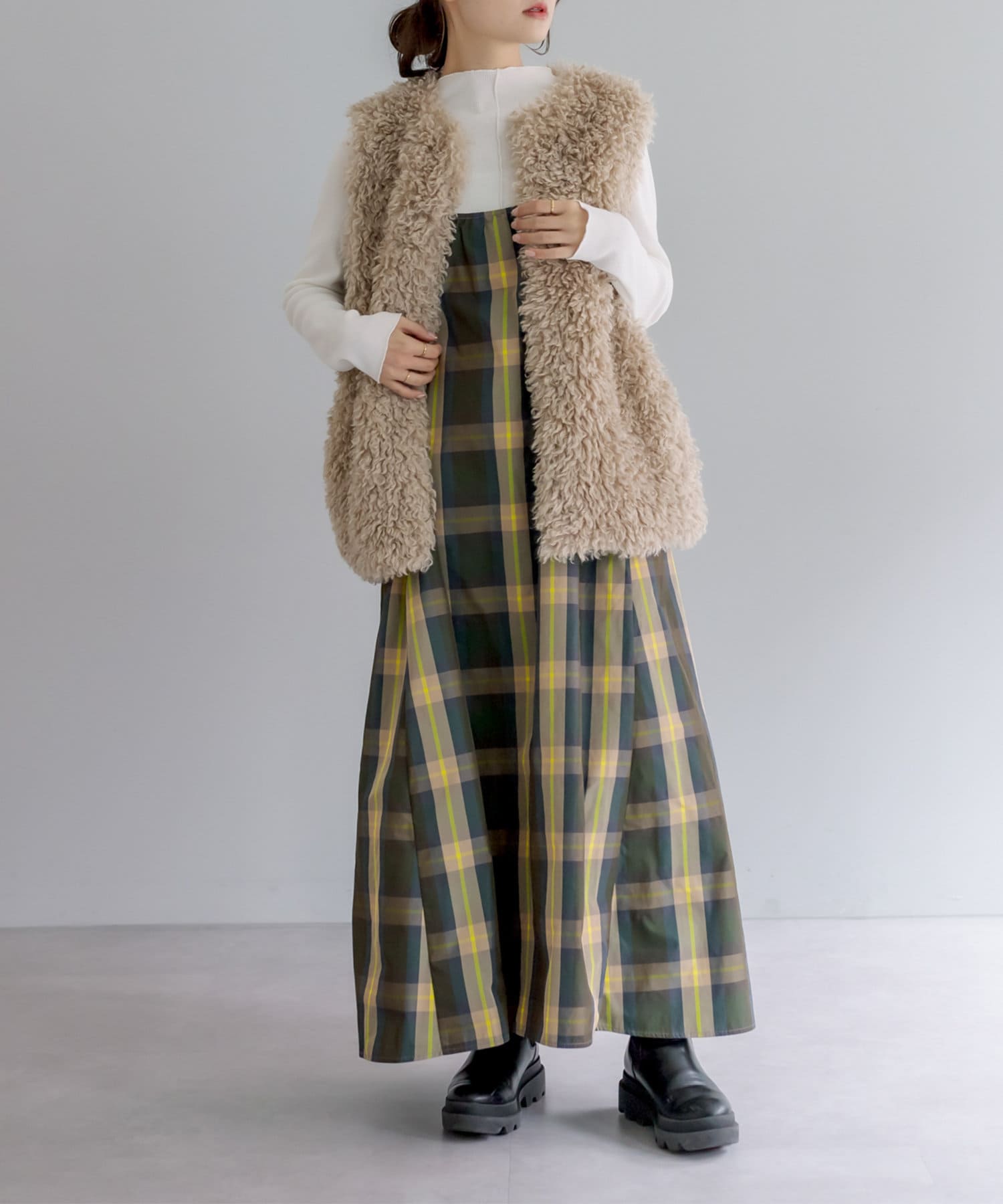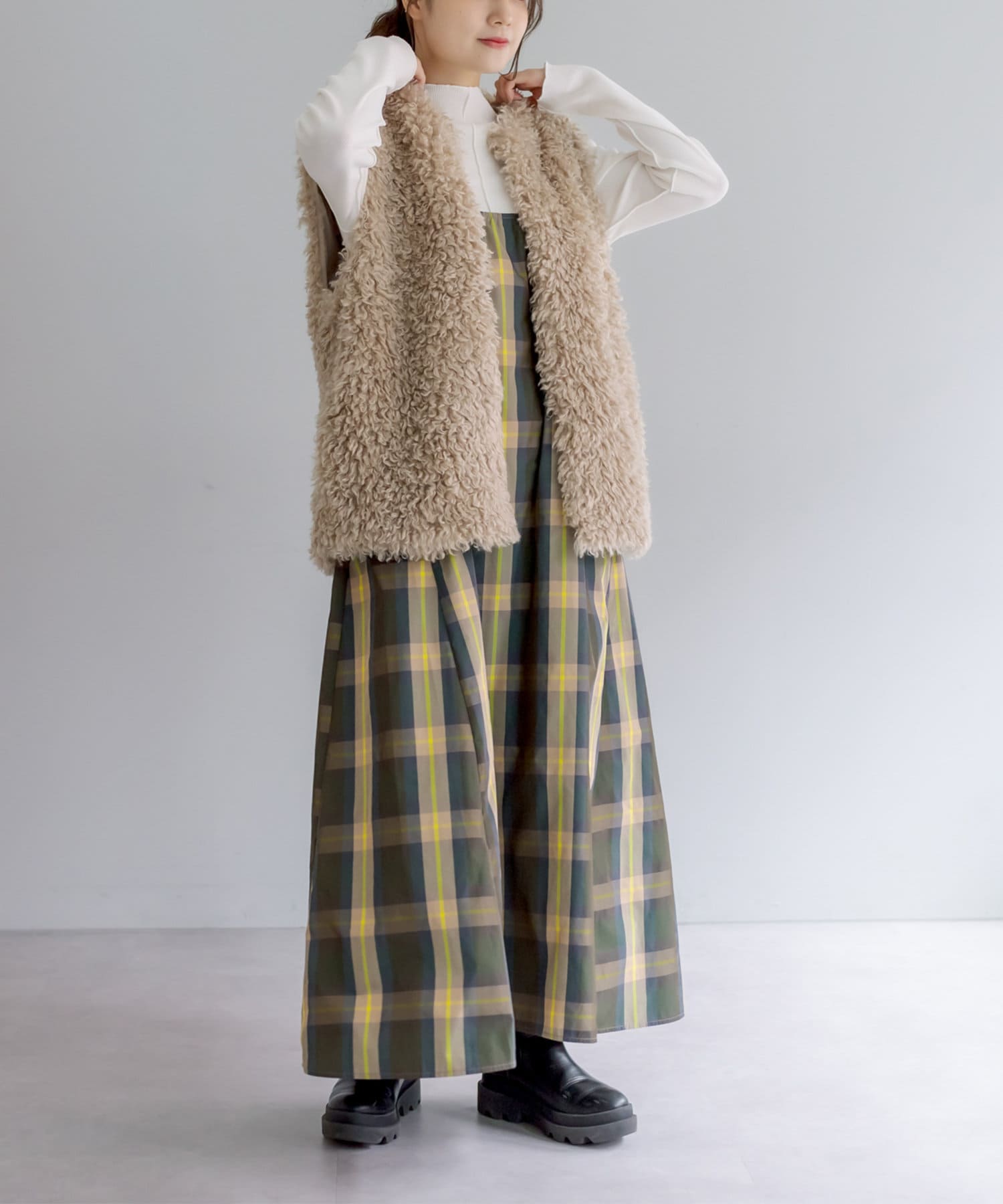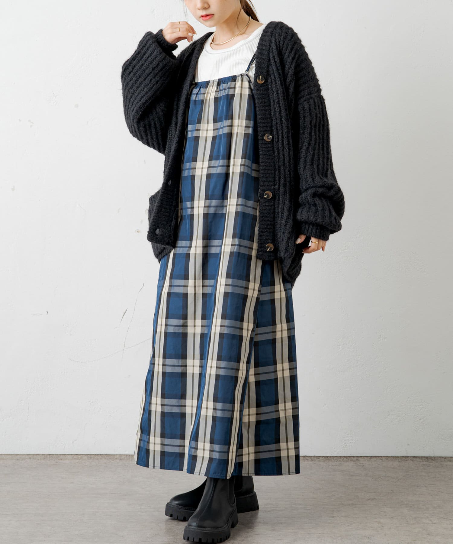 【2022AW/Du noir】ビッグチェックキャミワンピース