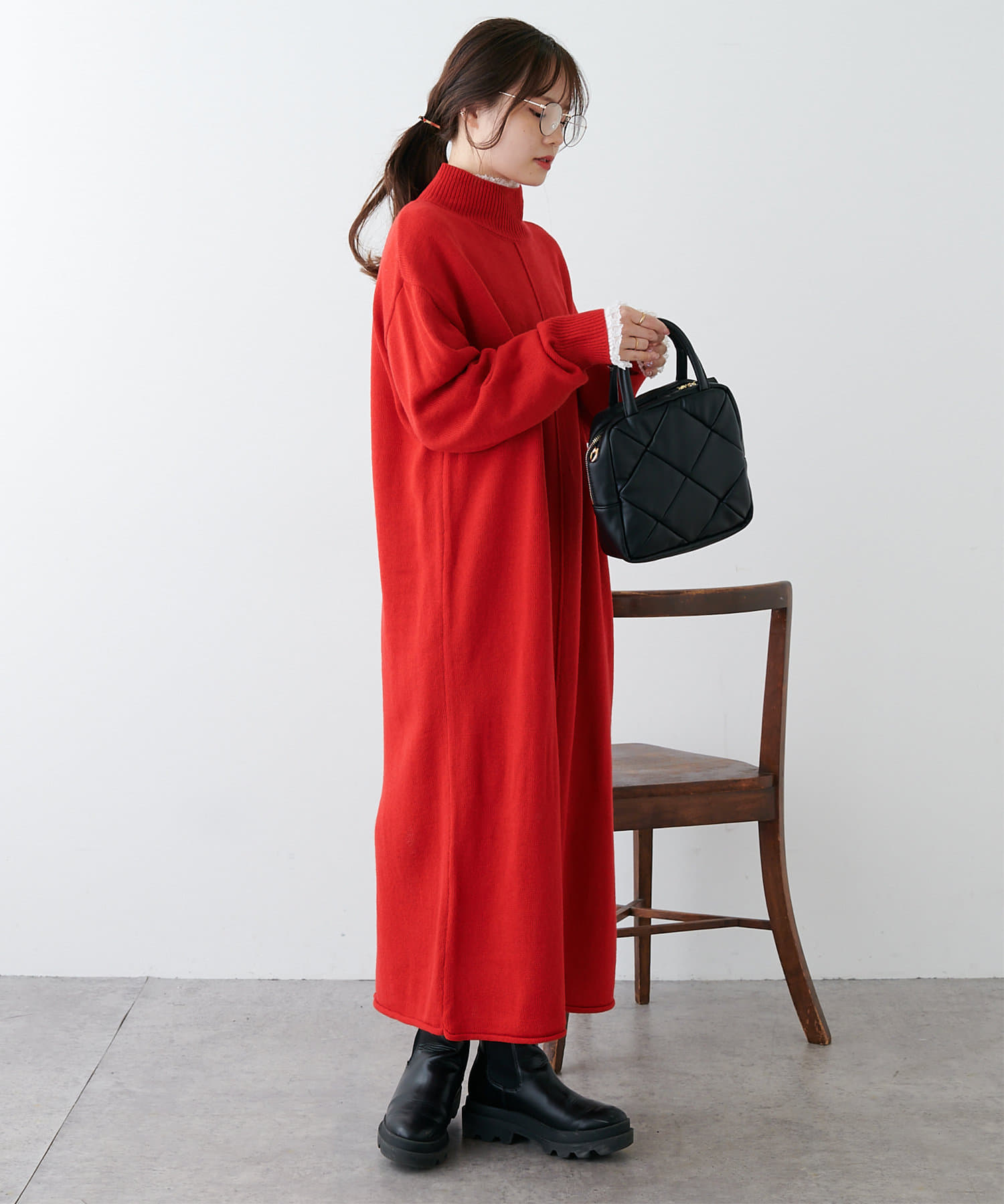 【Du noir】ウォッシャブルニットハイネックワンピース