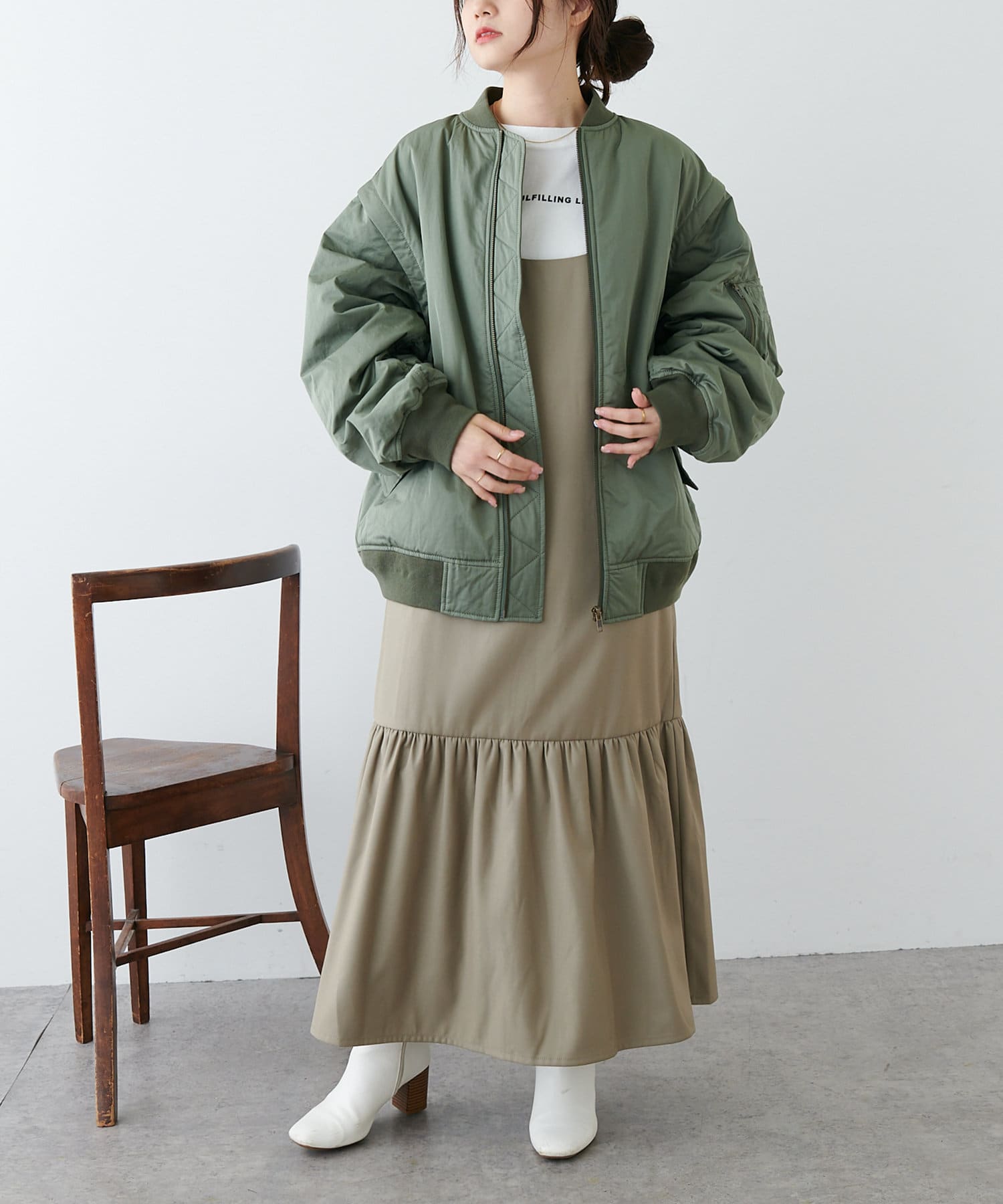 肩紐のアジャスターで着丈を変えることができるので身長問わず、幅広い方に着用いただける1枚です。