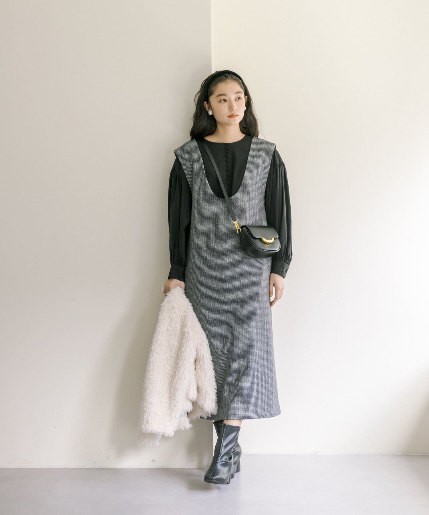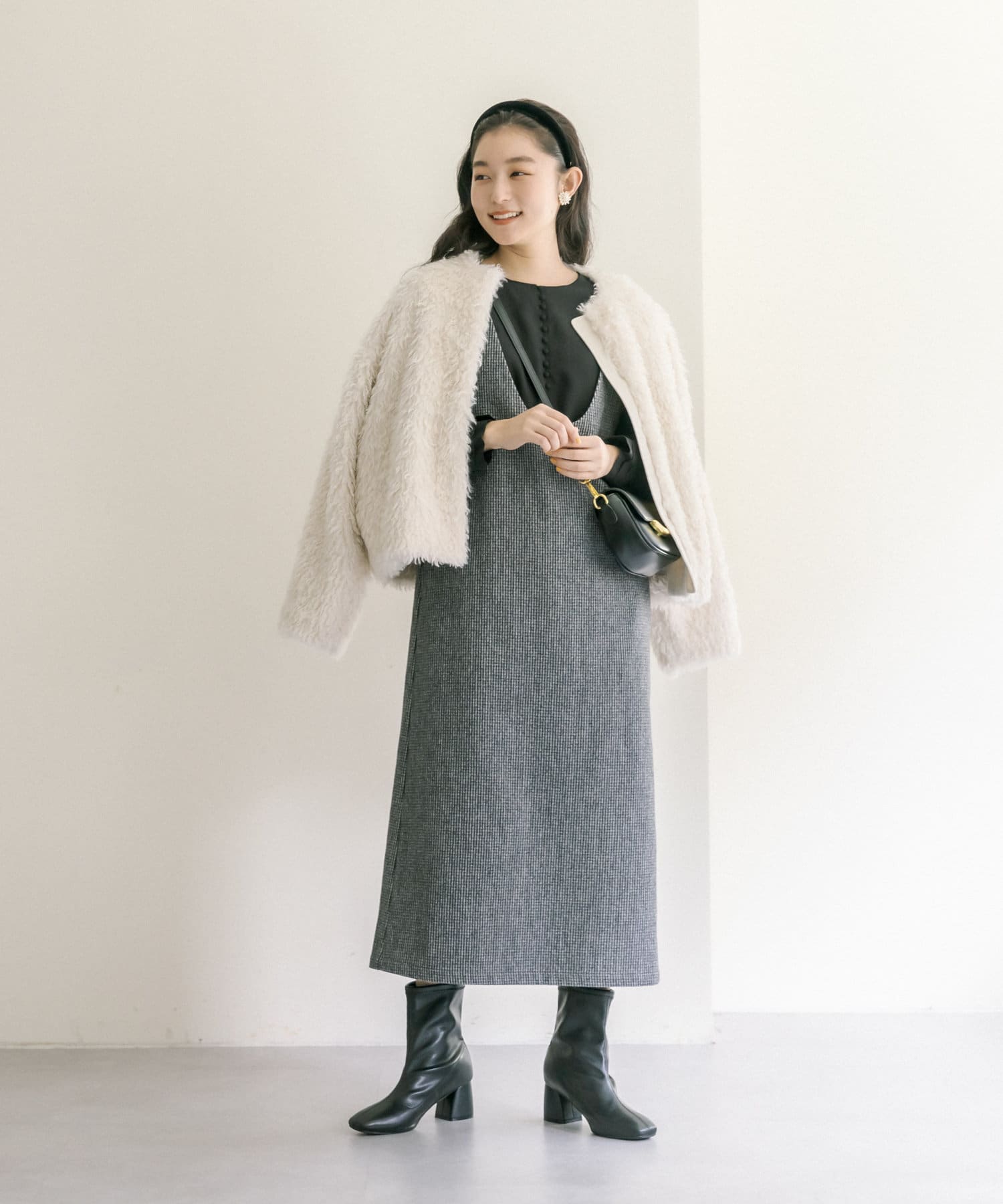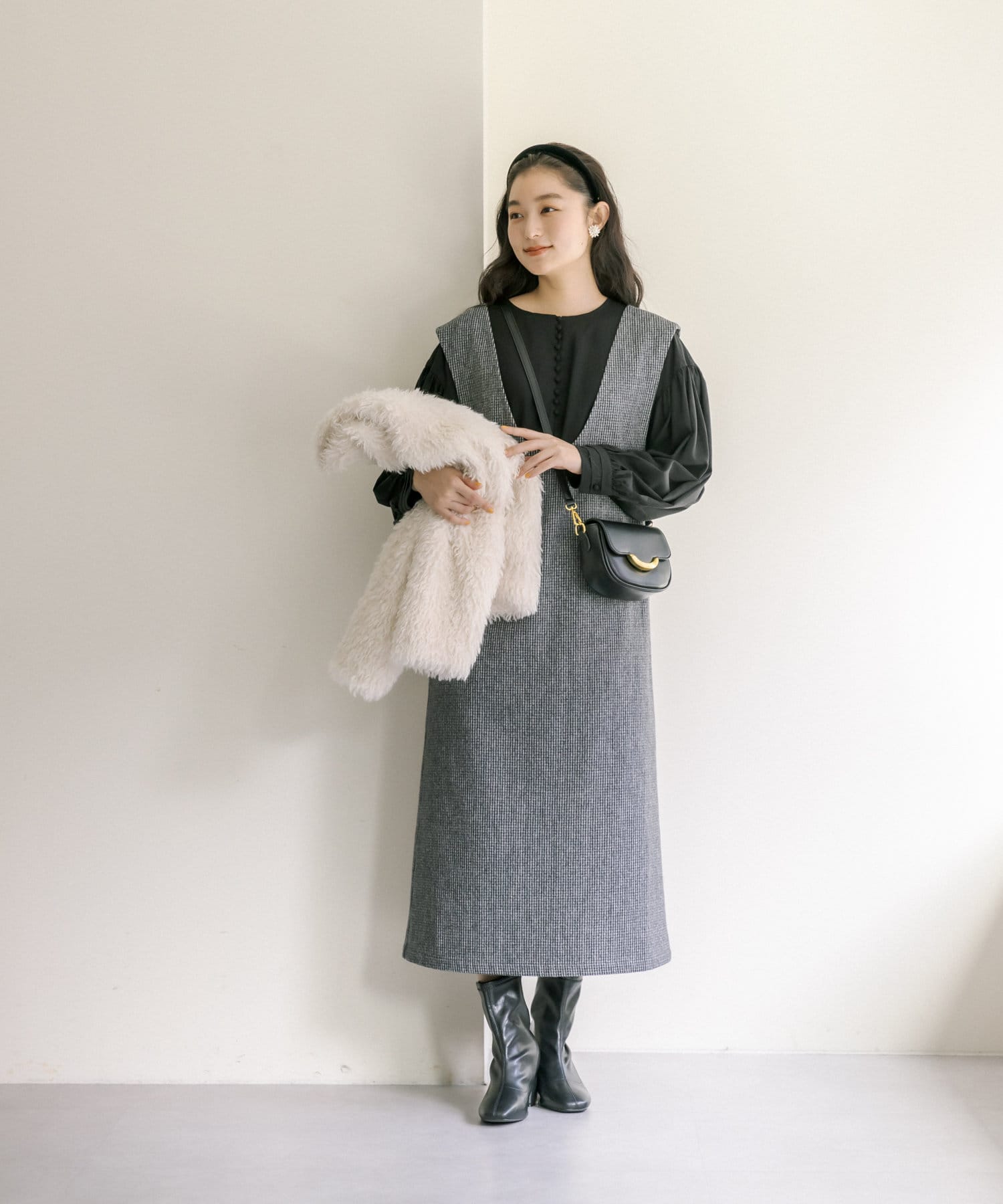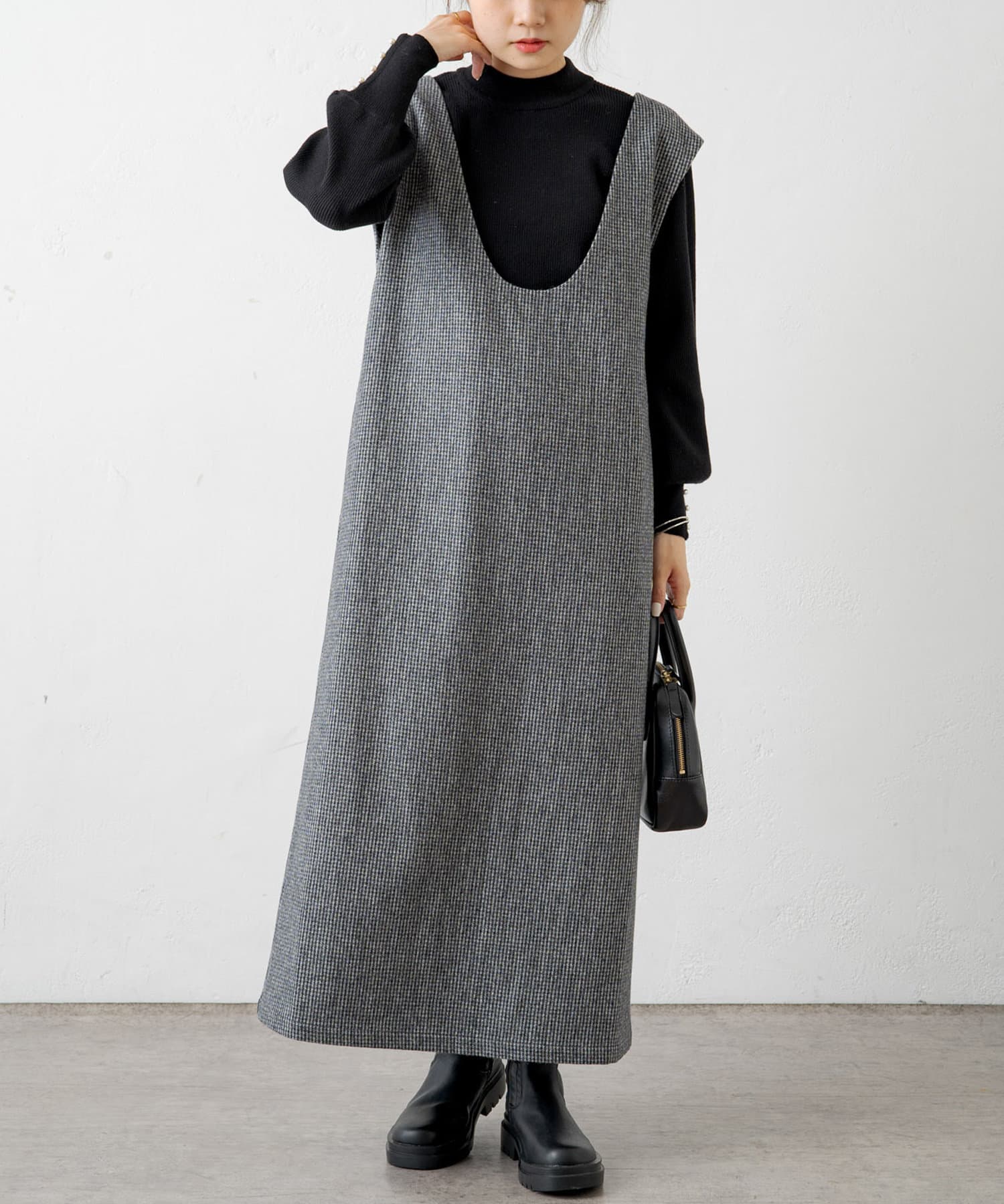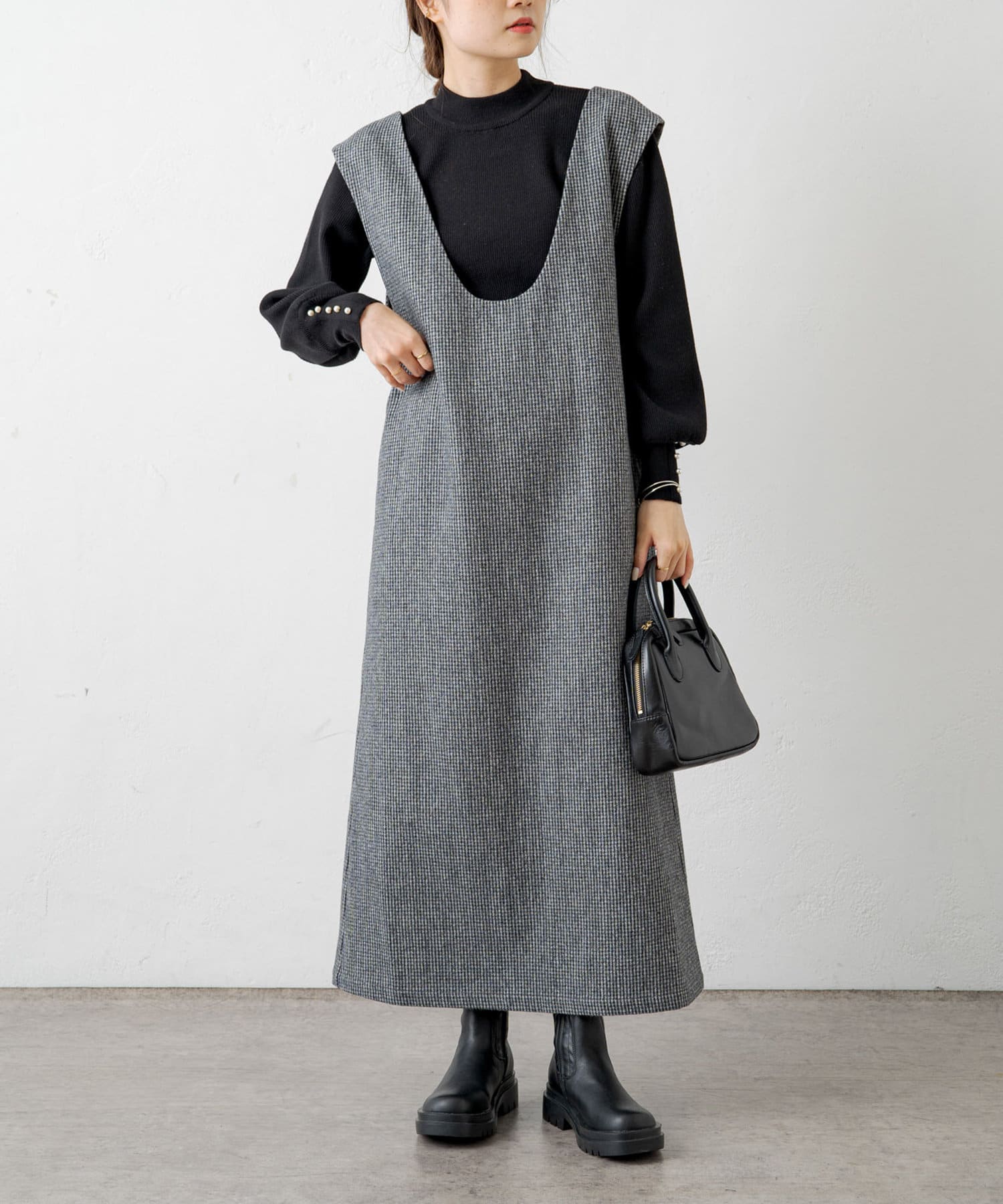 ライトベージュ/チャコールグレー/千鳥柄チェックの3色展開。