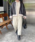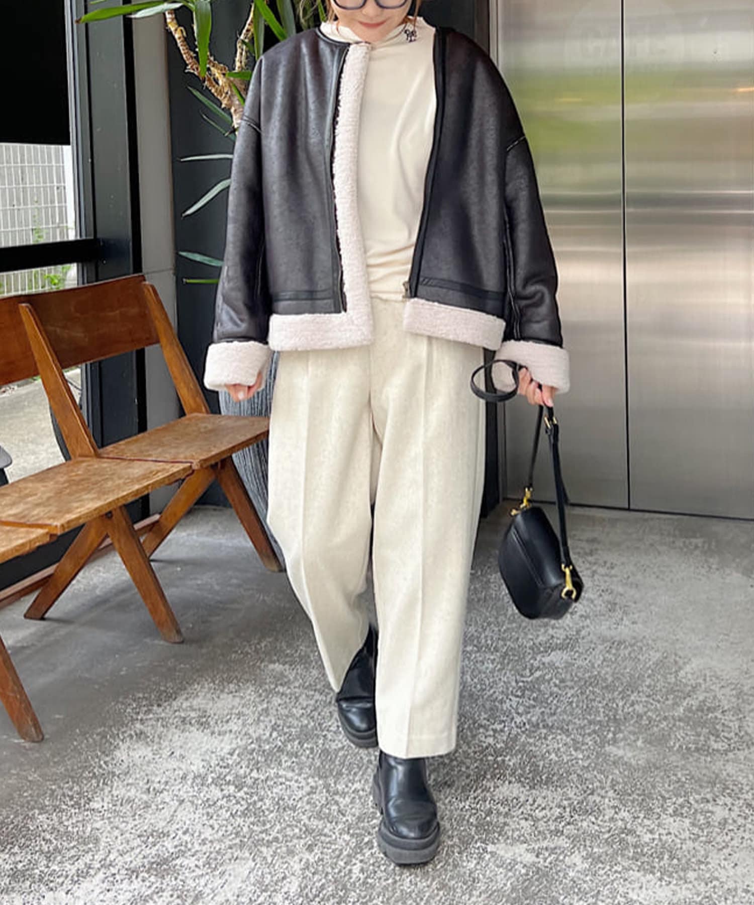 ニットベストやファーベストとも相性が良く、ワードローブにあると便利なアイテムです。
