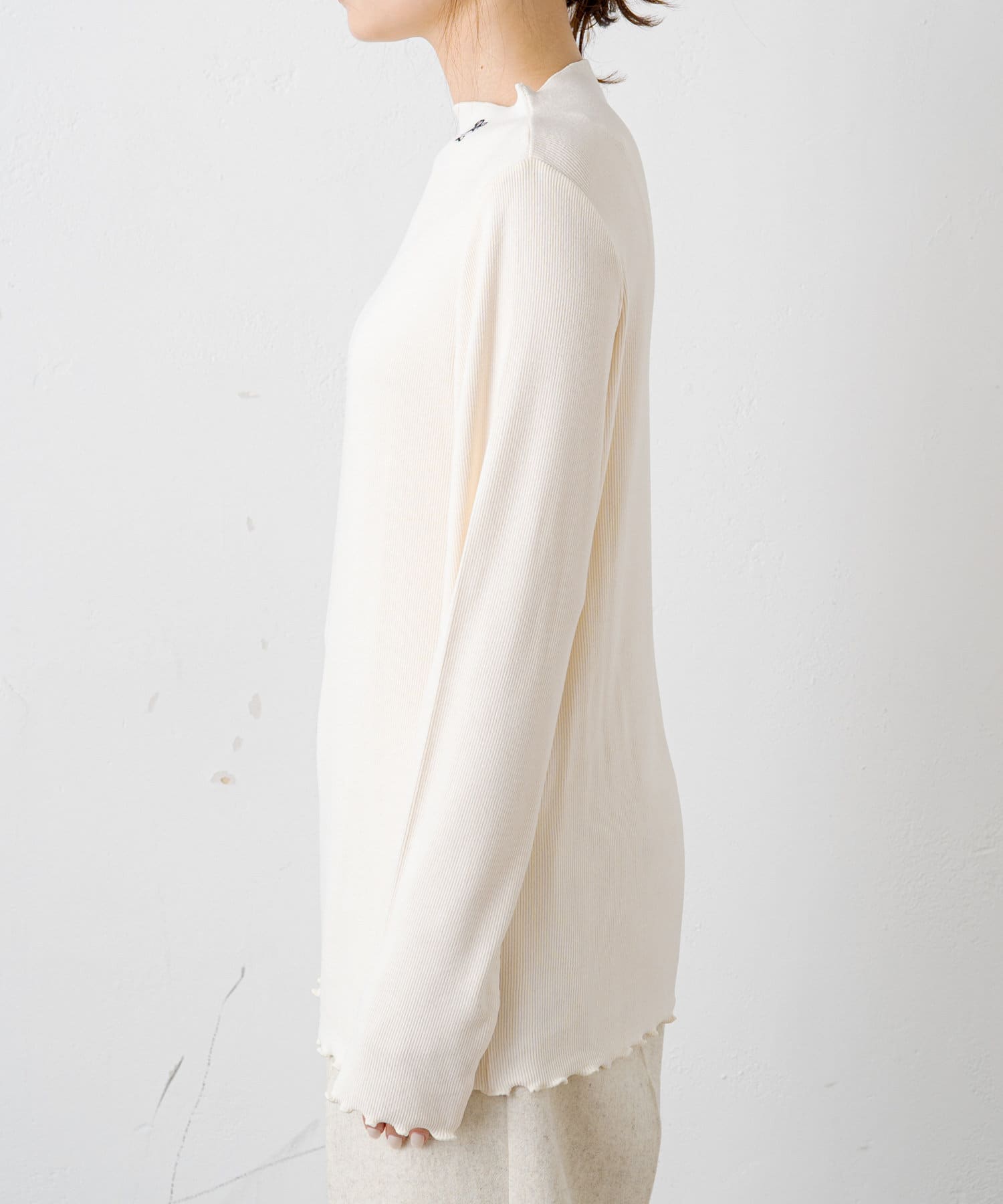 首元のロゴ刺繡がポイントのプチハイネックプルオーバー。