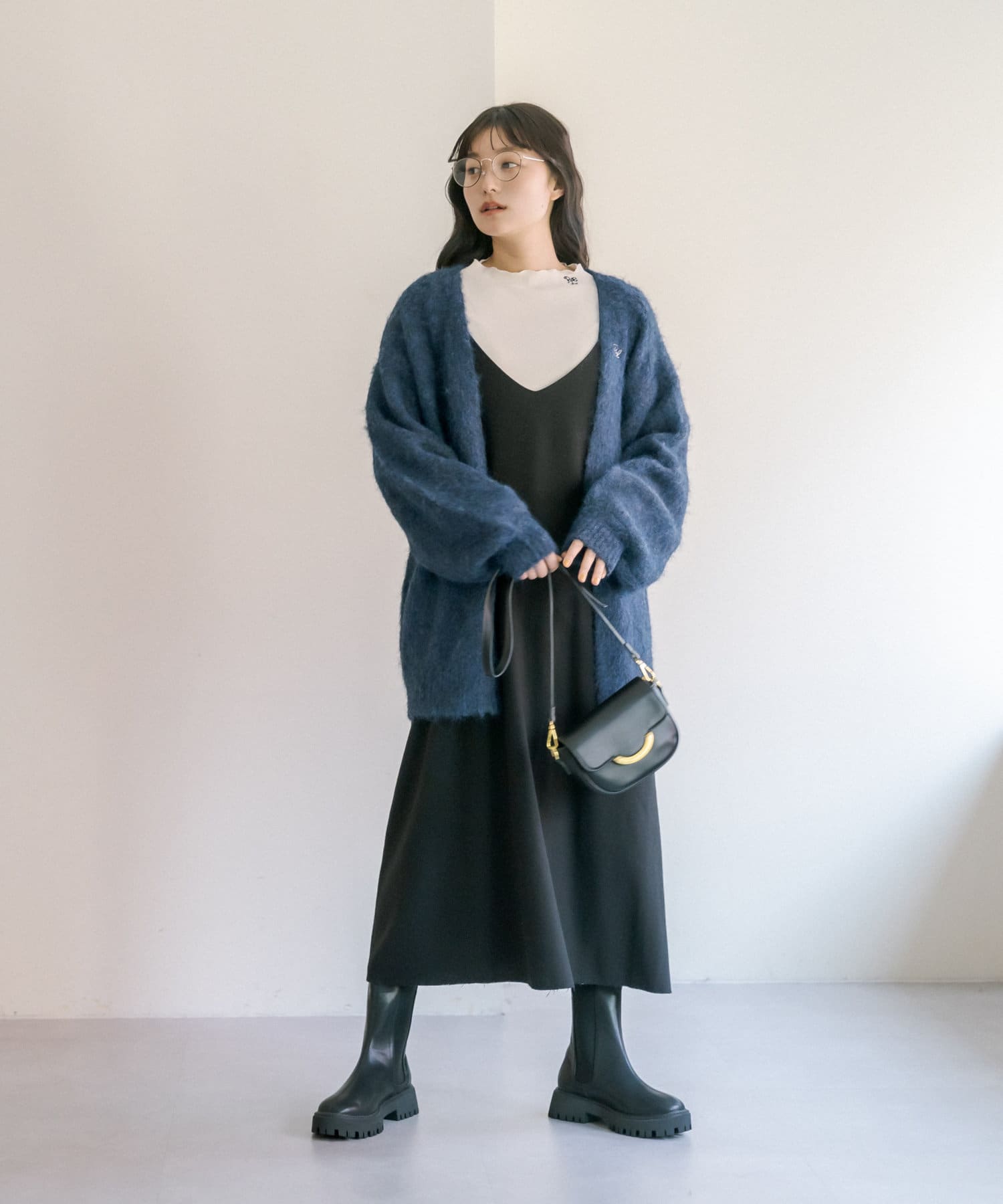 キャミワンピースやニットベストのレイヤードスタイルにはもちろん