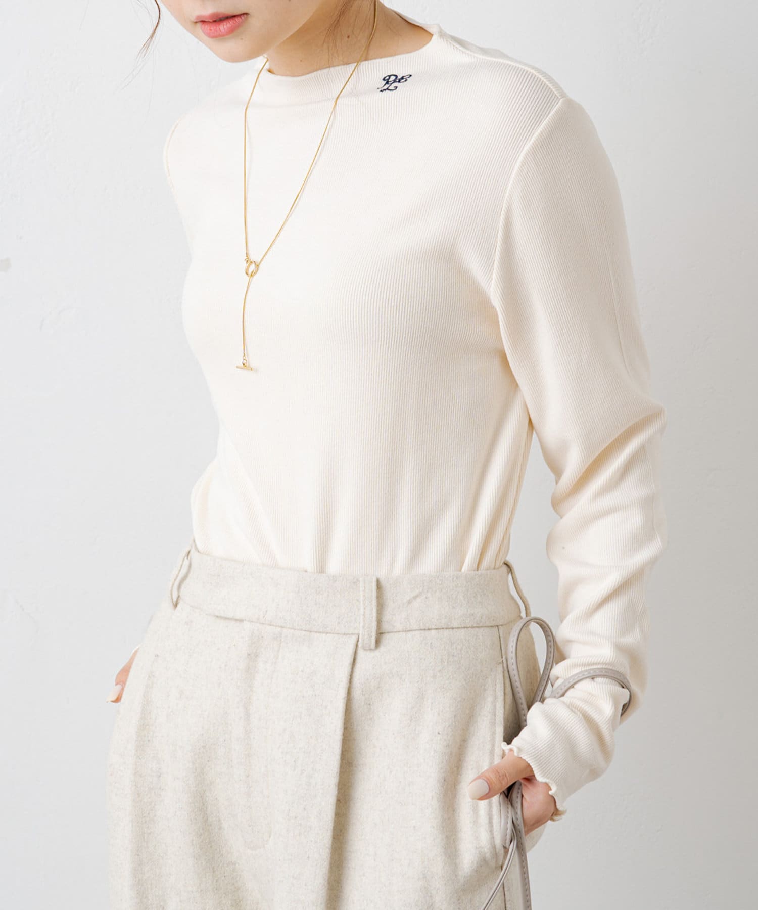 • PUAL CE CIN(ピュアルセシン) ワンポイントロゴ刺繍プチハイネックプルオーバー