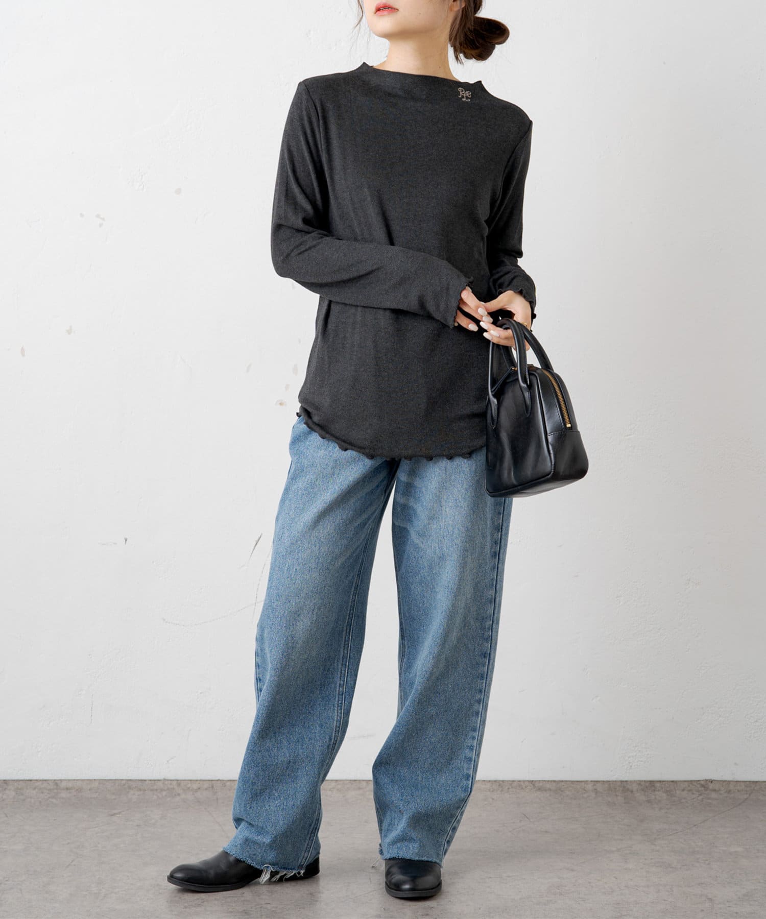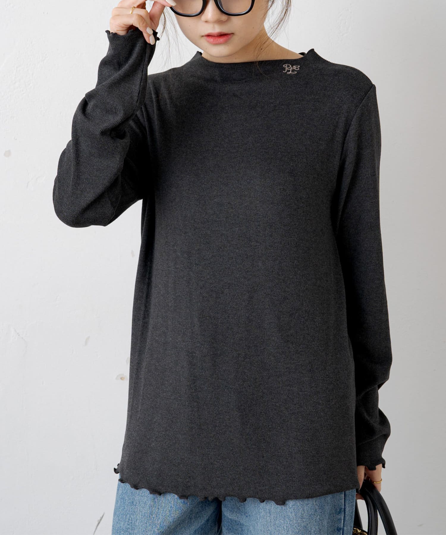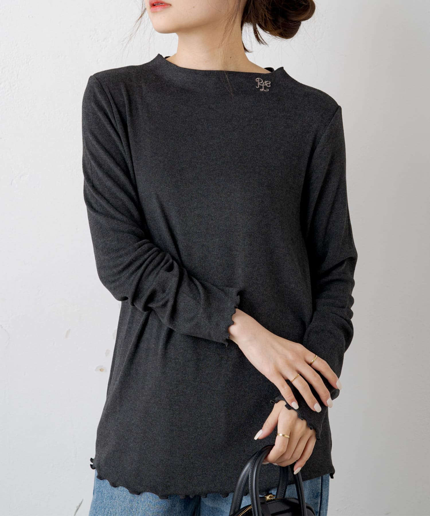 TOP > PUAL CE CIN > レディース > トップス > Tシャツ/カットソー > ワンポイントロゴ刺繍プチハイネックプルオーバー