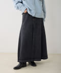 シルエットは女性らしく、生地感はラフでカジュアルな印象のフレアスカート。
