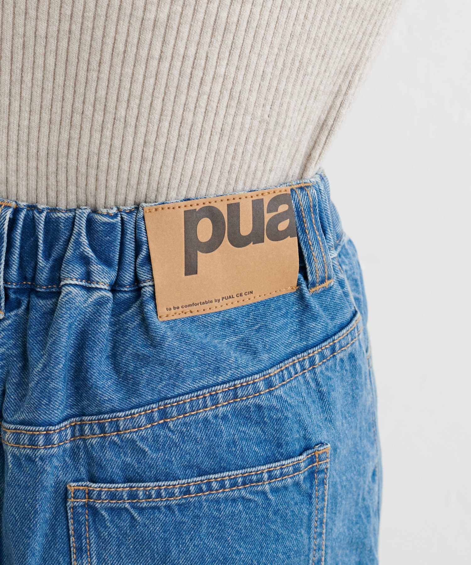 ウエストは後ろ側がゴム仕様で、ストレスフリーな穿き心地に。