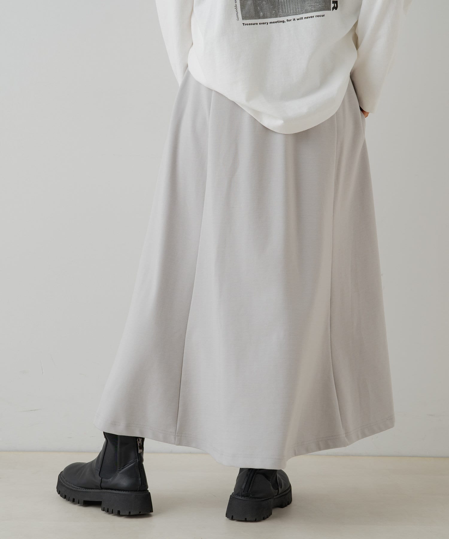 上品見えしながらもウエストのバックゴム仕様が嬉しいポイント。