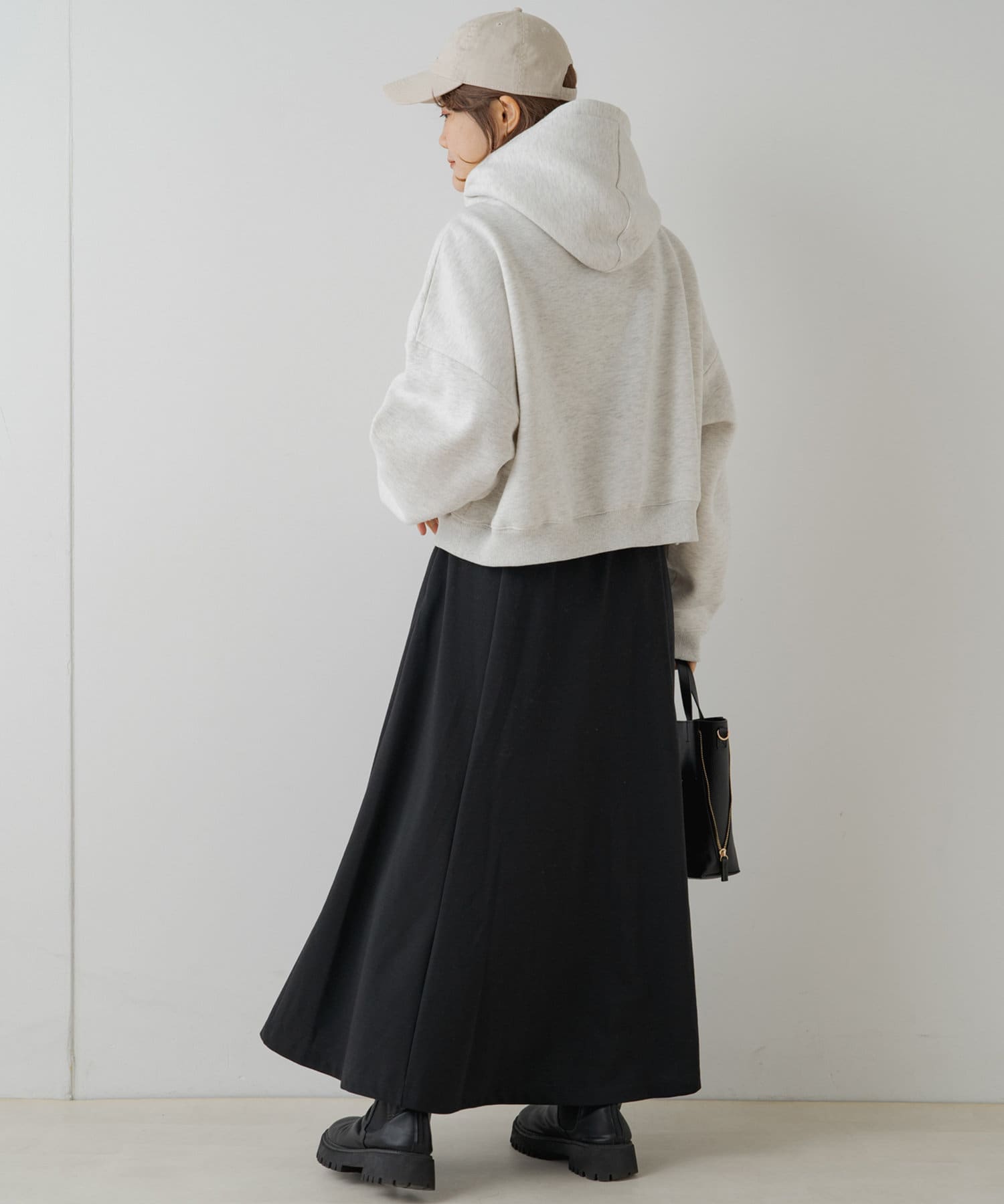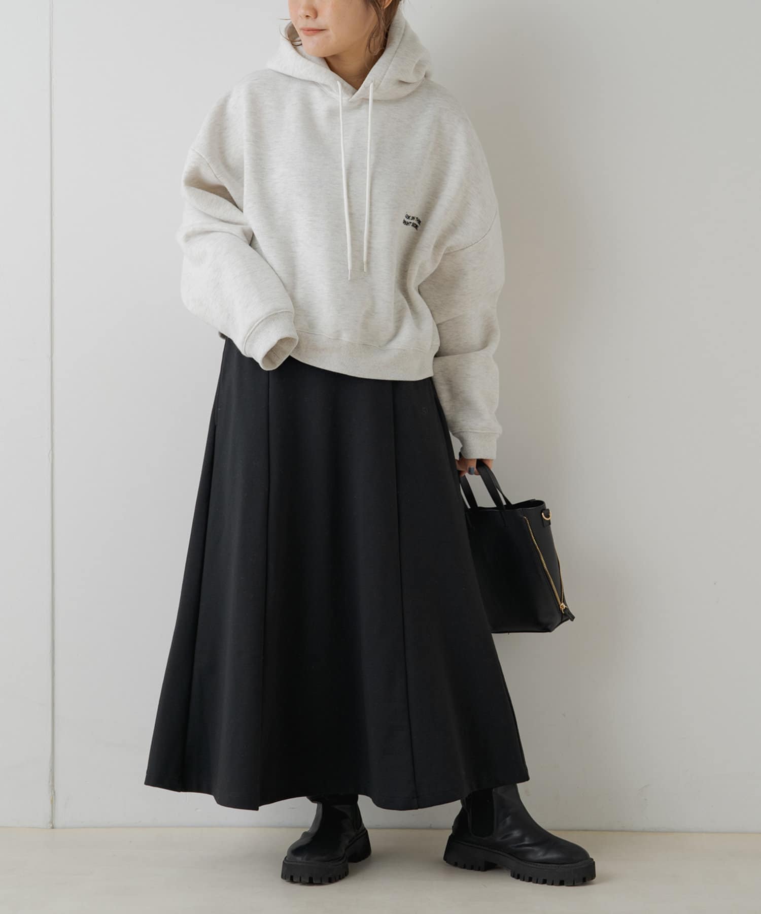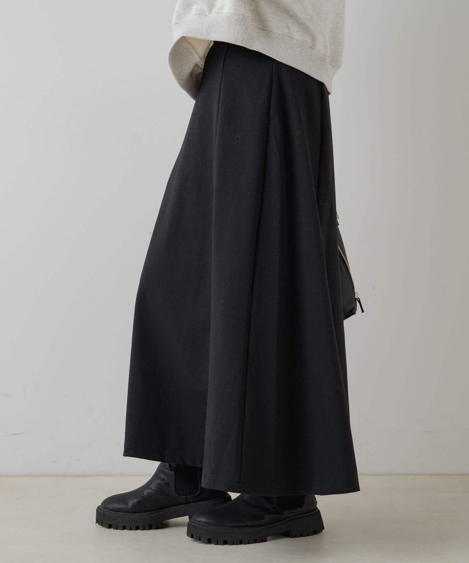 ポンチ素材特有のハリ感が魅力のフレアスカート。