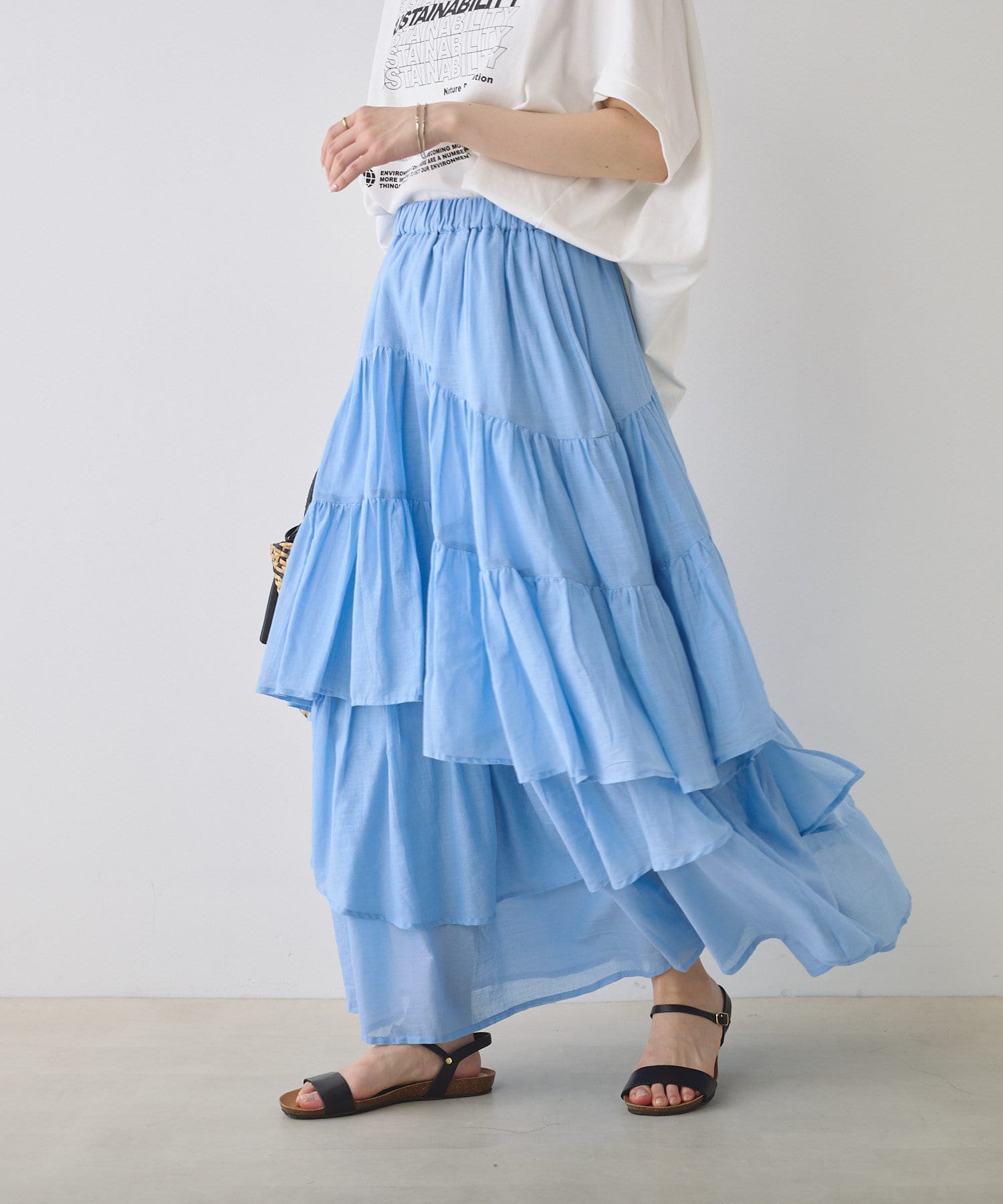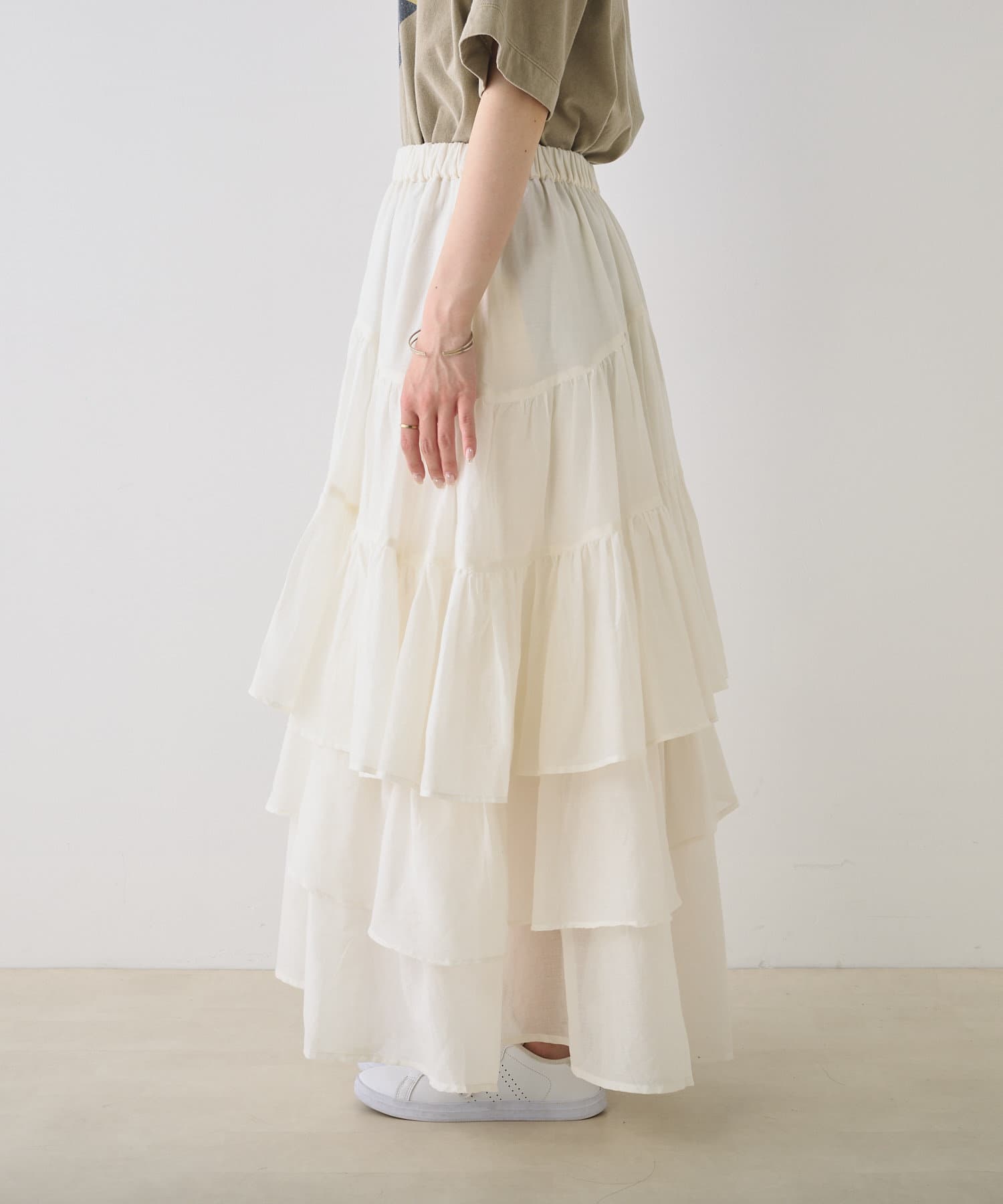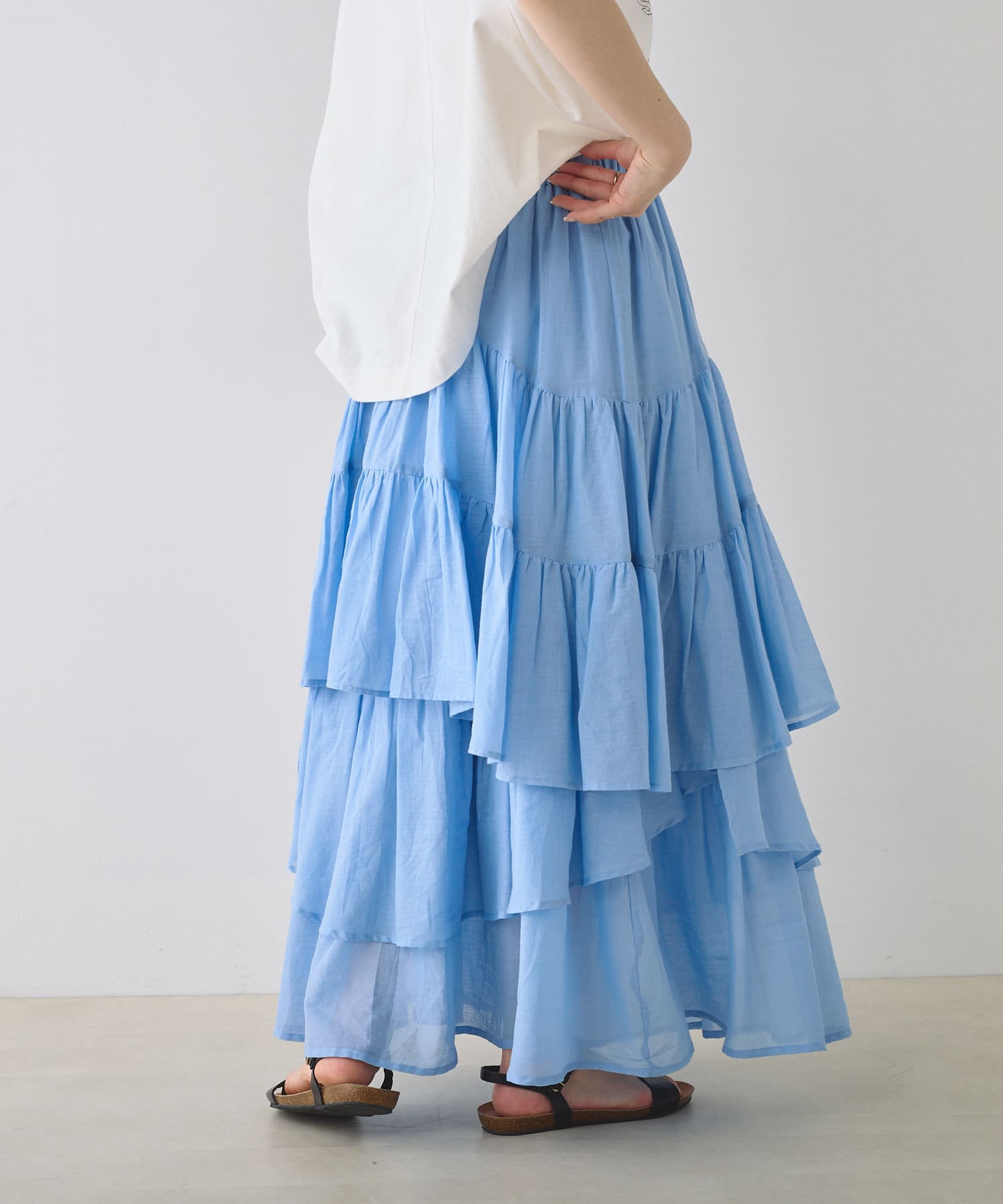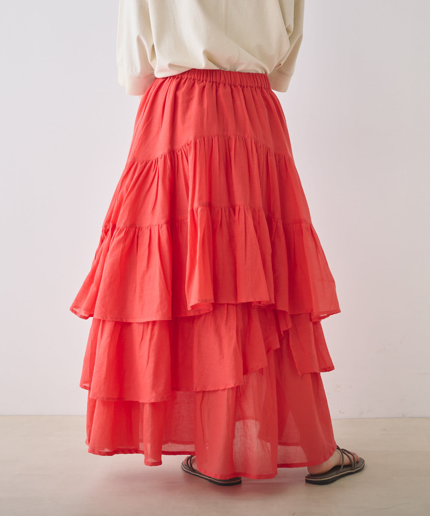 ボリュームがあるティアードスカートは、クロップド丈やコンパクトめなトップスとの相性が良いですが、