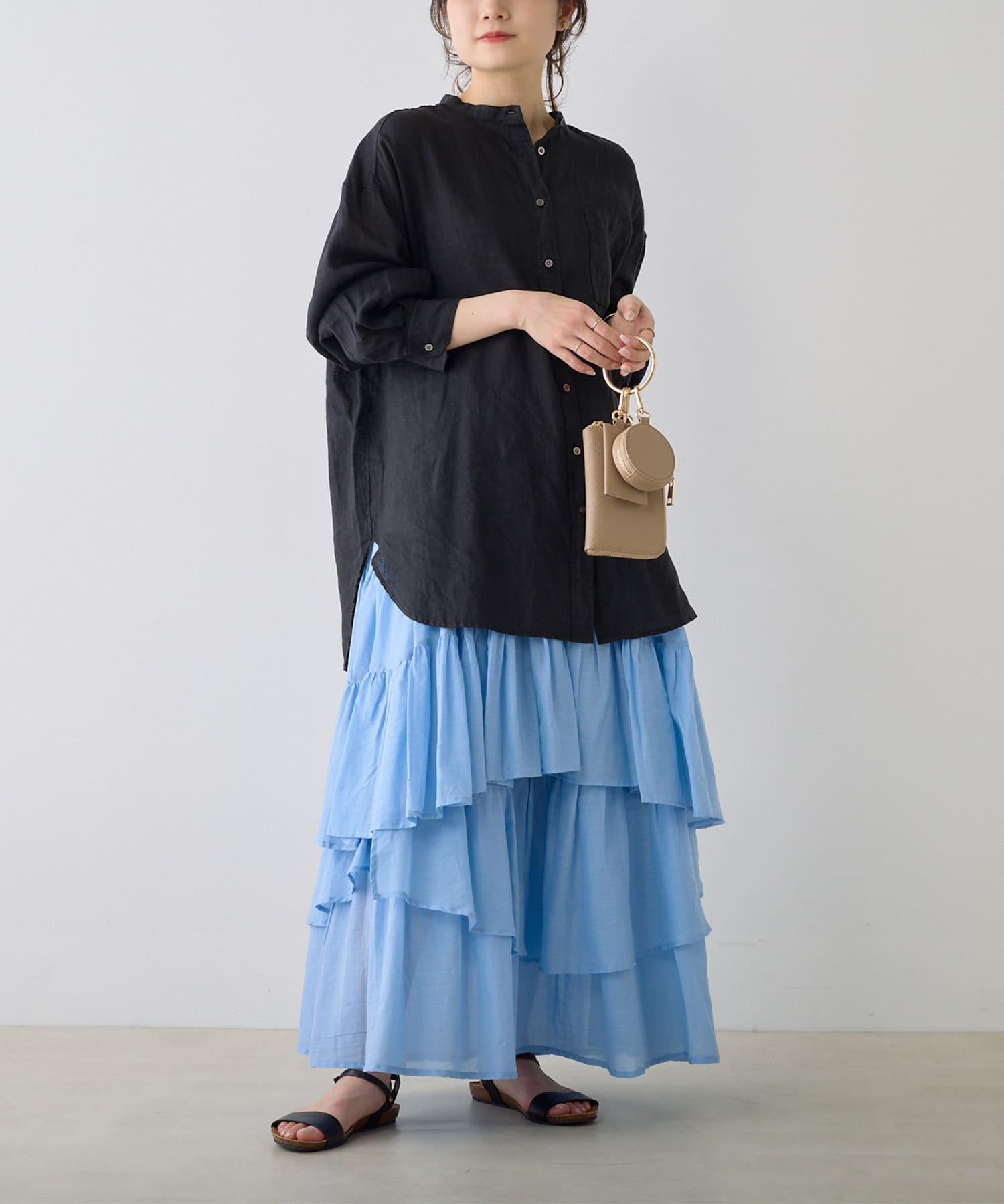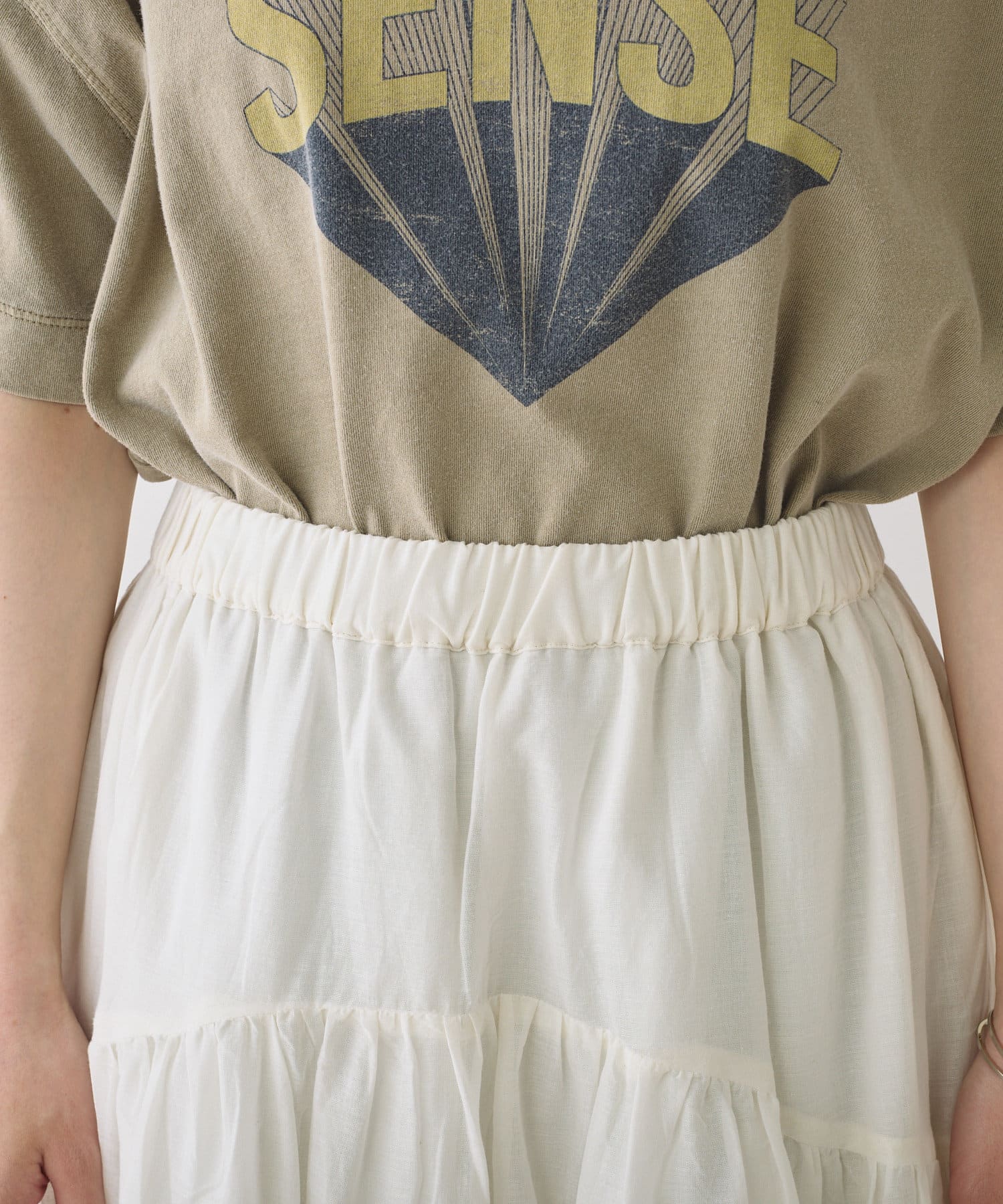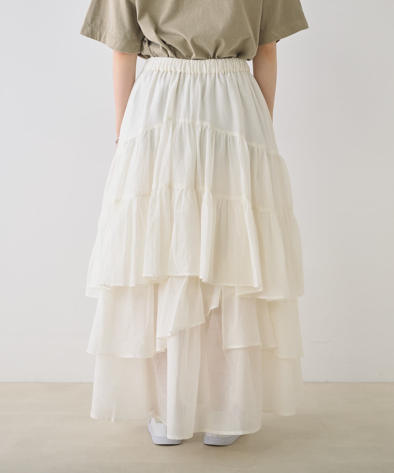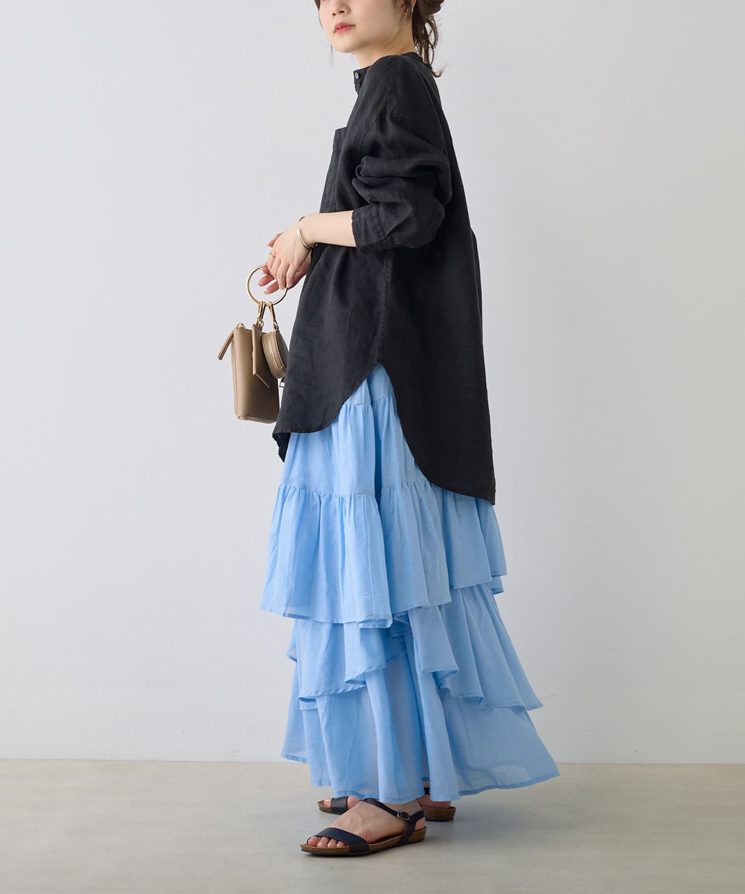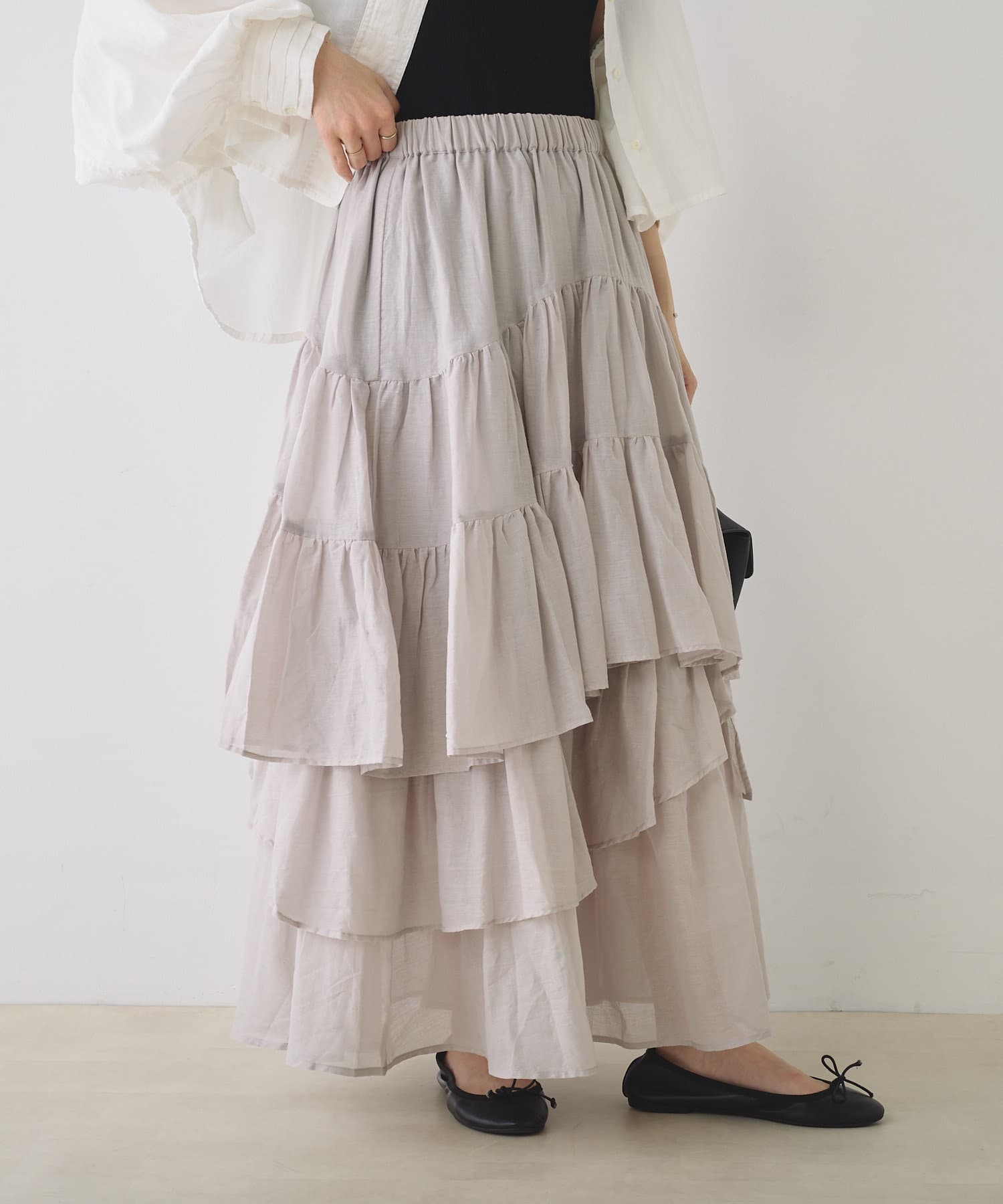 ボリュームがあるティアードスカートは、クロップド丈やコンパクトめなトップスとの相性が良いですが、
