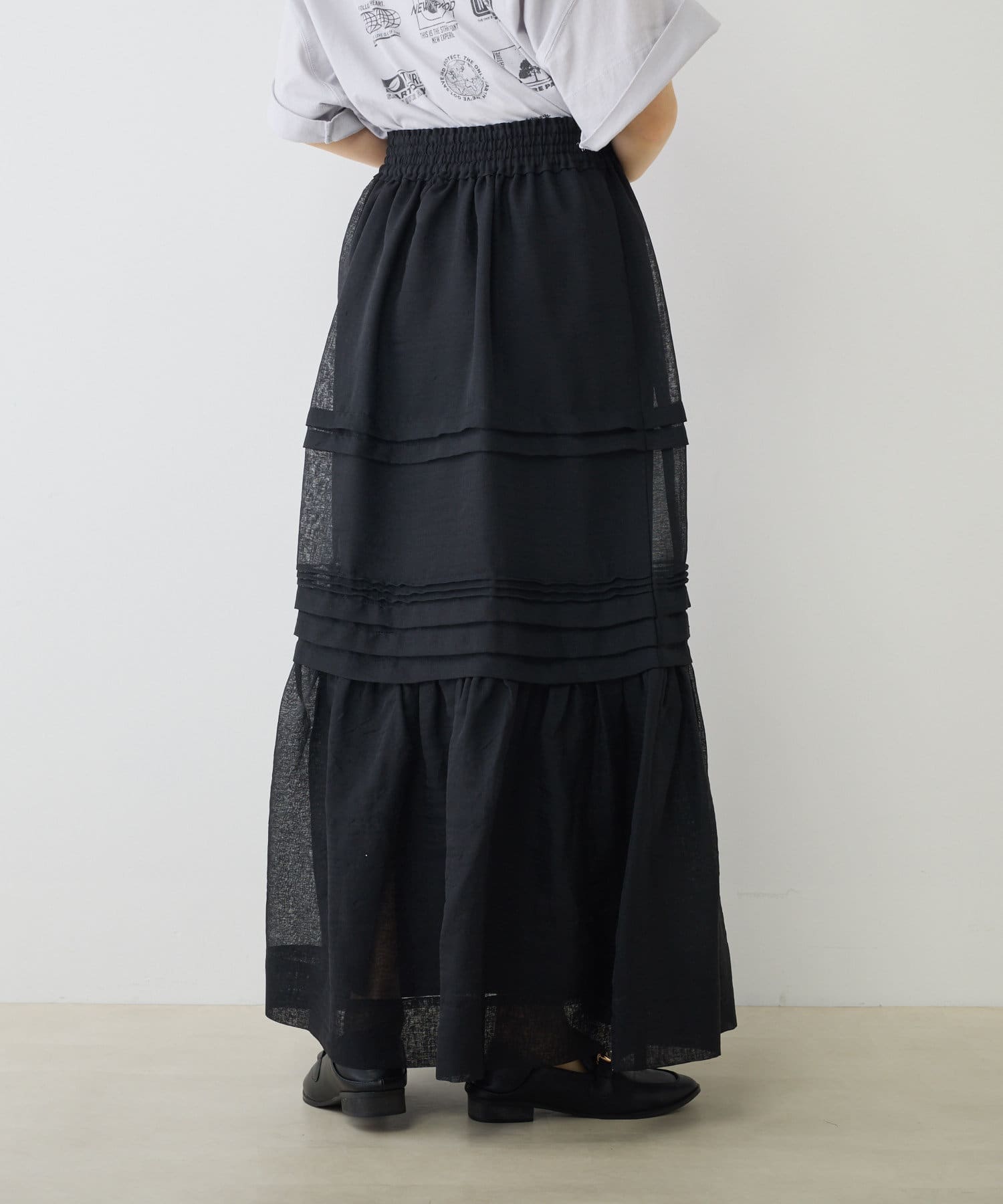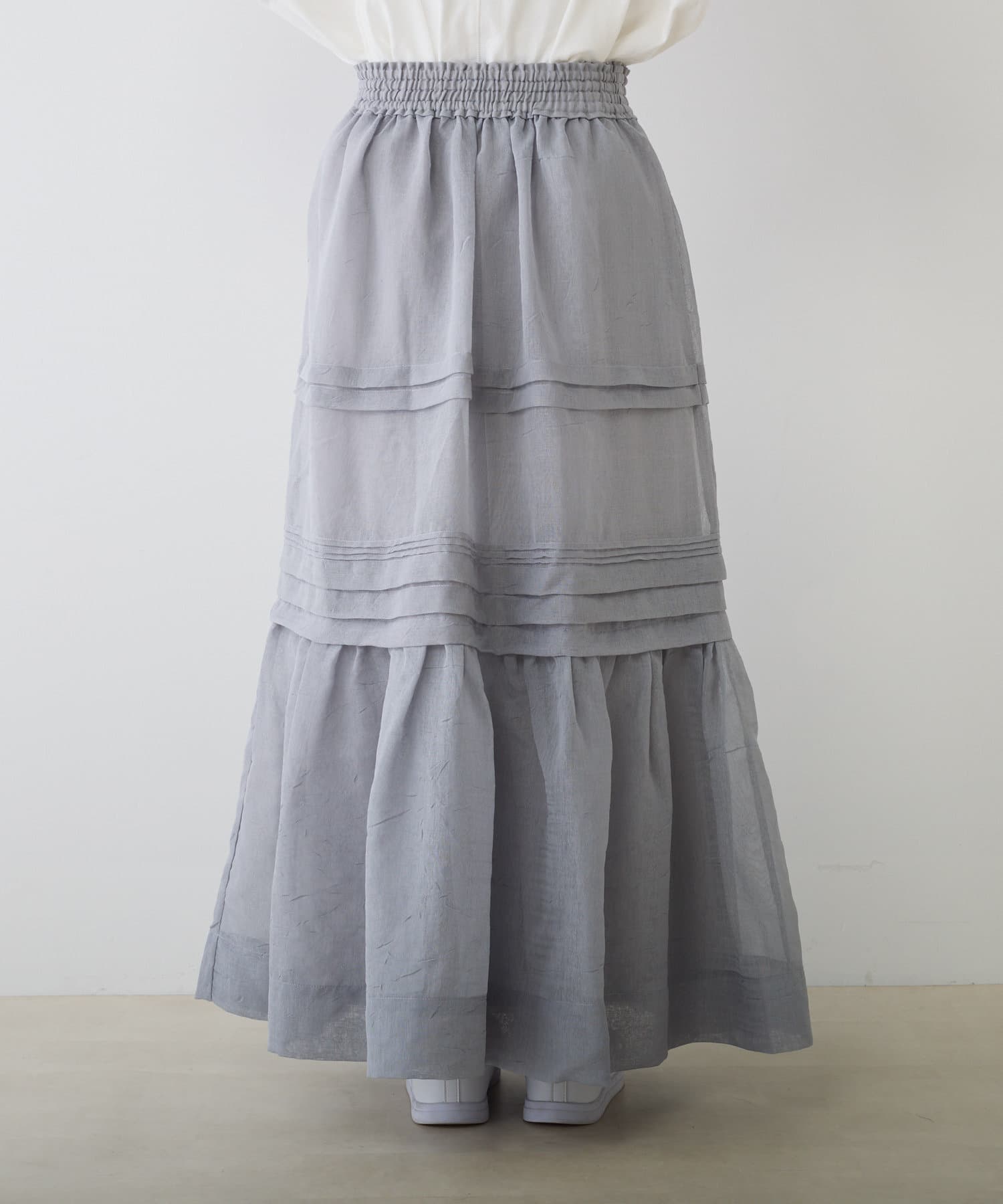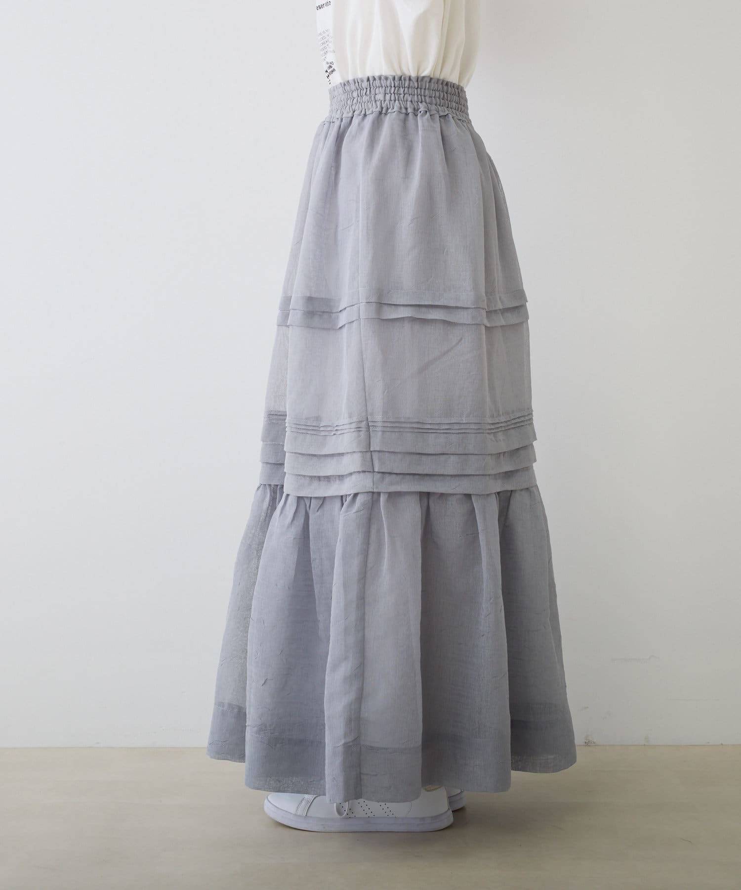 上品な透け感で仕上げたオーガンジー素材のスカート。