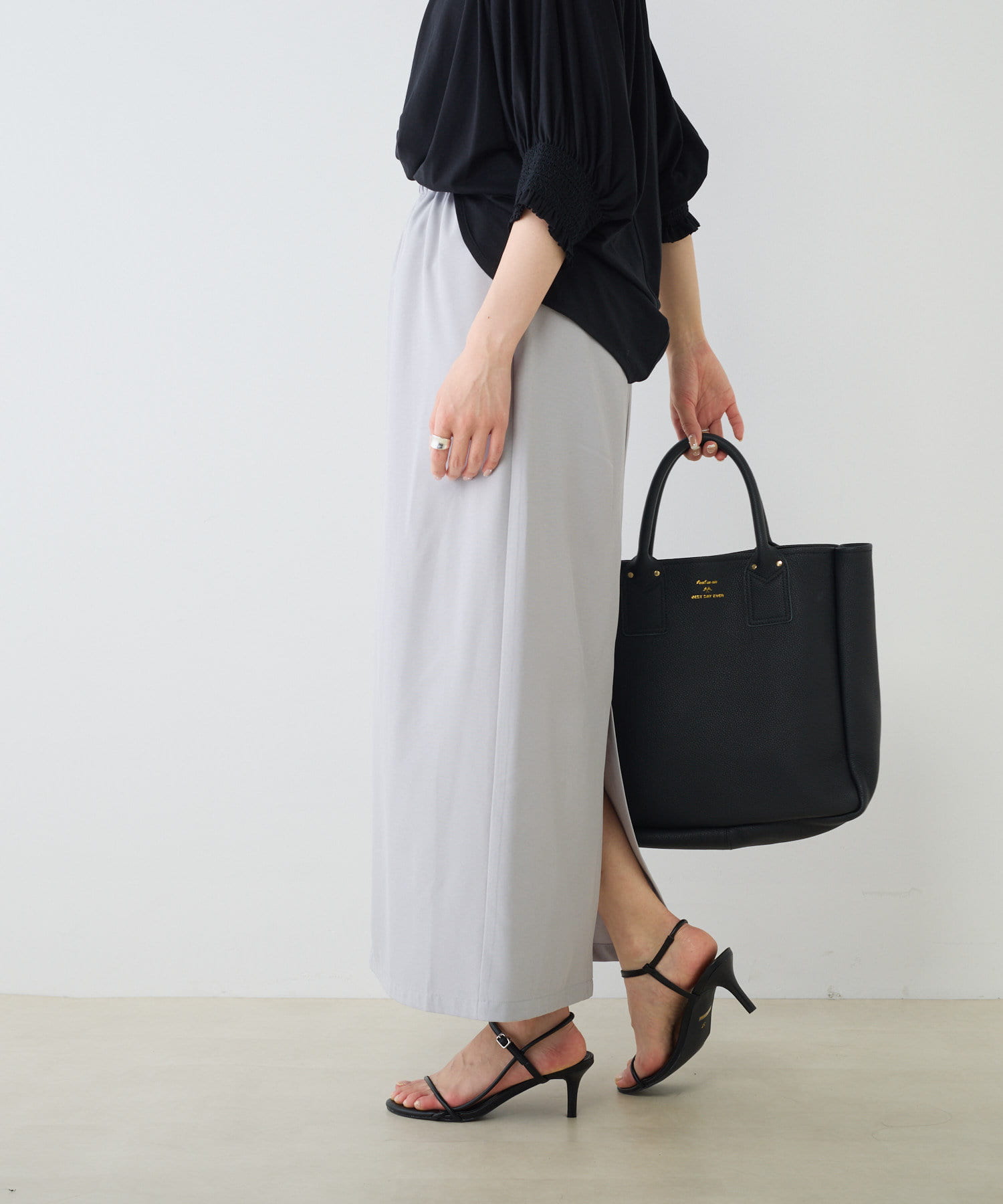 タックとギャザーが入ったデザインは一枚で華やかな印象を演出。