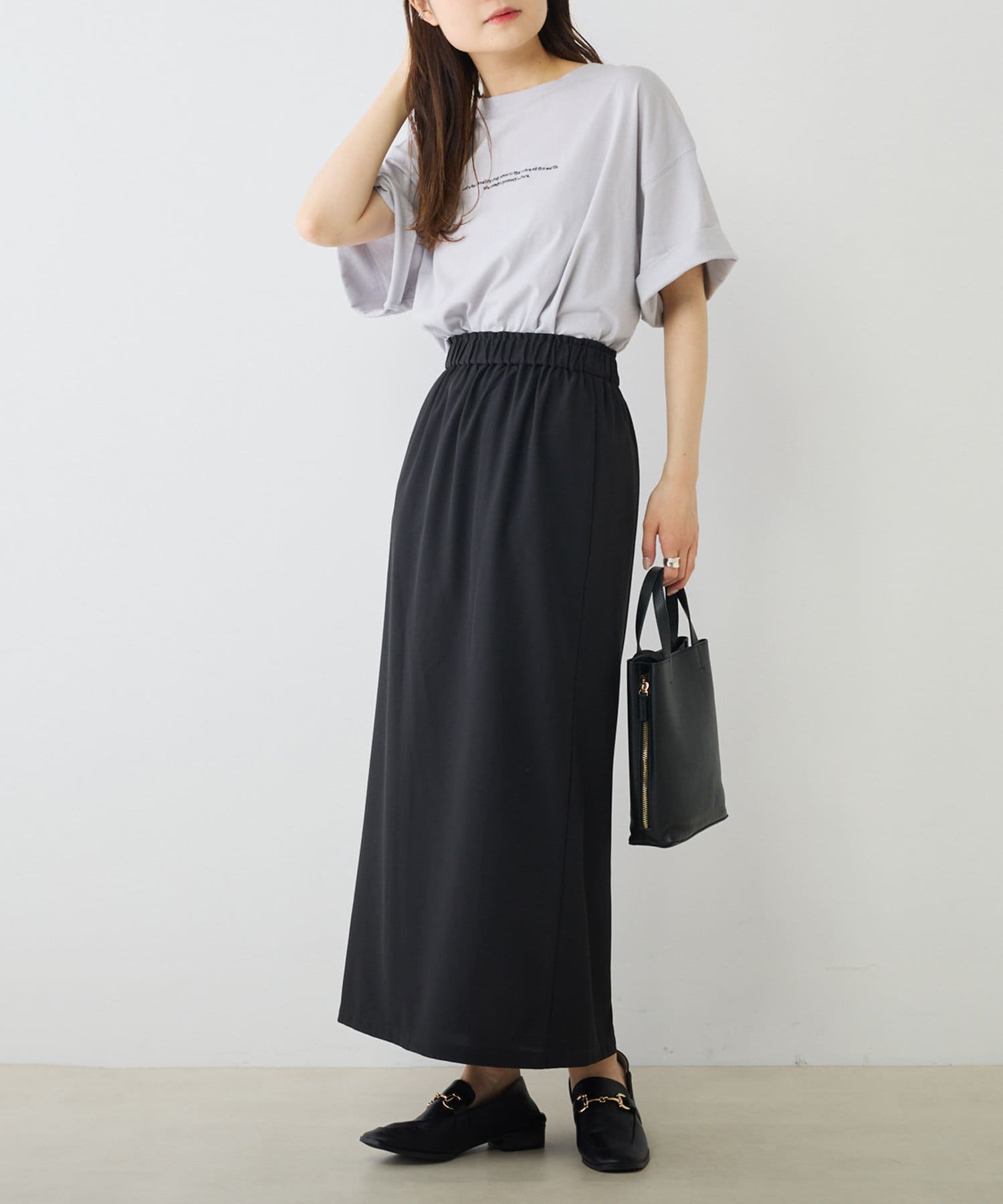 サイズ感:タックデザインと二重の生地で体型をしっかりカバーしてくれます。