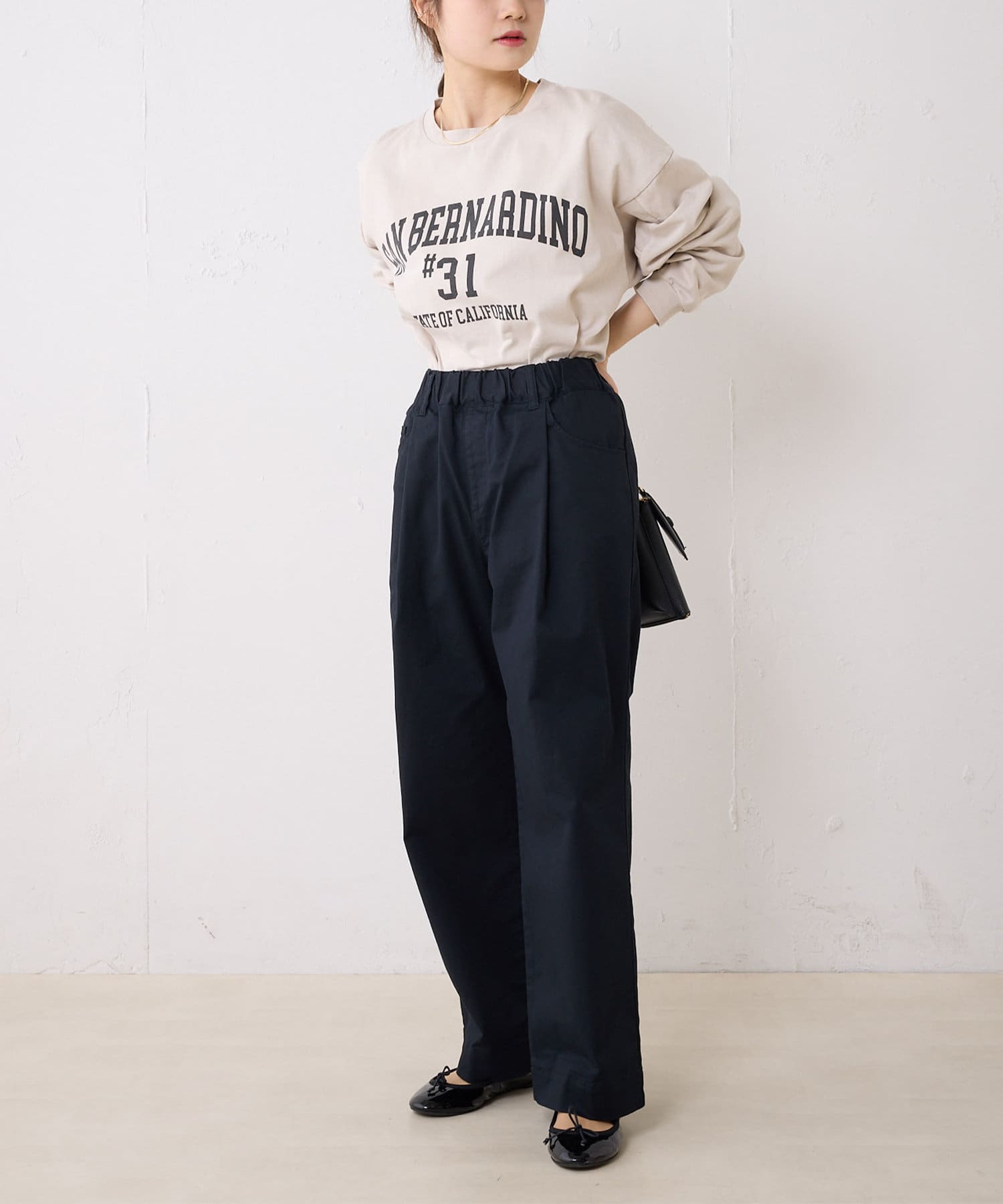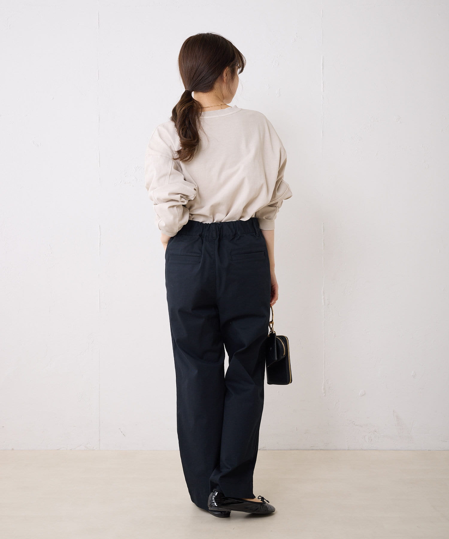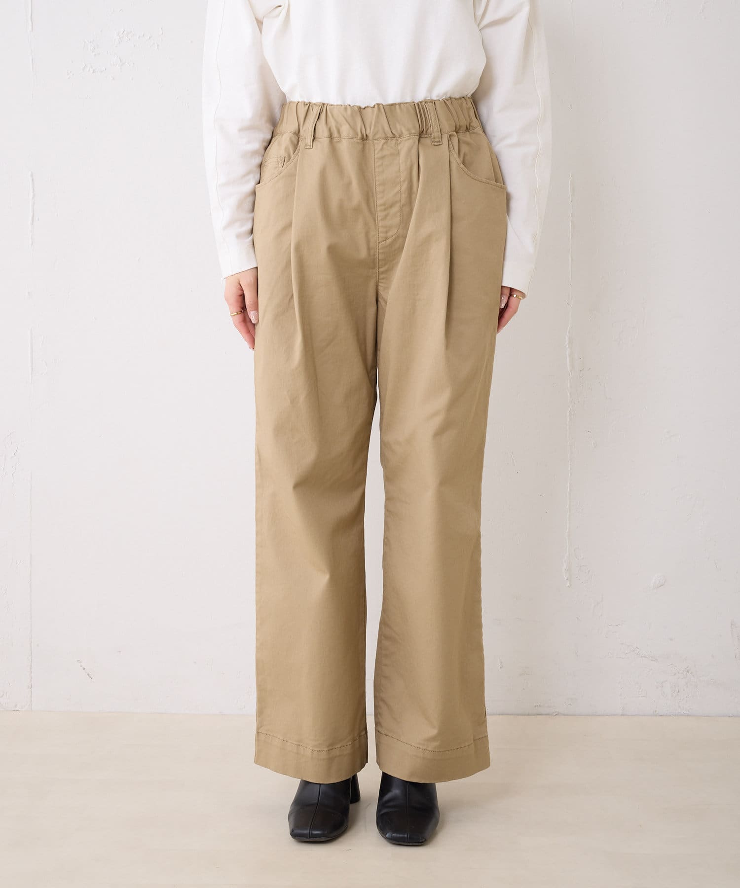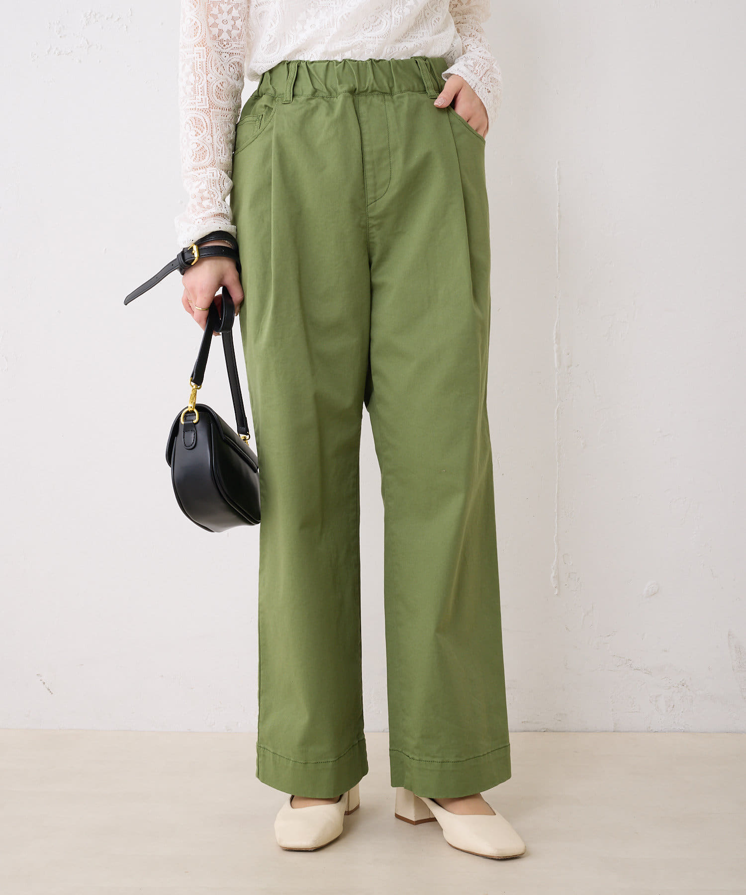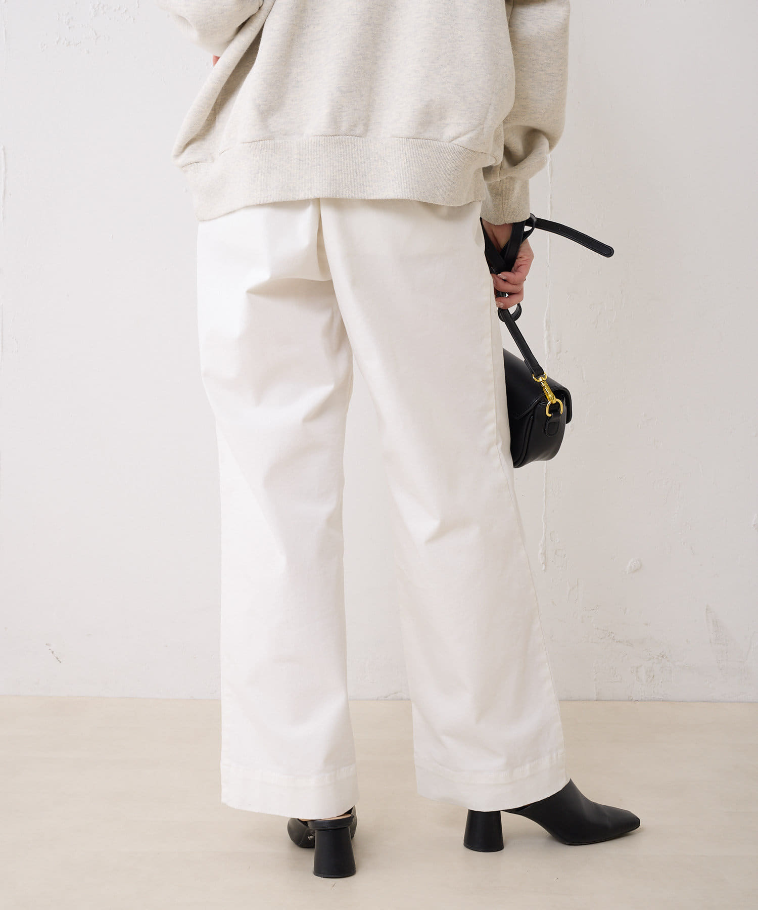 フロントタックが美脚効果を高めてくれるワイドパンツ。