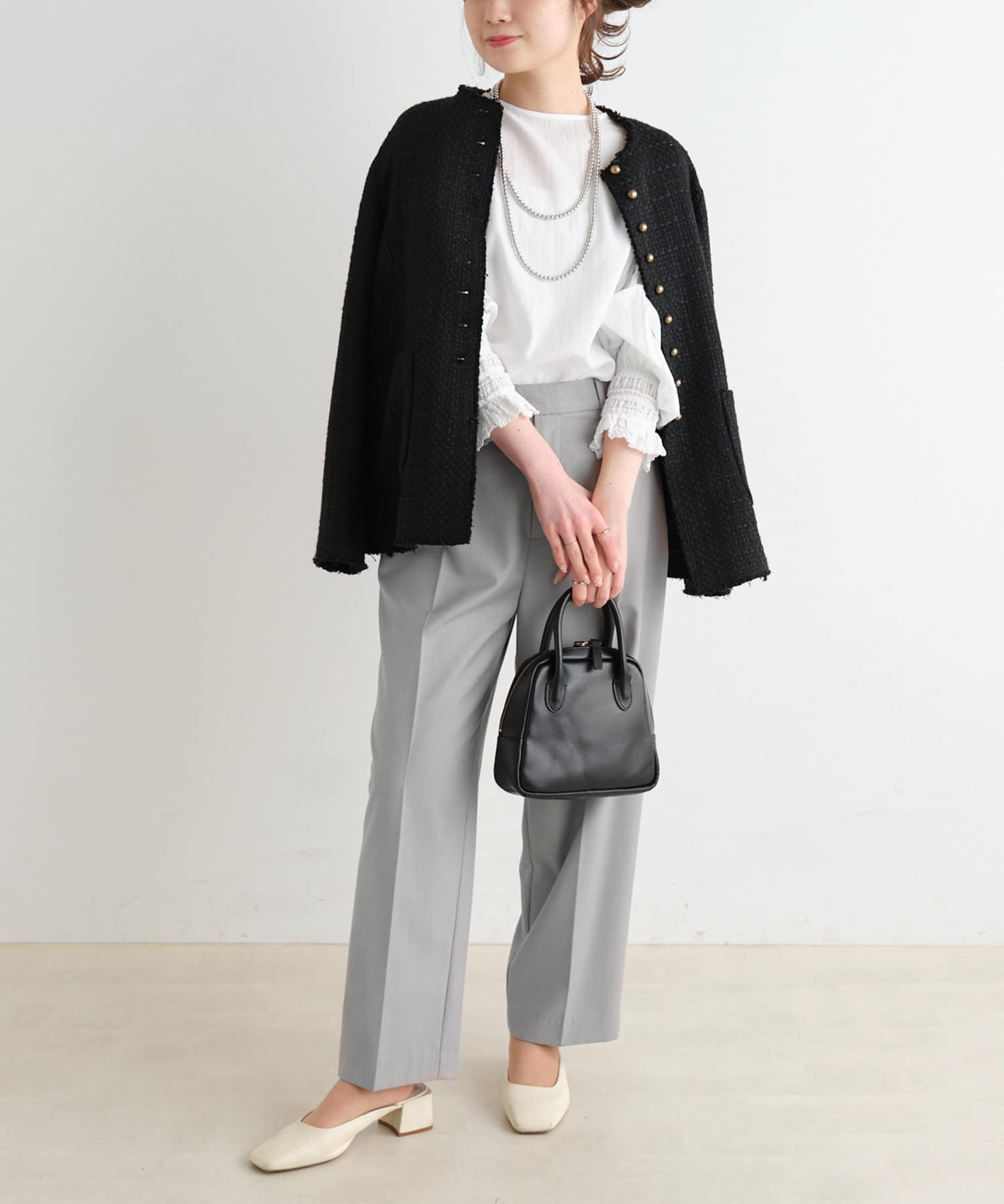 同素材のジャケット(No.0231070010)もございますので、セットアップコーデもお楽しみいただけます。
