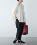 オンオフ着回せるので、普段のコーディネートに1枚は持っておきたいスラックスパンツです。