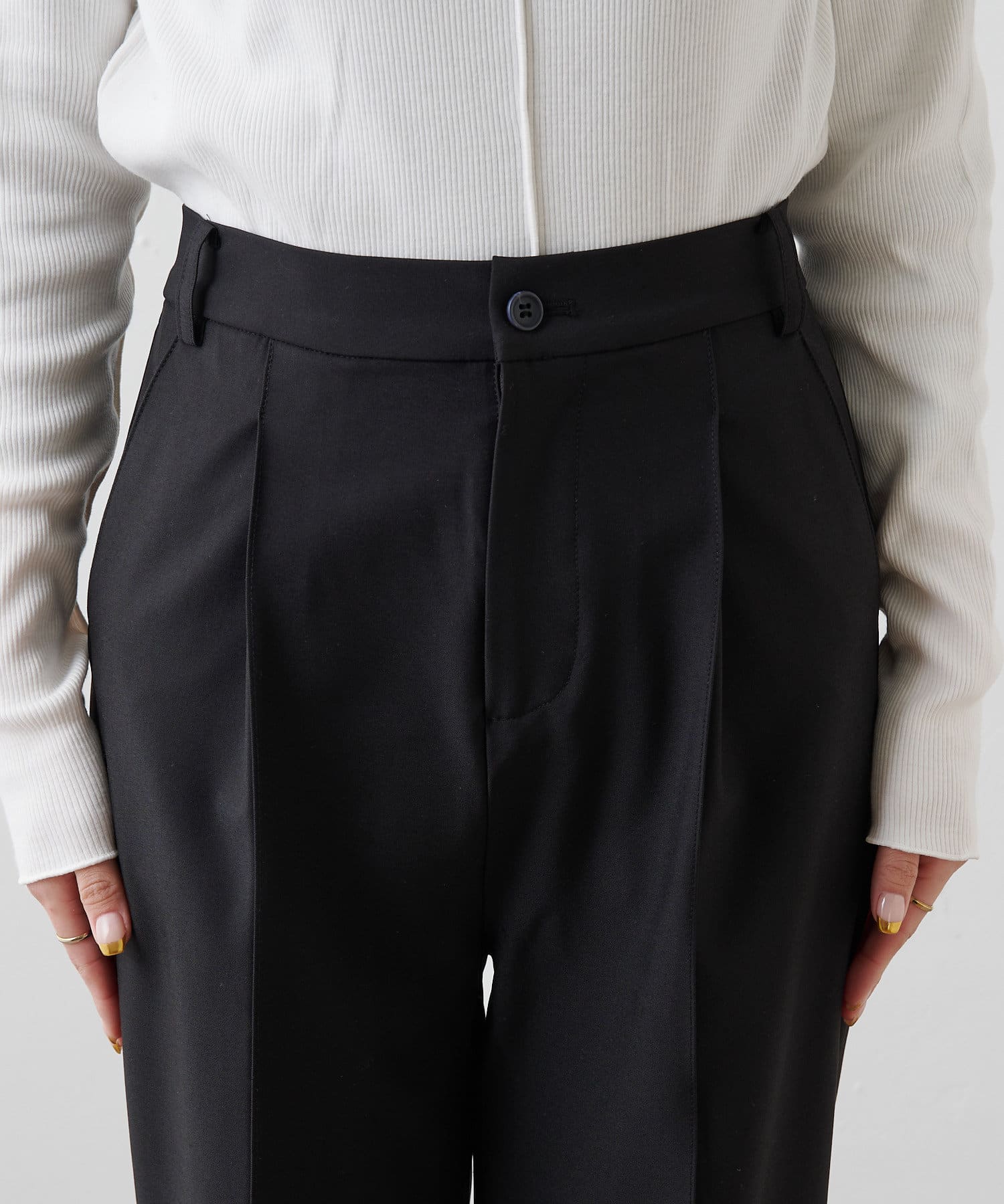 縦のラインを強調するセンタープレスが美しいシルエットを作り出します。