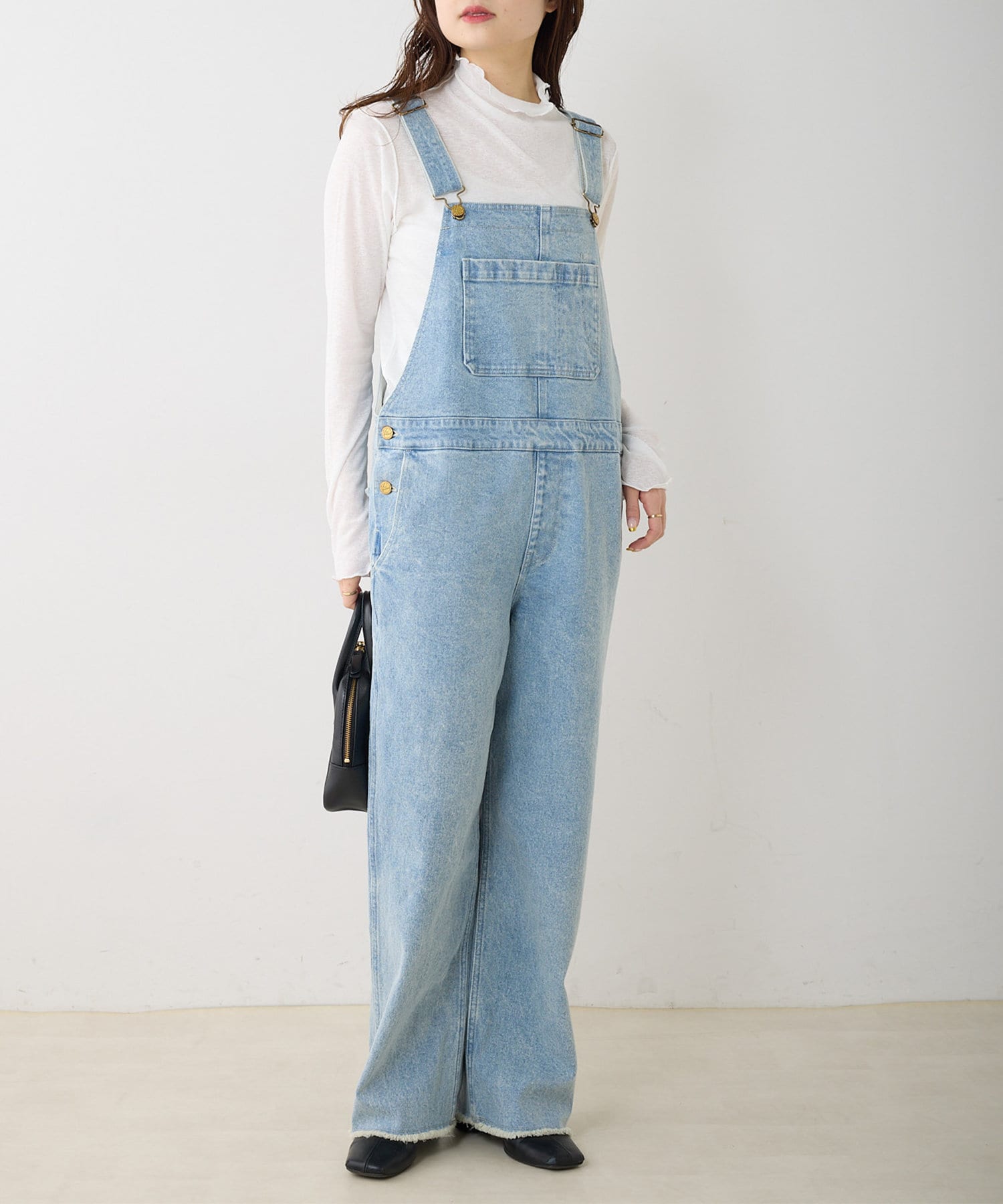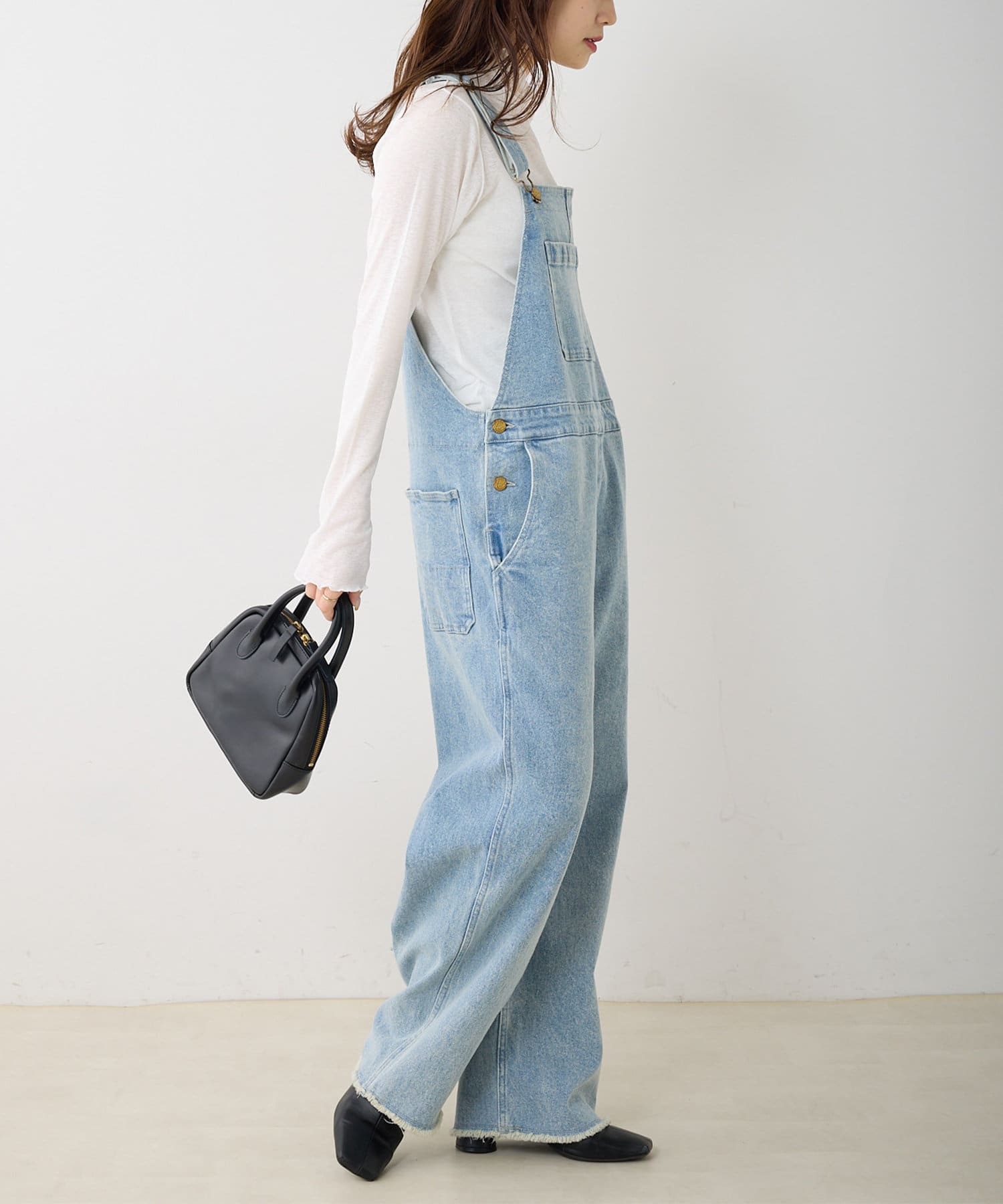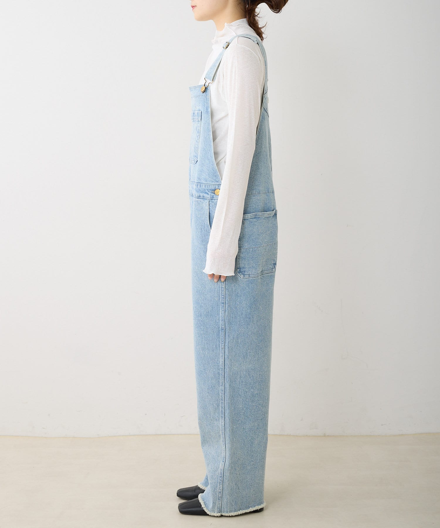 程よくゆとりのあるサイズ感ながらも、ルーズすぎない見た目の大人サロペット。